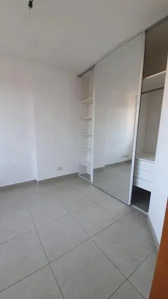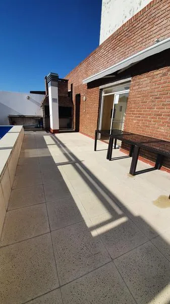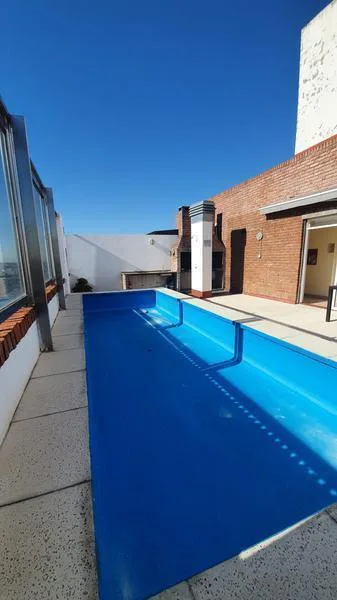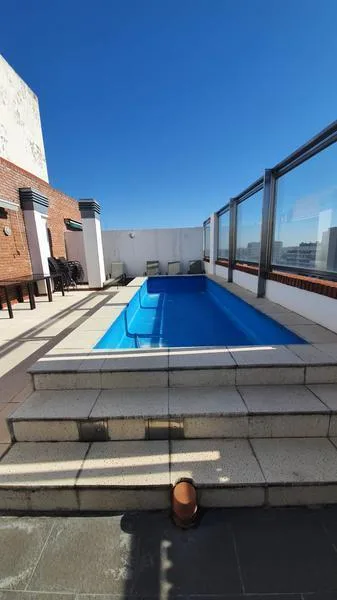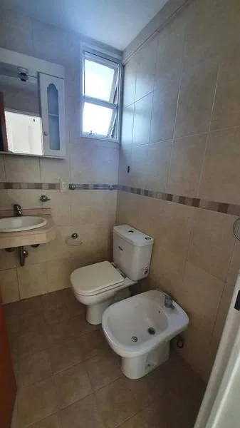 Departamento de 2 ambientes al frente. Cuenta con living comedor con salida al balcón, cocina con bajo mesada y alacenas, 2 dormitorios con placard y 1 baño completo. El edificio dispone de parrilla y pileta. La publicación indica que se contrata seguro de caución.