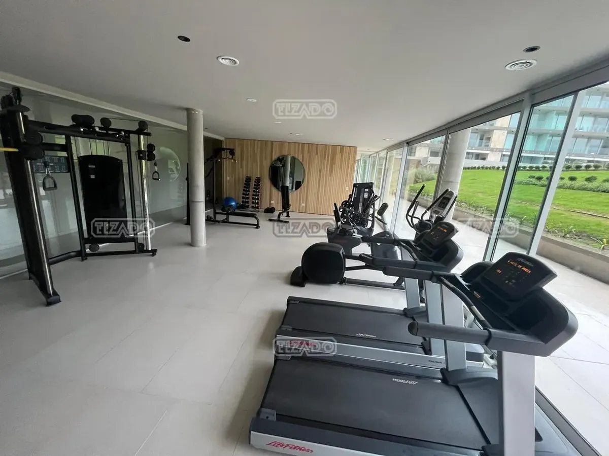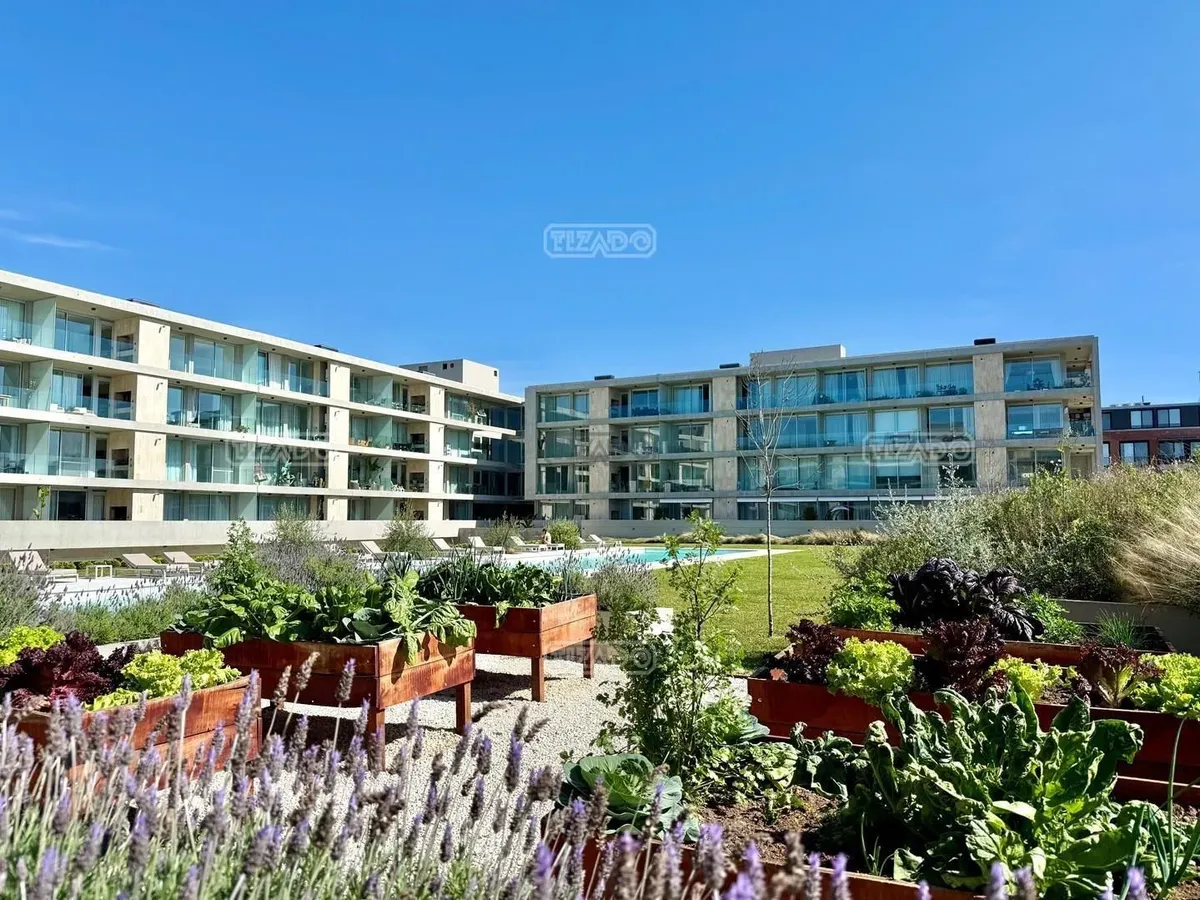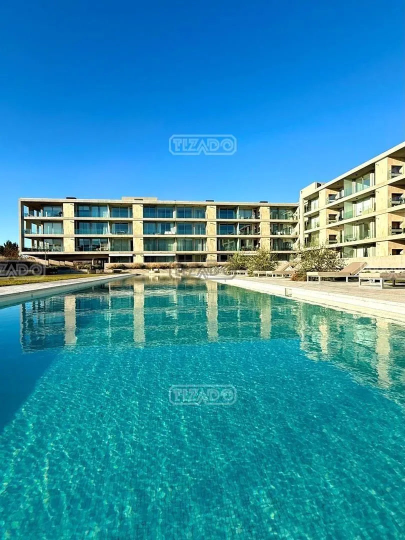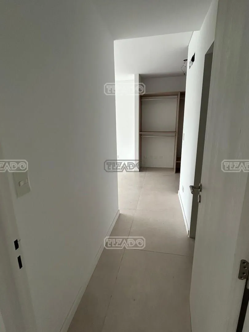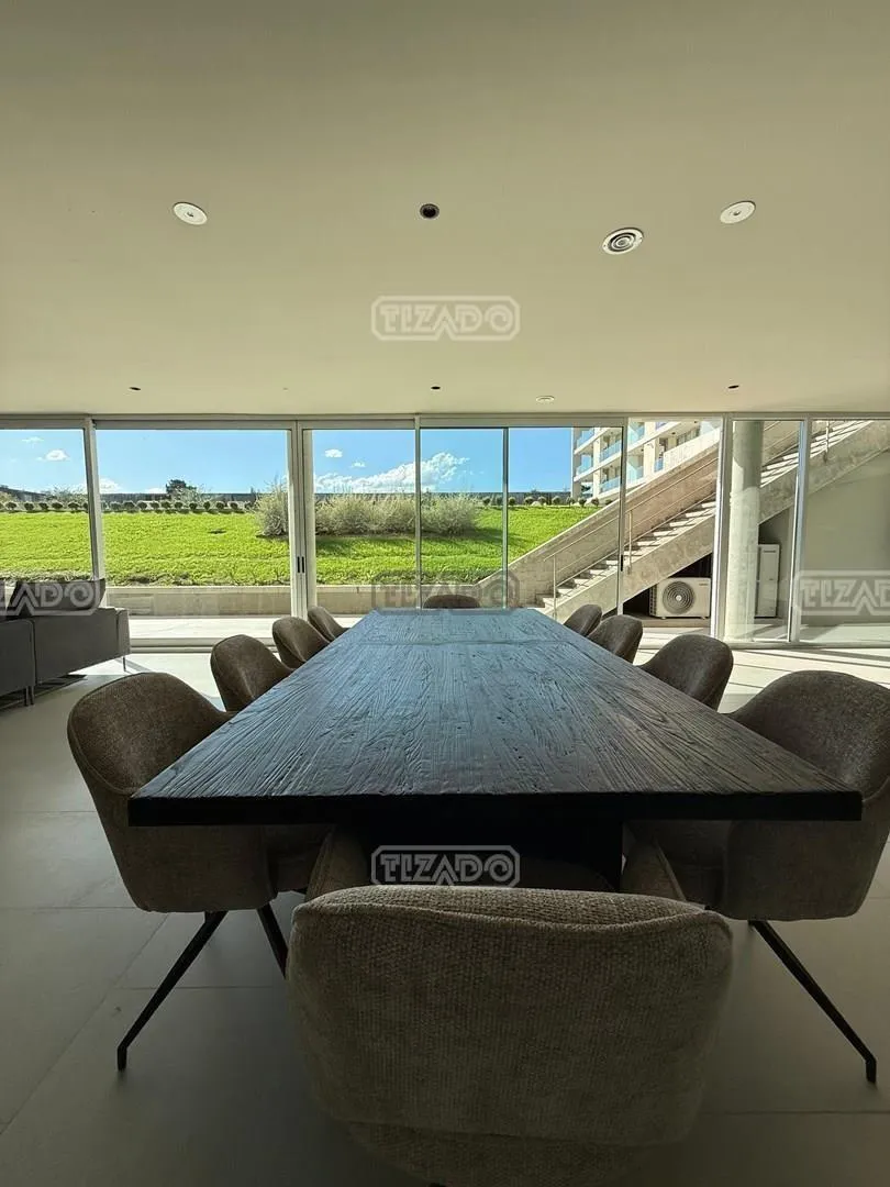 Departamento de 3 ambientes a estrenar con terraza privada de casi 100 m², de 10,90 m de ancho por 9 m de largo, con vista abierta al parque central y a la piscina del complejo. La unidad se desarrolla con living-comedor integrado a la cocina y acceso directo a la terraza, con ventanales de piso a techo. Cuenta con dormitorio principal con placard, baño completo y toilette, y calefacción por losa radiante con caldera dual Baxi. La cocina tiene anafe a gas y horno eléctrico; incluye 2 cocheras.
