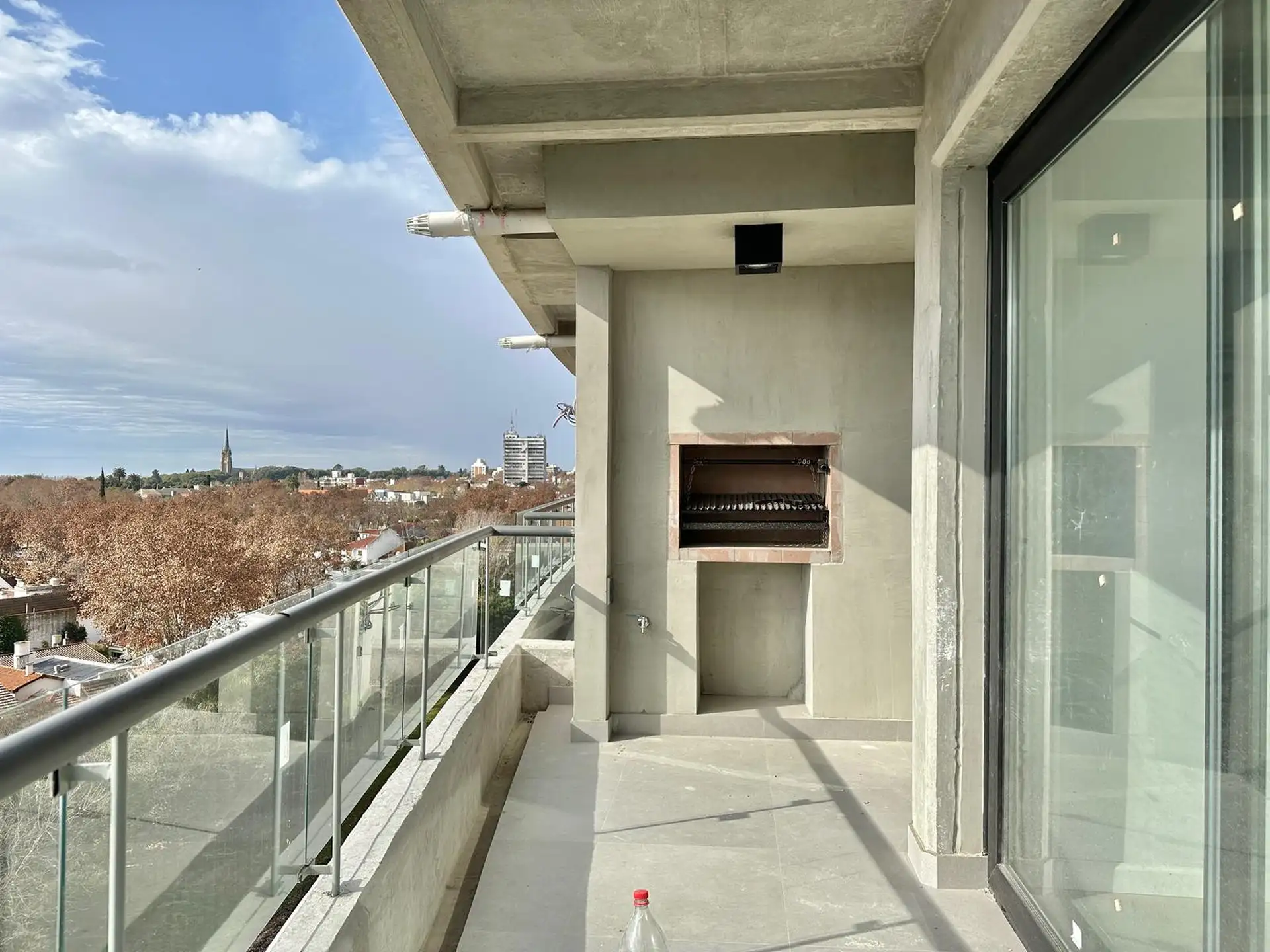 Departamento en alquiler en San Isidro, en una torre con terraza de uso común en el último piso, con vista al río, pileta, SUM y parrilla. Cuenta con living comedor en L con salida a balcón terraza con parrilla, toilette de recepción, cocina y 2 dormitorios, el principal en suite con vestidor y el segundo con baño completo. Tiene caldera individual dual para losa radiante y agua caliente, preinstalación para sistema multisplit de aire acondicionado y aberturas de doble vidriado hermético (DVH).