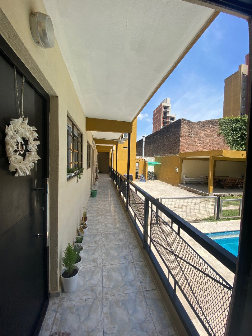Dúplex en 2do piso por escalera. Disponible a partir de enero de 2026. En la 1ra planta cuenta con living, cocina comedor con bajo mesada, toilette con espacio para lavarropas y termotanque eléctrico. En la 2da planta tiene 2 habitaciones, una con balcón aterrazado, y un baño completo con ducha. El complejo ofrece pileta y quincho con parrilla.