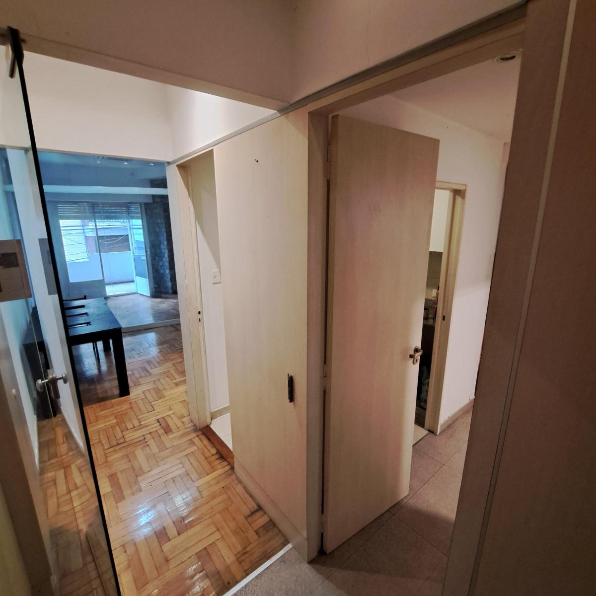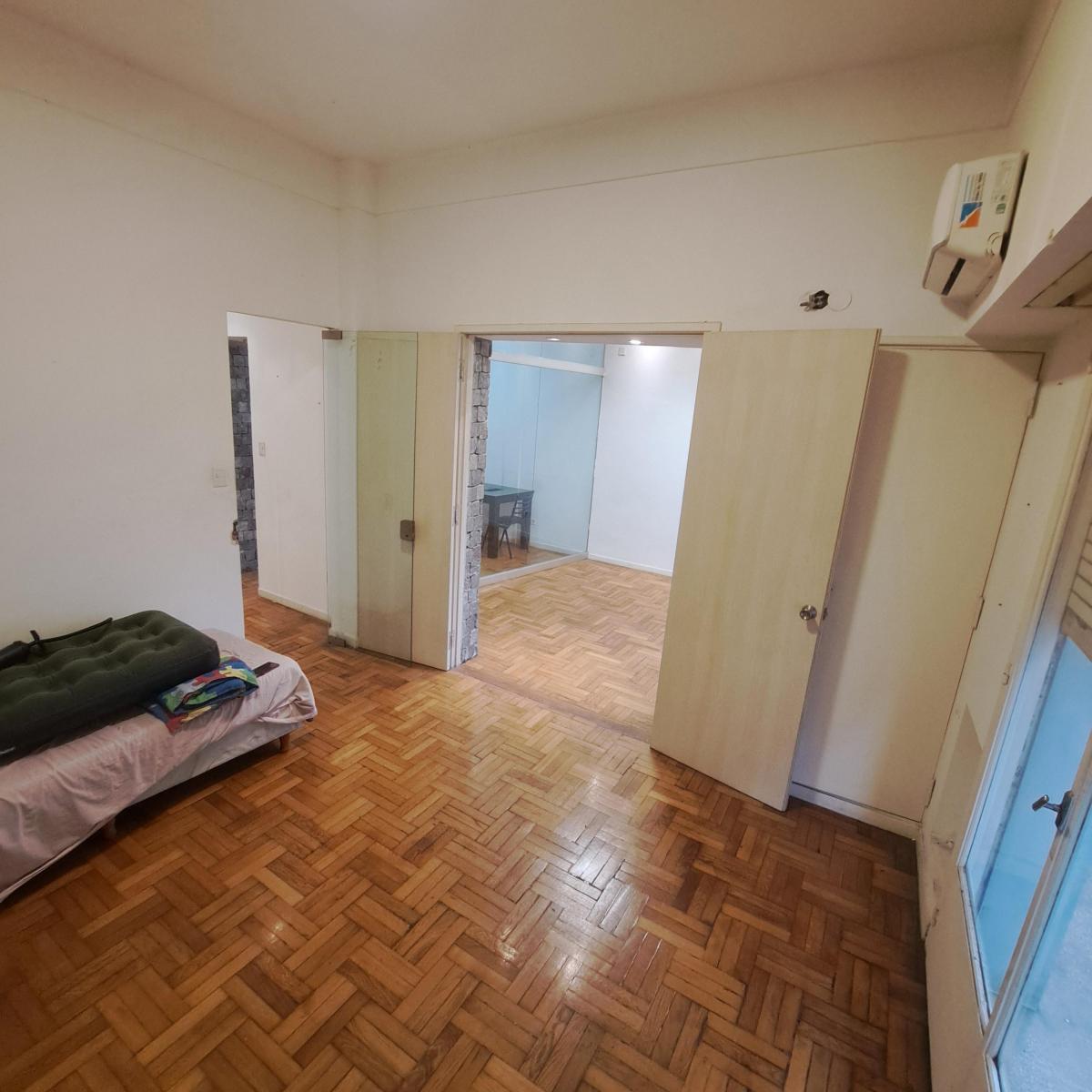 Departamento semipiso en calle Tucumán 1585, de 80 m², con balcones hacia la calle Tucumán. Son 3 ambientes, con 2 baños y kitchenette. Puede usarse con fines comerciales o como vivienda y se acepta el ingreso de mascotas pequeñas. El inmueble está disponible para 3/4 personas.