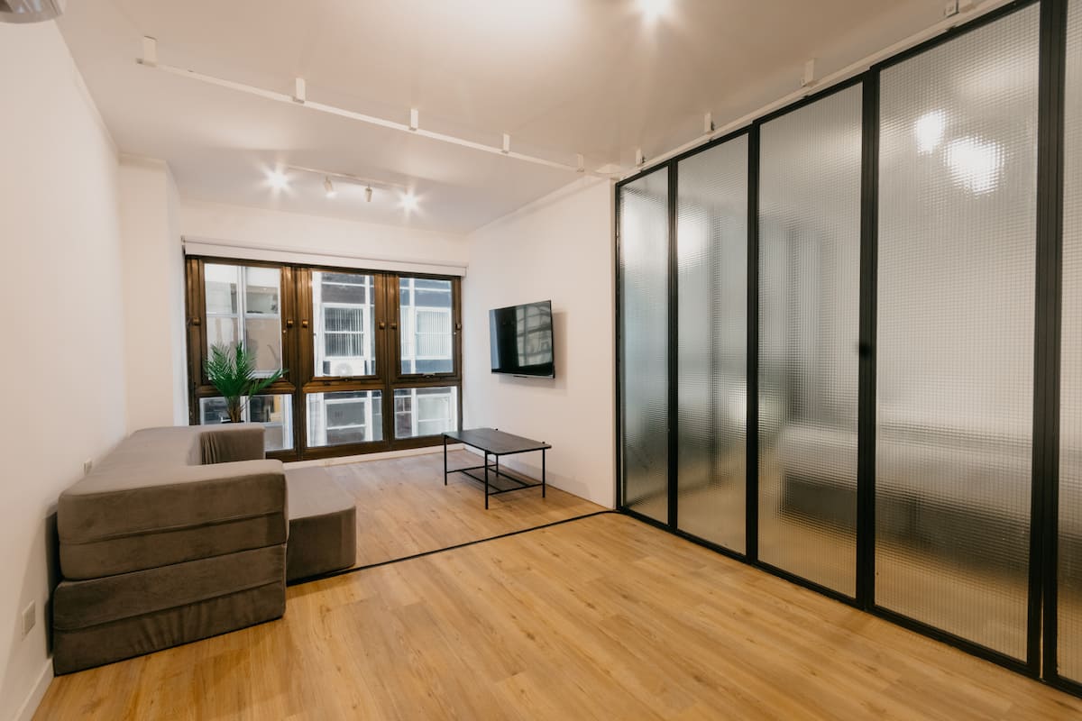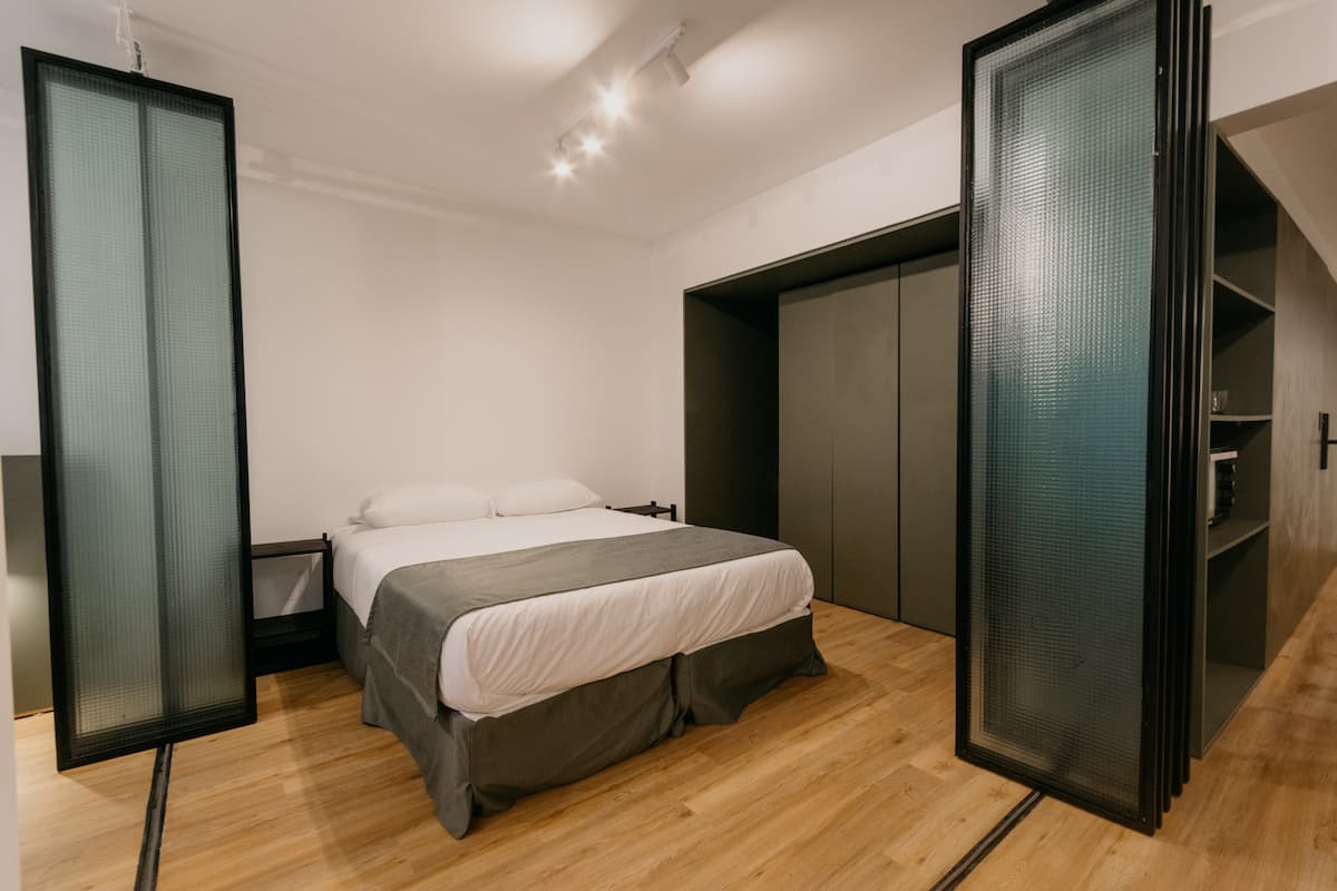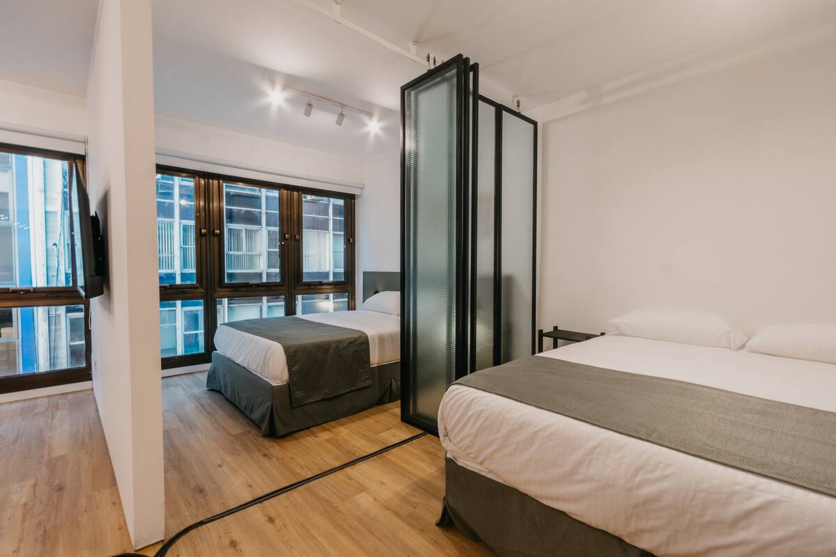 Departamento de 2 dormitorios con cama queen, 42'' TV y aire acondicionado. Incluye cocina totalmente equipada con utensilios, vajilla y copas, y 1 baño completo. El ingreso al edificio y al departamento es con acceso automatizado mediante Smart Lock y QR, y cuenta con terraza de uso compartido.