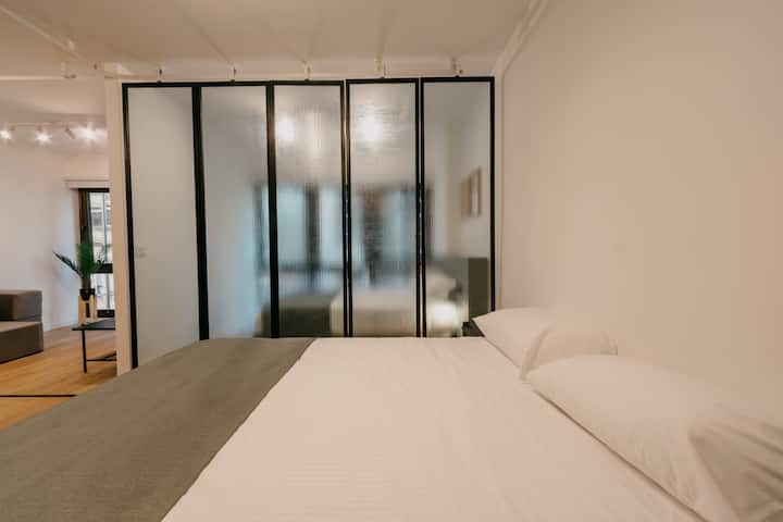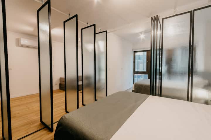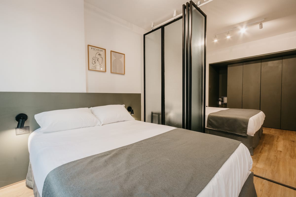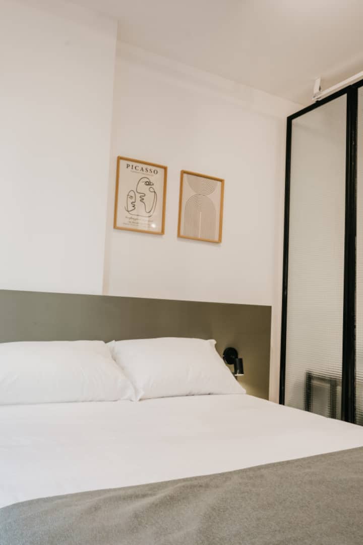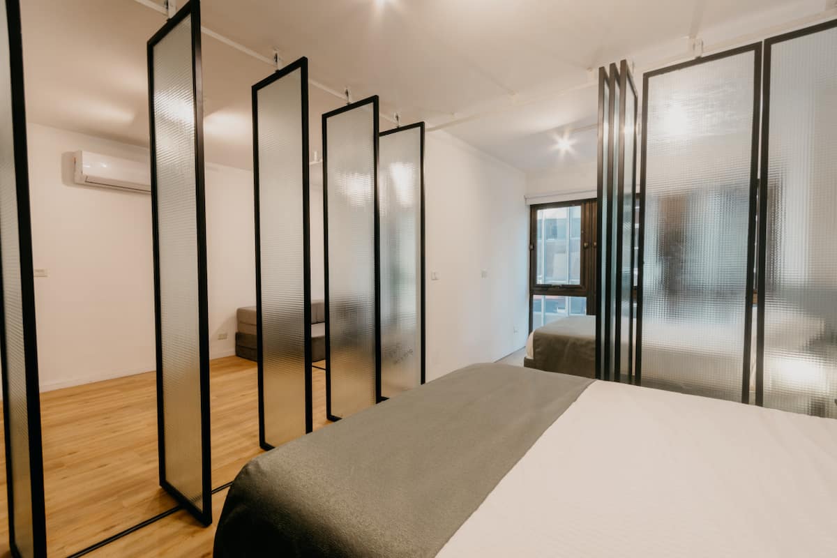 Departamento de 2 dormitorios con cama queen, 42'' TV y aire acondicionado. Incluye cocina totalmente equipada con utensilios, vajilla y copas, y 1 baño completo. El ingreso al edificio y al departamento es con acceso automatizado mediante Smart Lock y QR, y cuenta con terraza de uso compartido.