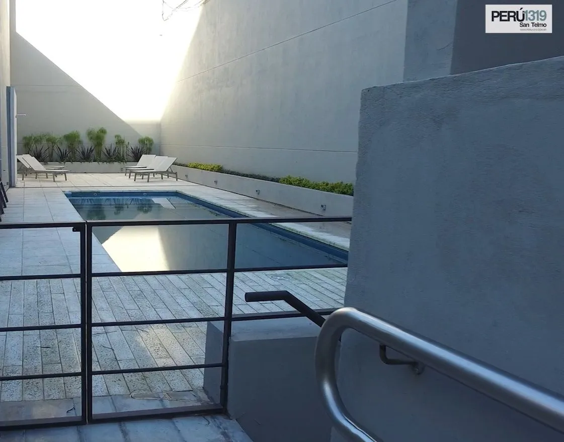 Departamento de 3 ambientes al frente en San Telmo, con balcón. Cuenta con hall de entrada, living comedor con cocina incorporada y lavadero incorporado, toillete de recepción y baño completo. Tiene 2 dormitorios con placard. El edificio dispone de vigilancia 24 horas, pileta, SUM, gimnasio y laundry.