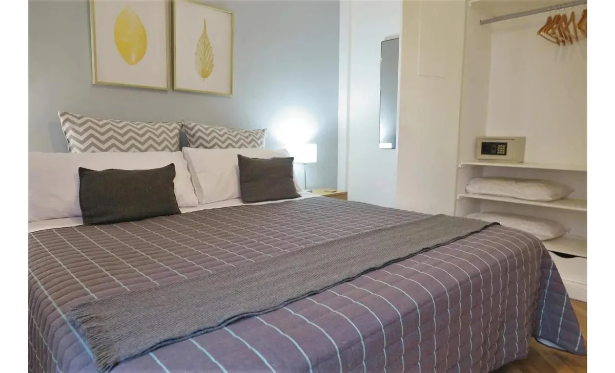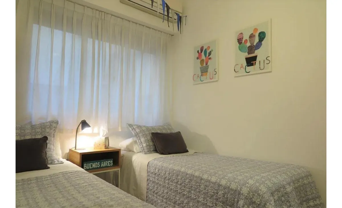 Departamento de 1 ambiente con living comedor y baño. Equipado con cama king size, TV, placares y aire acondicionado frío-calor; además, cuenta con un segundo cuarto con 2 camas twin size, placard y aire acondicionado frío-calor. Tiene 2 ascensores. El alquiler incluye expensas, luz, gas e internet; no se admiten mascotas y no se permite fumar.