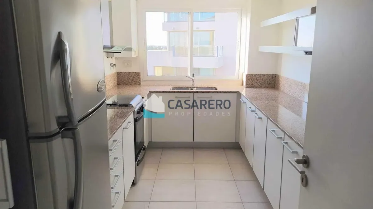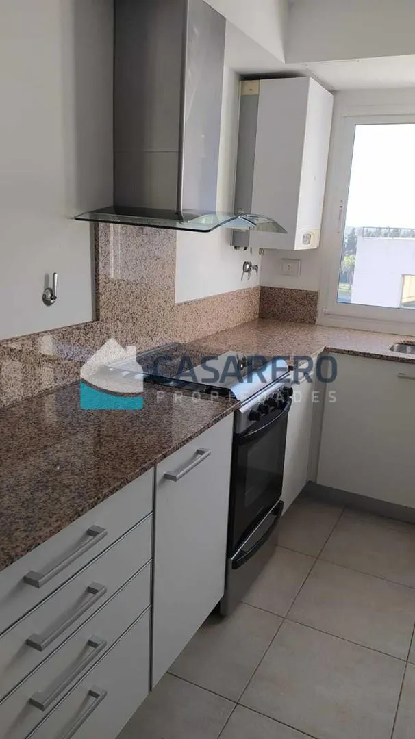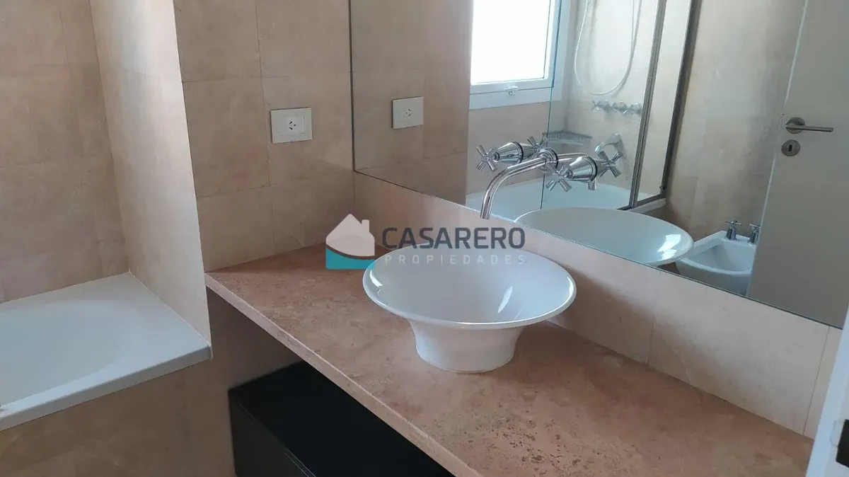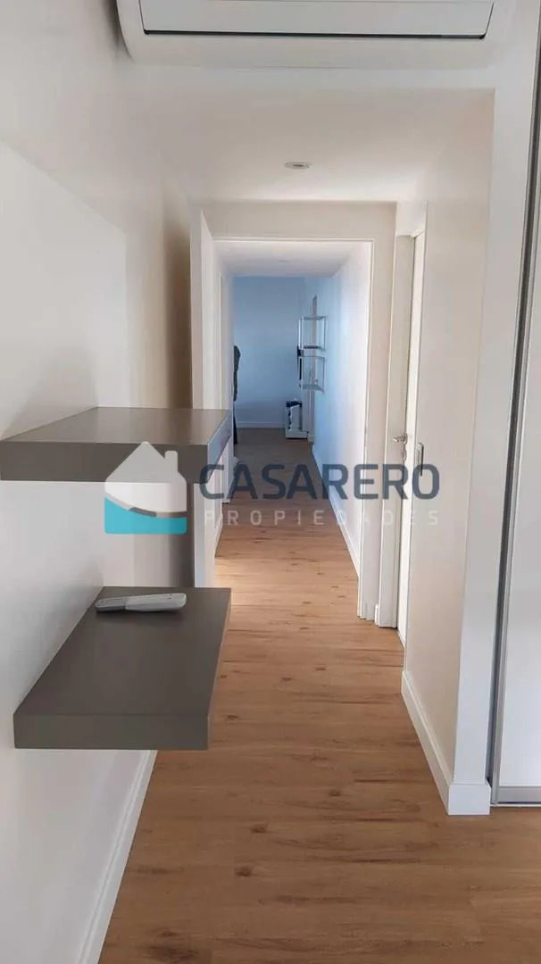 Departamento sin muebles en esquina de 2 dormitorios en suite, más toilete, cocina independiente y balcón con vista al río. Está en el complejo Terrazas de la Bahía I, en Bahía Grande, Nordelta. Incluye aire acondicionado en todos los ambientes, calefacción independiente y parrilla en el balcón, además de cochera fija cubierta. El alquiler publicado indica expensas de $530.000 y ABL de $47.000.