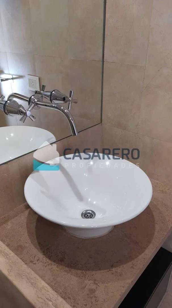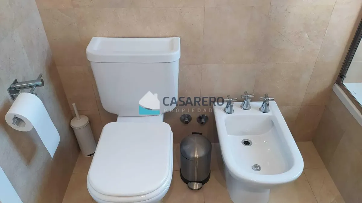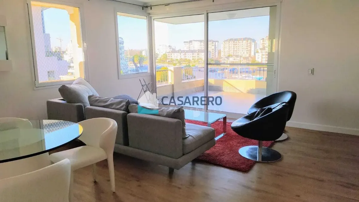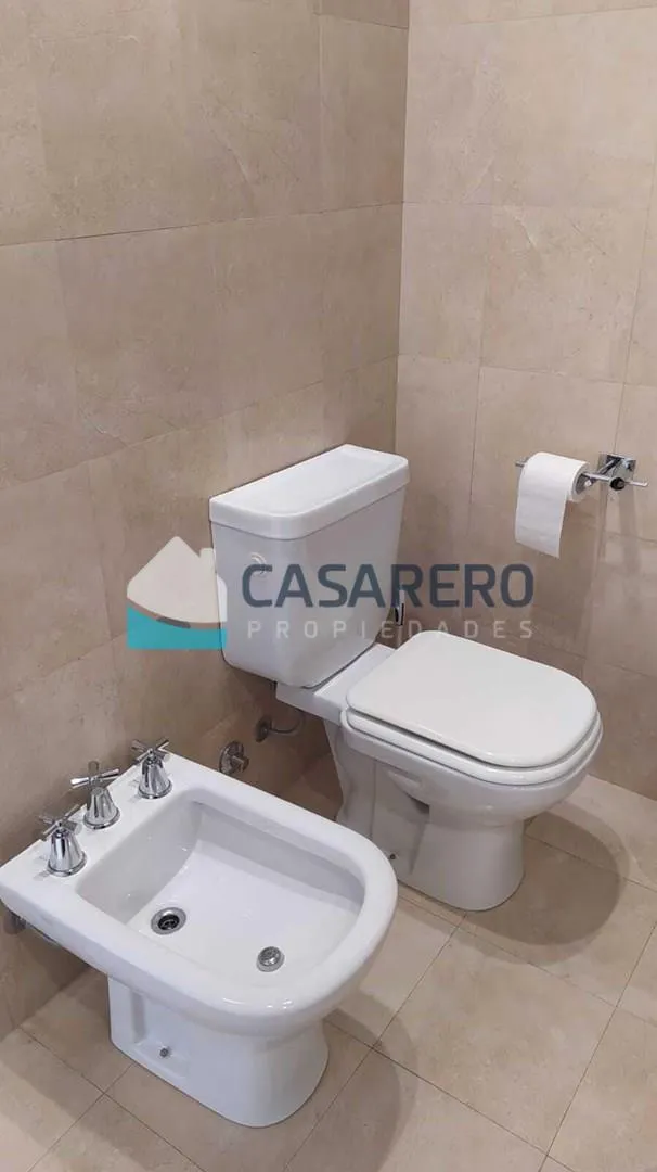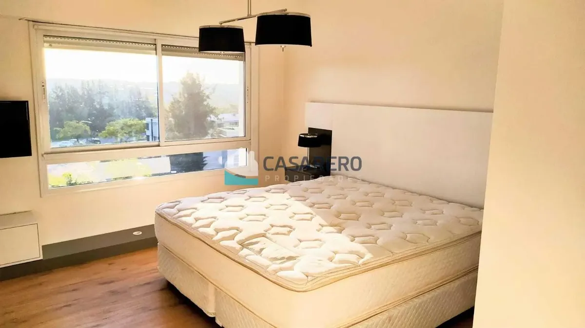 Departamento sin muebles en esquina de 2 dormitorios en suite, más toilete, cocina independiente y balcón con vista al río. Está en el complejo Terrazas de la Bahía I, en Bahía Grande, Nordelta. Incluye aire acondicionado en todos los ambientes, calefacción independiente y parrilla en el balcón, además de cochera fija cubierta. El alquiler publicado indica expensas de $530.000 y ABL de $47.000.