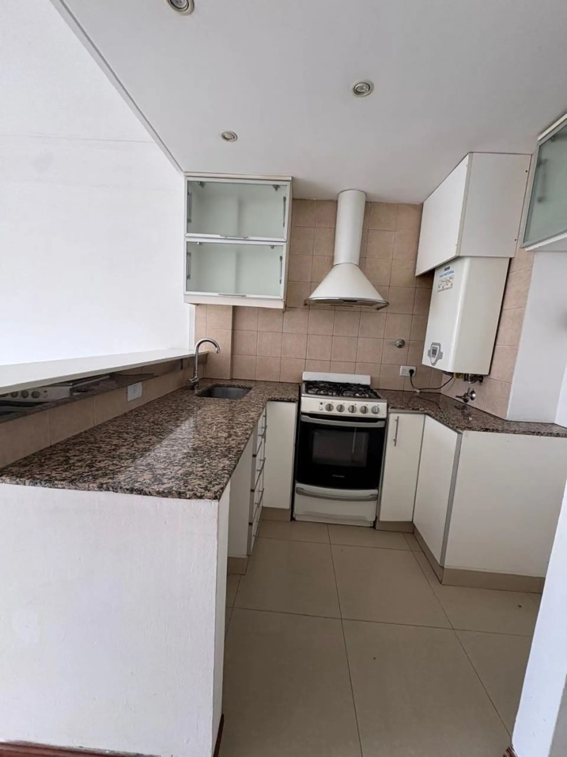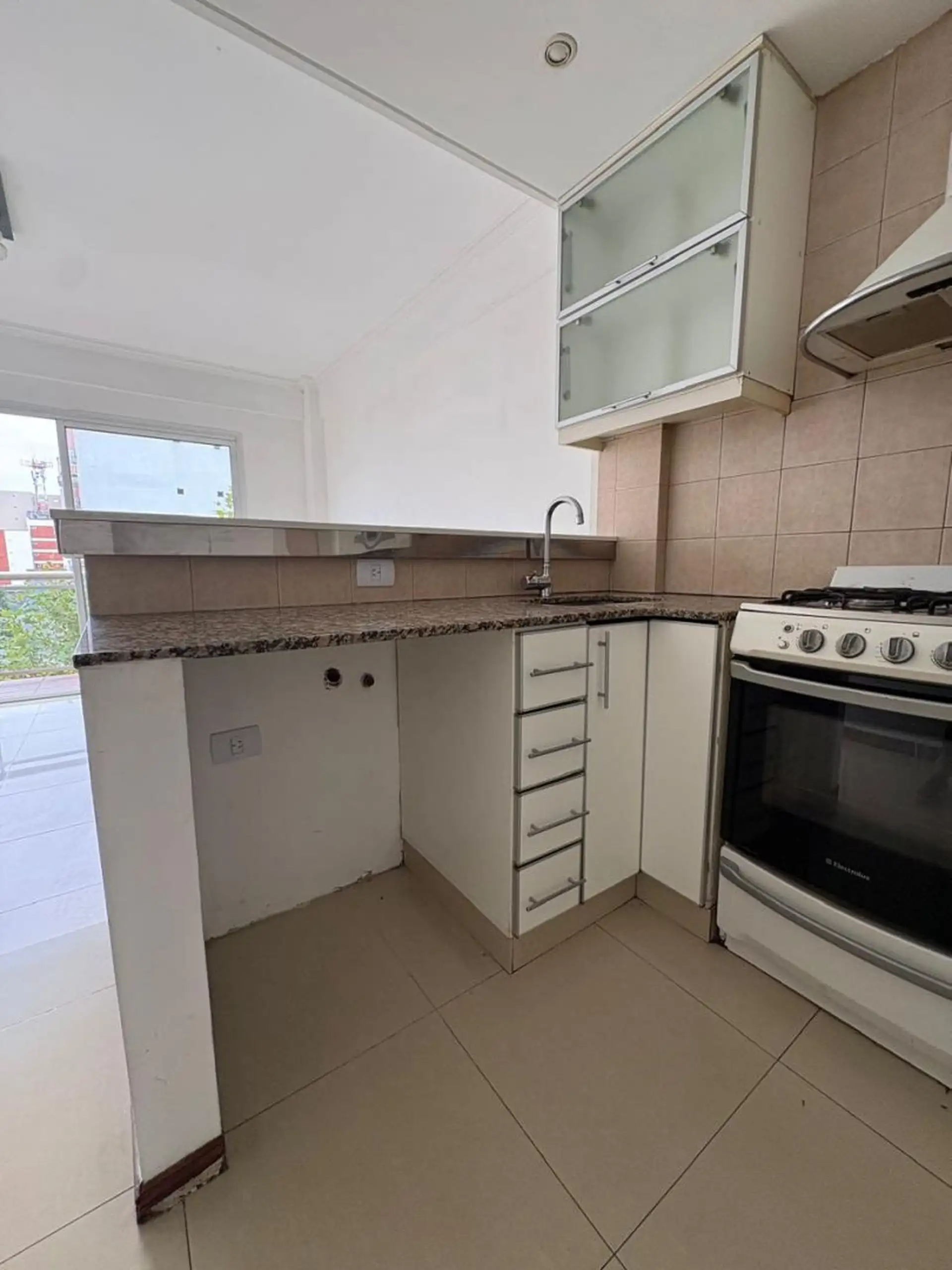Departamento de 3 ambientes en el 5º piso, unidad “A”, al frente, en Villa Sáenz Peña. Cuenta con 2 habitaciones con pisos flotantes de madera, calefacción y placard con interiores, baño con vanitory, espejo y ducha, living comedor con artefacto de iluminación, salida al balcón y cocina con barra, artefacto de cocina, muebles altos y bajos. Incluye conexión para lavarropas y calefón, y cochera descubierta. El alquiler es $950.000 + expensas + servicios + ABL + seguro del inmueble, con ajuste tri