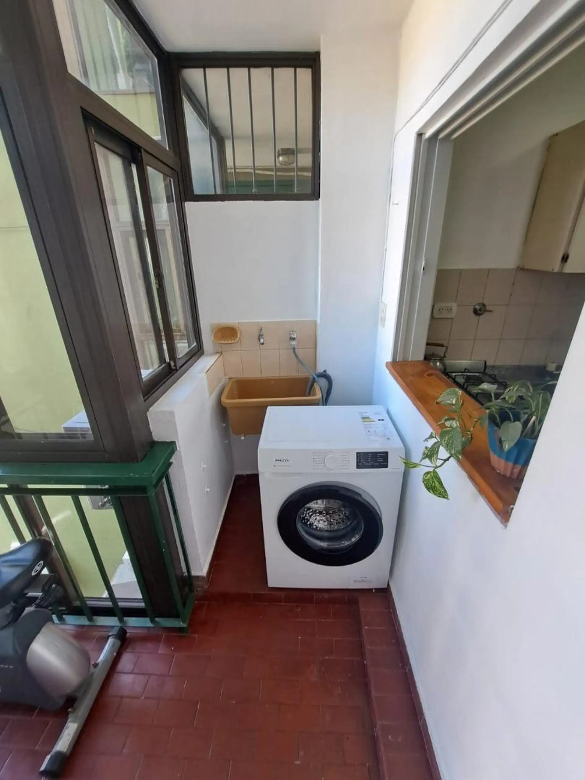 Departamento de 3 ambientes al frente, 65 m², con cochera fija y cubierta. Living-comedor en L, 2 dormitorios al frente con placard y salida a balcón corrido, baño completo, cocina con muebles altos y bajos y lavadero independiente. Apto profesional; el contrato es por 24 meses con ajuste trimestral por IPC. A la cuenta del inquilino: luz, gas, Aysa, TSG y expensas.