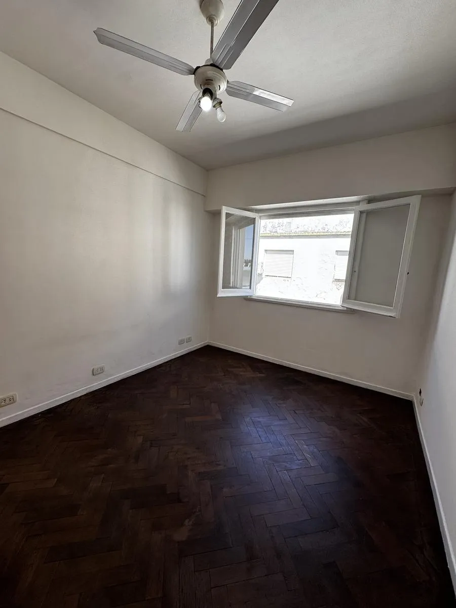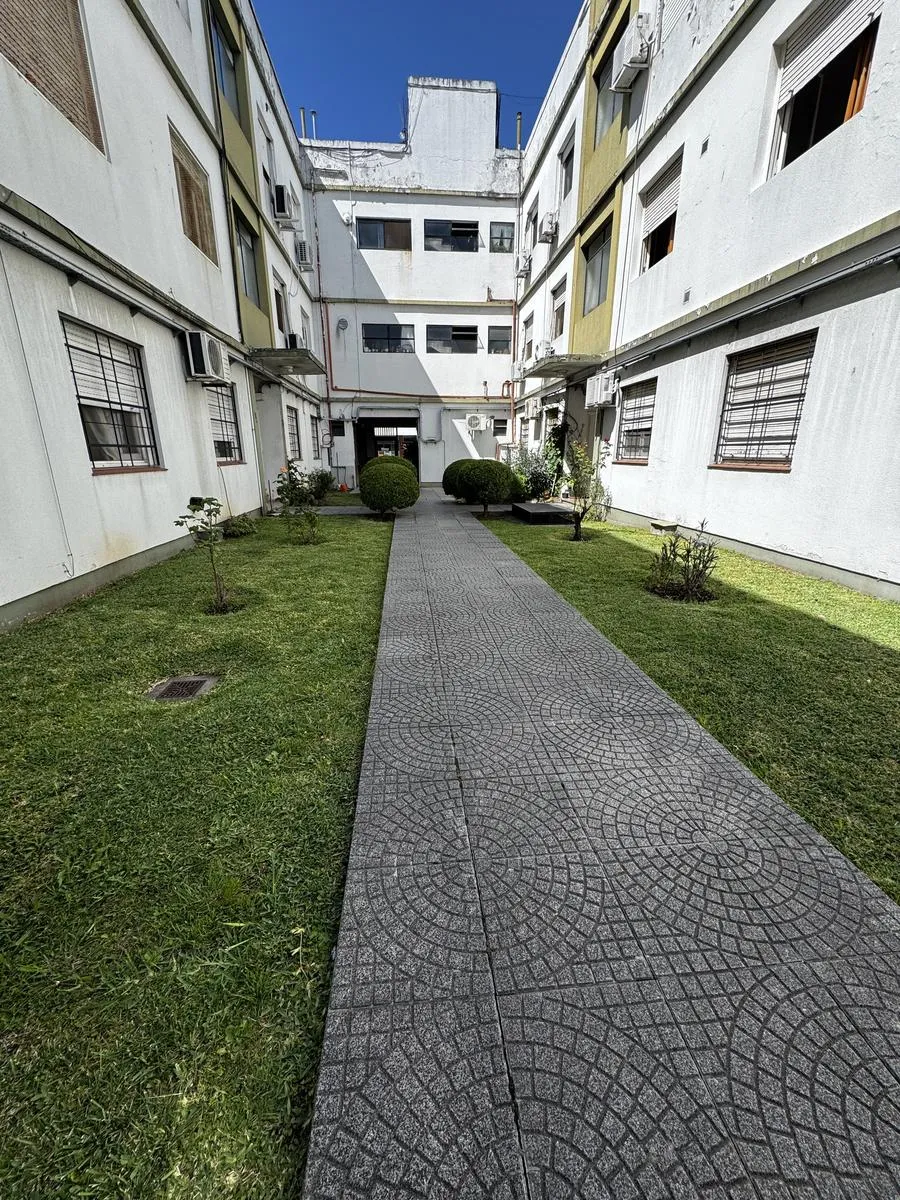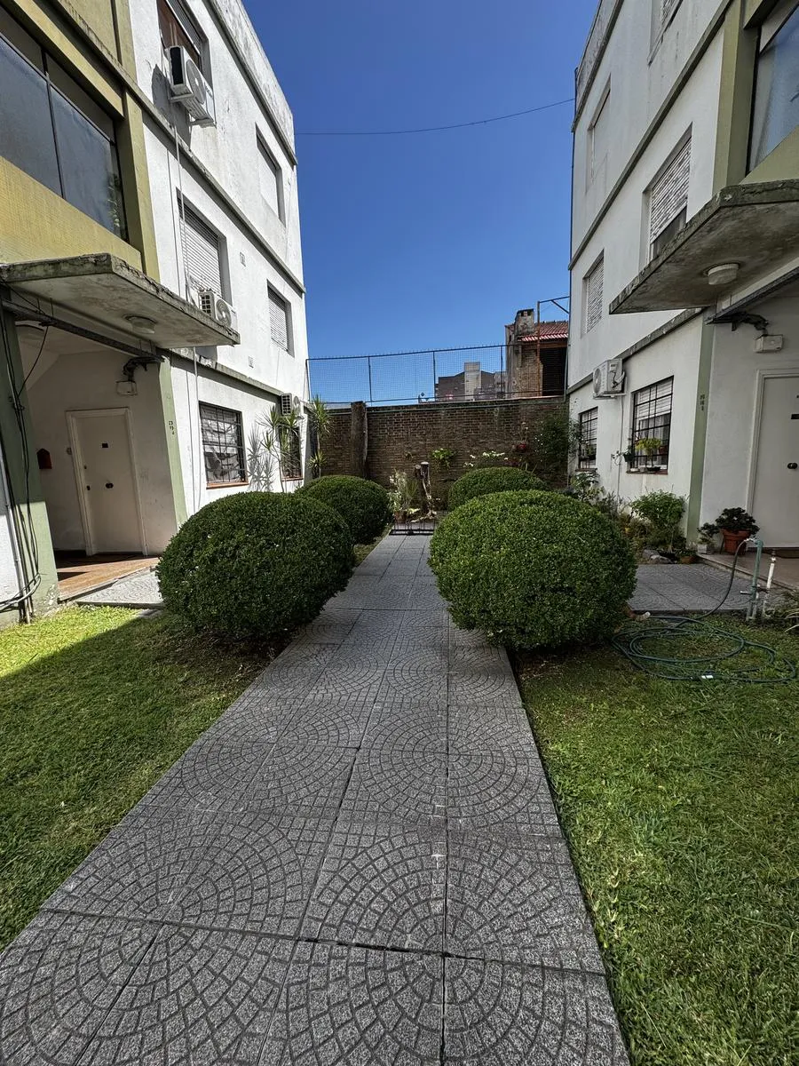 Departamento de 3 ambientes al frente, en 2do piso por escalera, en un complejo con espacios verdes. Cuenta con living-comedor con aire acondicionado y vista directa al jardín de planta baja, y cocina independiente con ventanal y vista a la Basílica de Lourdes. Tiene 2 dormitorios con placard empotrado y ventilador de techo, un baño completo con vanitory y bañera, y lavadero independiente con pileta, espacio y conexión para lavarropas y termotanque. El complejo dispone de jardín de uso común y u