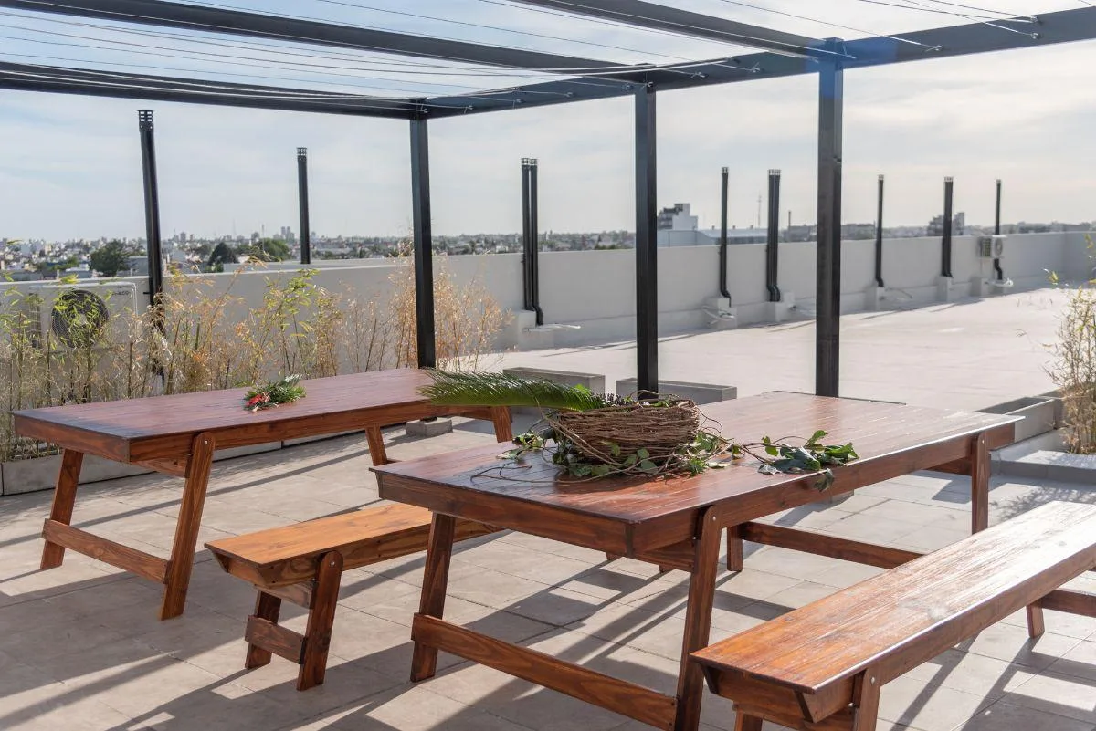 Departamento de 3 ambientes con 58,2 m² cubiertos y 5,04 m² descubiertos, en 4to piso. Amoblado y equipado, con cocina Domec con mesada de granito, muebles bajo mesada y alacenas, heladera y microondas. Living-comedor con TV, rack y vajillero, ambas habitaciones con cama y placards, cortinas dobles (sunscreen y blackout) y aire acondicionado frío-calor. Cuenta con 2 balcones con doble orientación y vista abierta, y laundry con lavarropas y termotanque de 80 lts. Baño con sanitarios Ferrum, grife