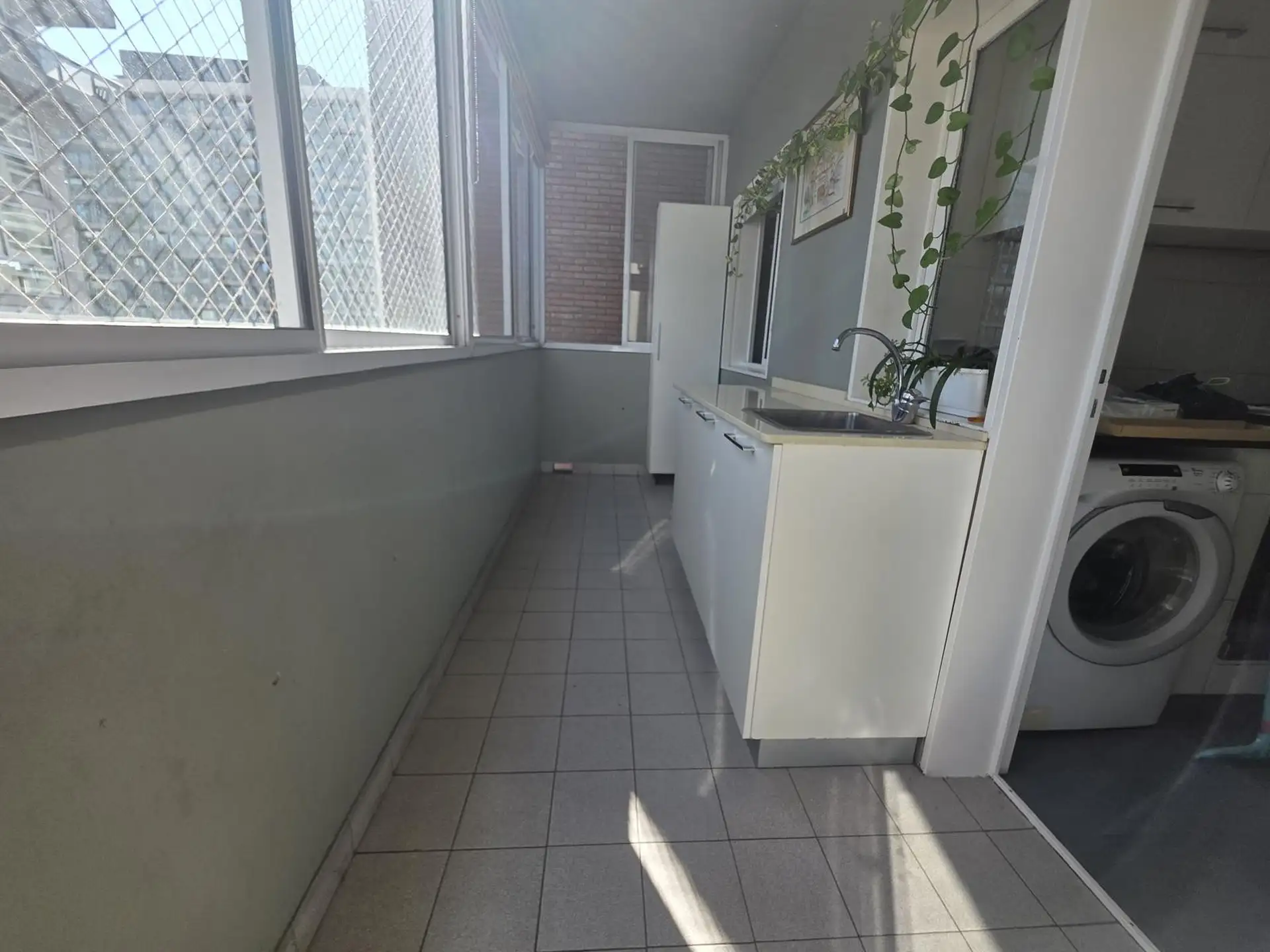 Departamento de 3 ambientes con balcón en Vicente López. Cuenta con 2 dormitorios, living comedor con salida al balcón y orientación norte. Tiene 56 m² cubiertos y 66 m² totales, con 10 m² semicubiertos. La cocina incluye lavarropas y heladera con freezer; dispone de 1 baño completo con bañera, aire acondicionado individual y calefacción por gas. El balcón es abierto y cuenta con cerramiento y mesada con bacha para lavadero. Incluye cochera fija cubierta y bicicletero exclusivo de la unidad. El