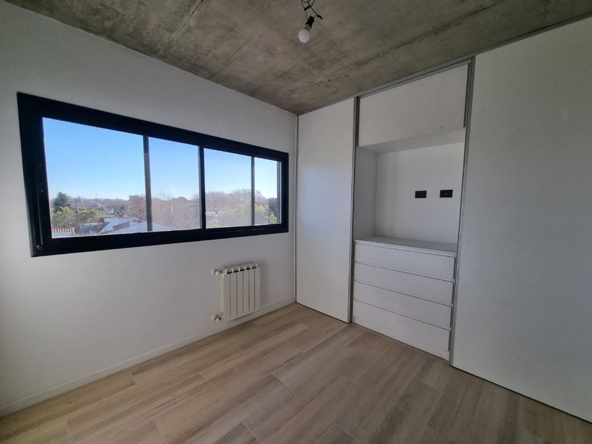 Departamento de 3 ambientes en alquiler en Florida, Vicente López. Cuenta con 80 m² totales (72 m² cubiertos y 8 m² semicubiertos): living comedor, balcón de 1,52 x 5,48 m y cocina separada de 2,00 x 2,88 m. Dos dormitorios al contrafrente, uno con baño en suite; calefacción por radiadores. Incluye cochera en planta baja con portón automático, terraza con solarium y parrilla, y laundry individual. Construcción estrenada en 2023; contrato por 2 años.