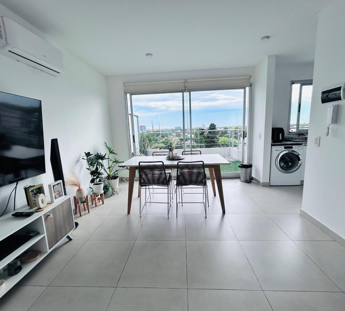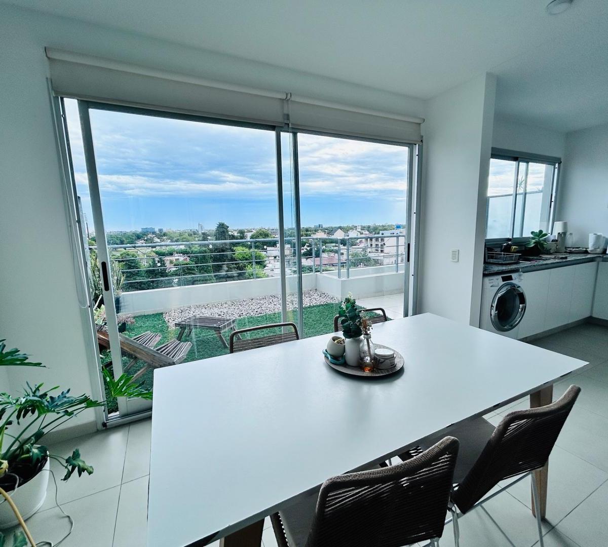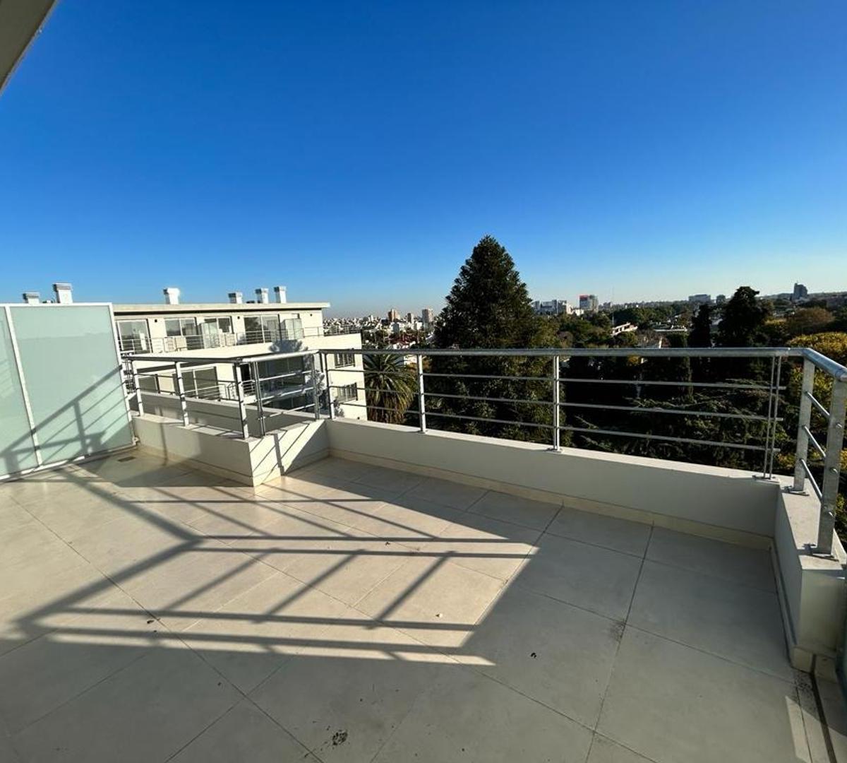 Departamento dúplex de 2 dormitorios en Vicente López, con balcón y ventilación mediante ventanales herméticos. En planta baja tiene 2 habitaciones, baño completo y acceso a una terraza amplia a cielo abierto; el área social integra living y comedor con salida a la terraza y vistas abiertas. Cocina con horno eléctrico longvie de 5 programas y anafe eléctrico de 4 hornallas, con espacio para lavarropas. Cuenta con aire acondicionado frío/calor en todos los ambientes y agua caliente provista por c