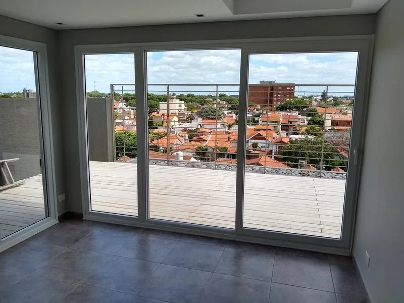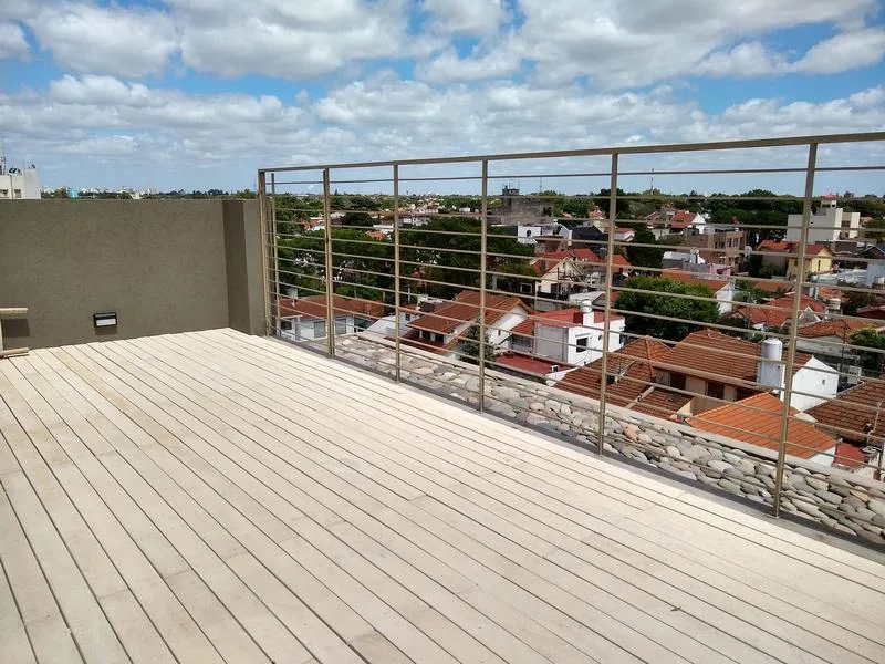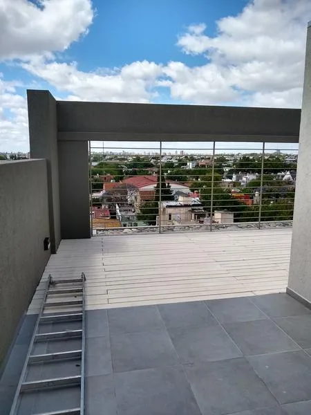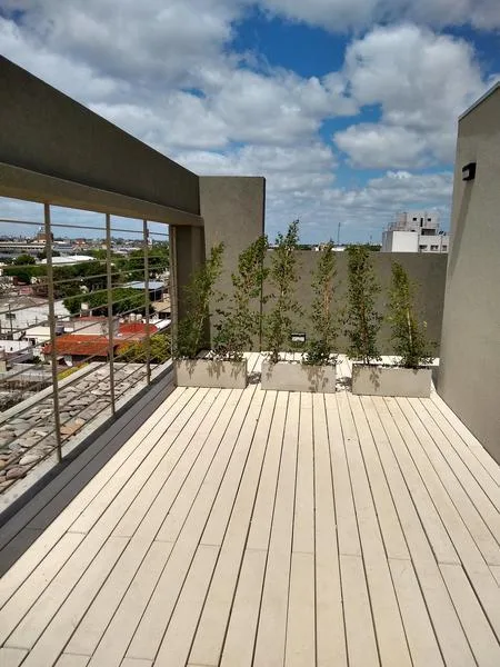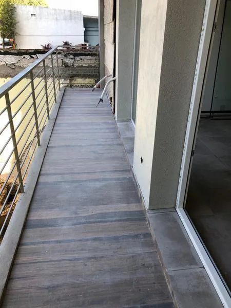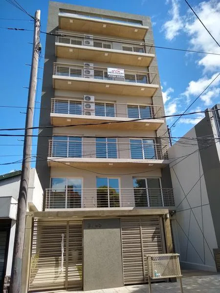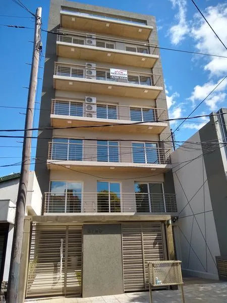 Departamento semipiso al frente con 2 dormitorios, 1 baño y toillette. Cuenta con aire acondicionado y balcón corrido de 7,46 m x 1,2 m. Incluye cochera cubierta y se describe como todo eléctrico.
