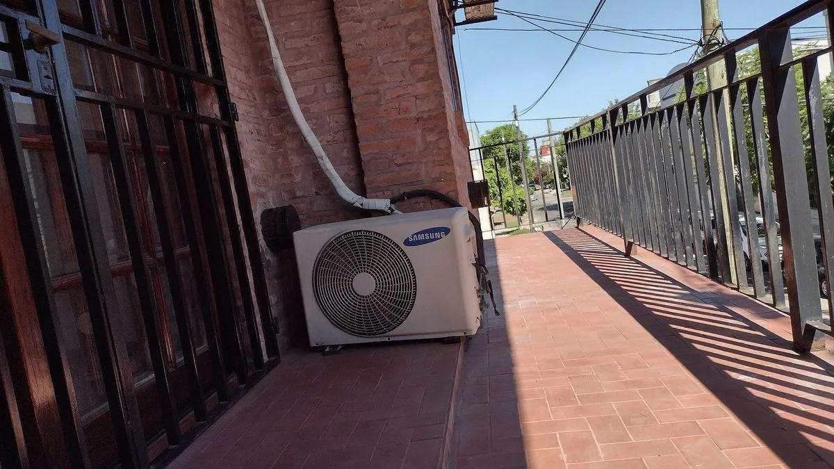 PH tipo casa de 3 ambientes, en primer piso por escalera, al frente, dentro de un complejo de 3 viviendas. No paga expensas. Living con salida al balcón, cocina separada con muebles bajo mesada, lavadero cubierto, 1 baño completo con mampara y 2 habitaciones con placard; una con aire acondicionado y salida al balcón, y otra con ventana al patio. Patio pequeño con parrilla.