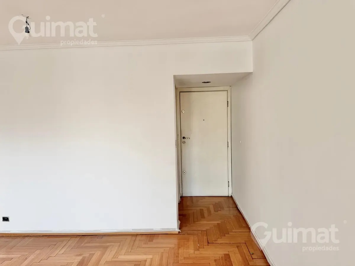 Departamento de 3 ambientes en Villa Crespo, en el 6º piso al contrafrente sobre Av. Corrientes, con vista abierta al Este. Cuenta con living-comedor y cocina con doble circulación, balcón terraza con protección de malla y lavadero cubierto con espacio para lavarropas. Tiene 2 dormitorios con placards, baño completo con vanitory y bañera, 2 equipos split frío y pisos de parquet en living, halls y dormitorios; el resto es cerámico. La calefacción y el agua caliente son centrales por caldera indiv