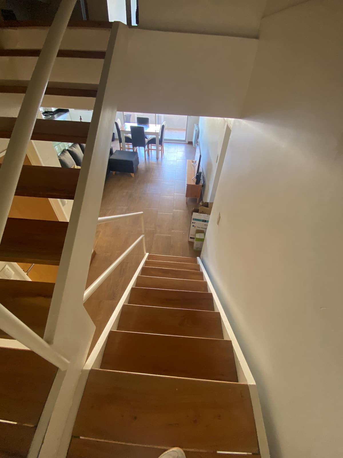 Duplex en Villa Crespo con 2 dormitorios. El dormitorio principal tiene baño en suite, aire acondicionado y balcón. El segundo dormitorio tiene baño completo y no tiene aire acondicionado; hay ventilador bajo pedido. El living cuenta con aire acondicionado y salida a una terraza balcón con mesa y sillas. Incluye cocina amplia y sector de lavadero.