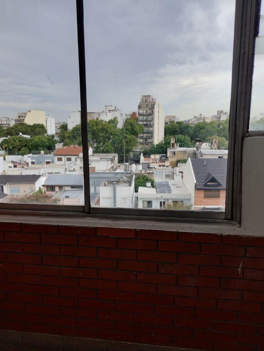 Departamento de 3 ambientes de 2 dormitorios y 1 baño completo, disposición contrafrente, con balcón y cerramiento. Cuenta con living comedor con hogar, cocina comedor y lavadero independiente. El edificio tiene 7 pisos, 3 departamentos por piso y ascensor. La cochera fija cubierta es para automóvil mediano a nivel de vereda y las expensas son de $200.000.