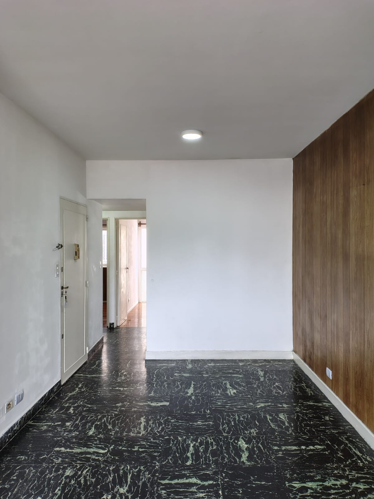 Departamento de 3 ambientes con living comedor de piso cerámico y balcón con cerramiento. Cuenta con 2 dormitorios con placards y piso parquet, y un hall íntimo con placard. Cocina con alacenas colgantes, bajo mesada y cocina a gas; lavadero cubierto con calefón a gas.
