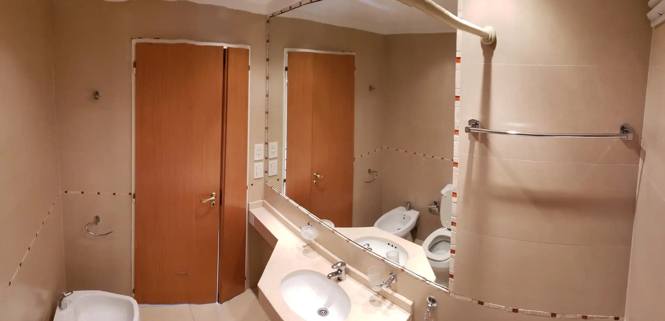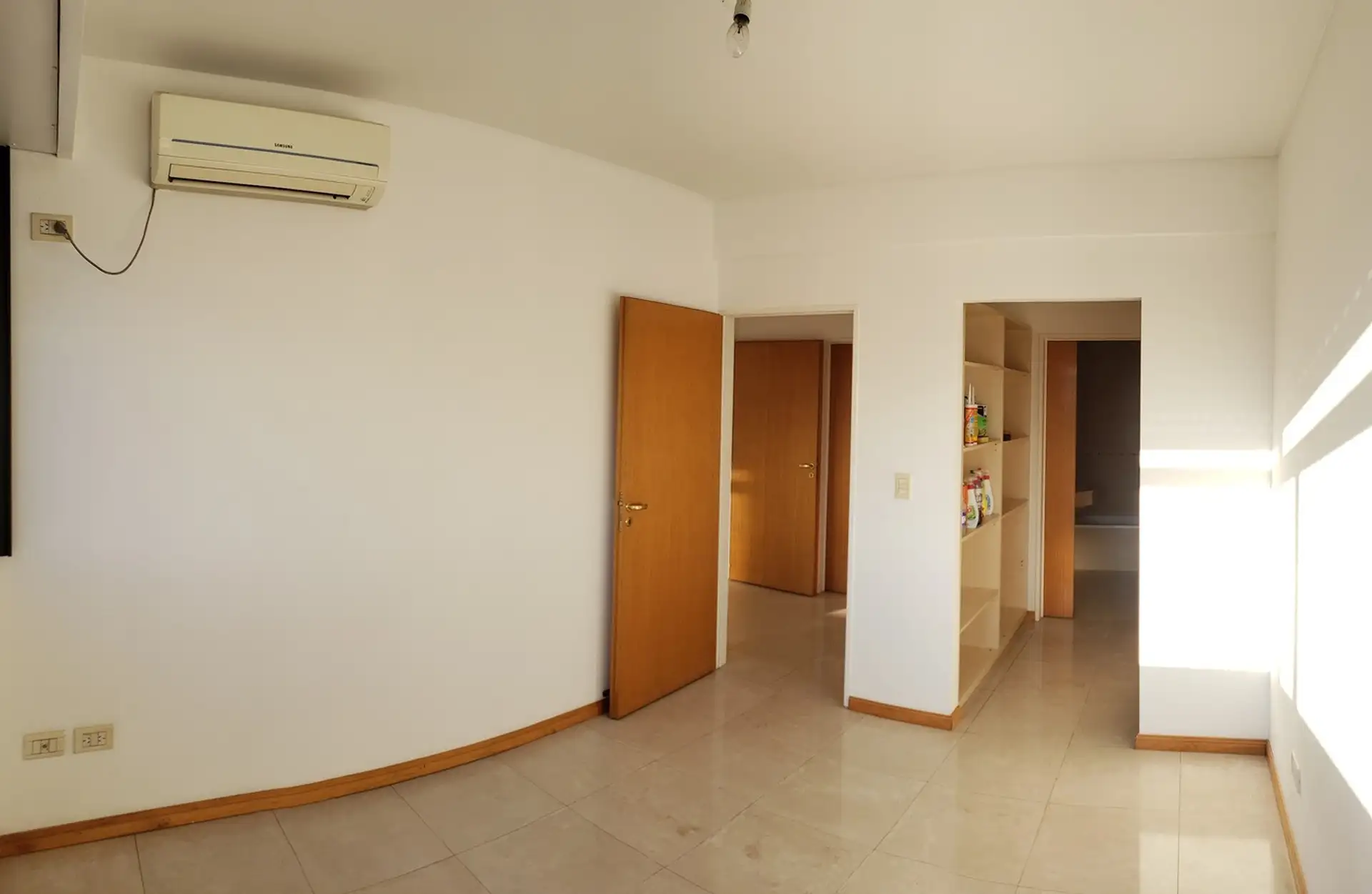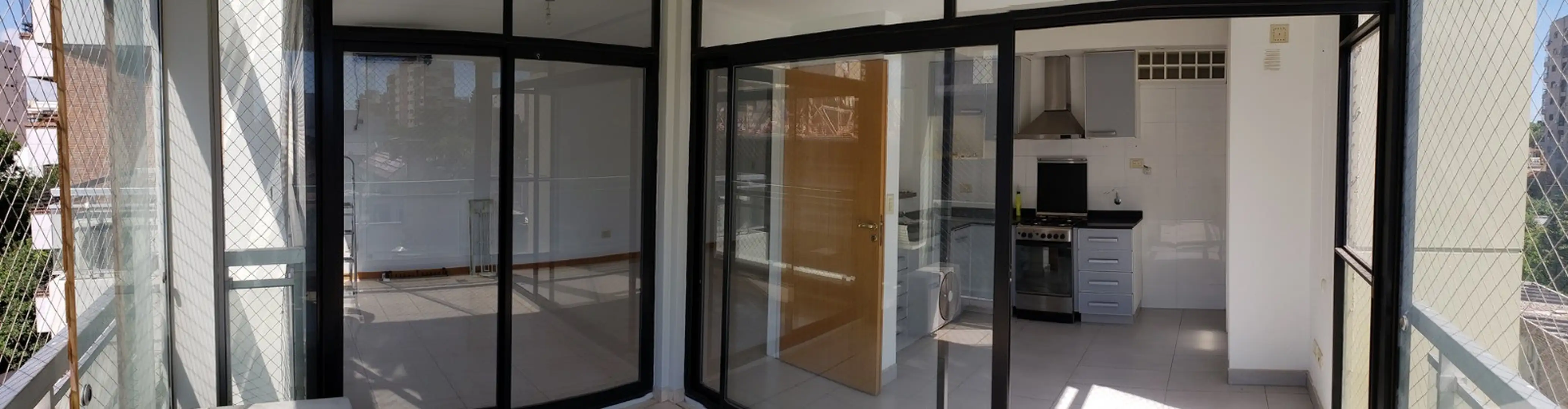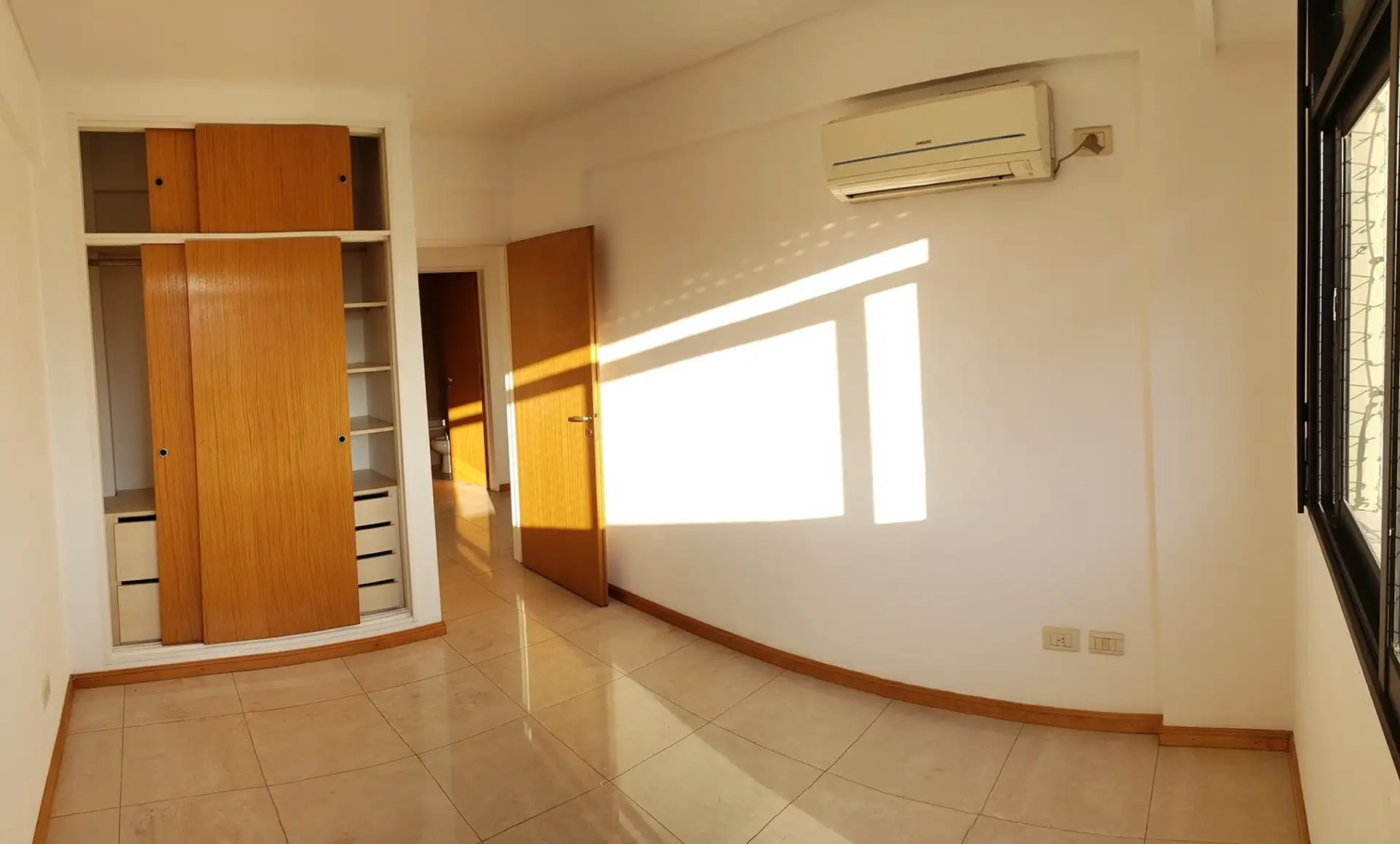 Departamento de 3 ambientes al frente en Villa del Parque, de 80 m². Cuenta con 2 dormitorios, uno en suite con baño completo, cocina independiente con lavadero y balcón con cerramientos. Dispone de aire acondicionado split y cochera fija cubierta. El edificio ofrece piscina, gimnasio, parrilla, SUM y vigilancia 24 horas; se ubica a metros de Av. Cuenca.