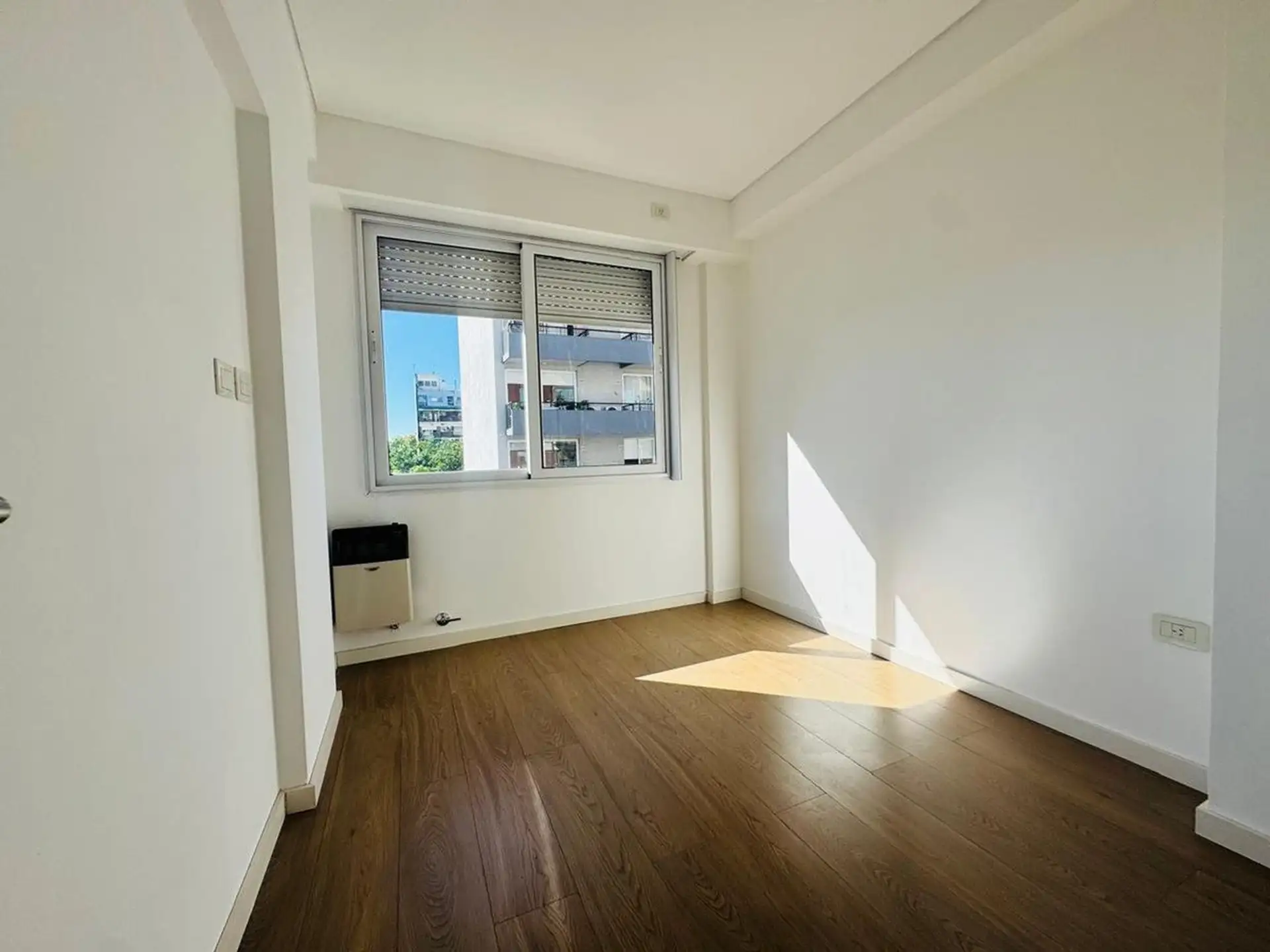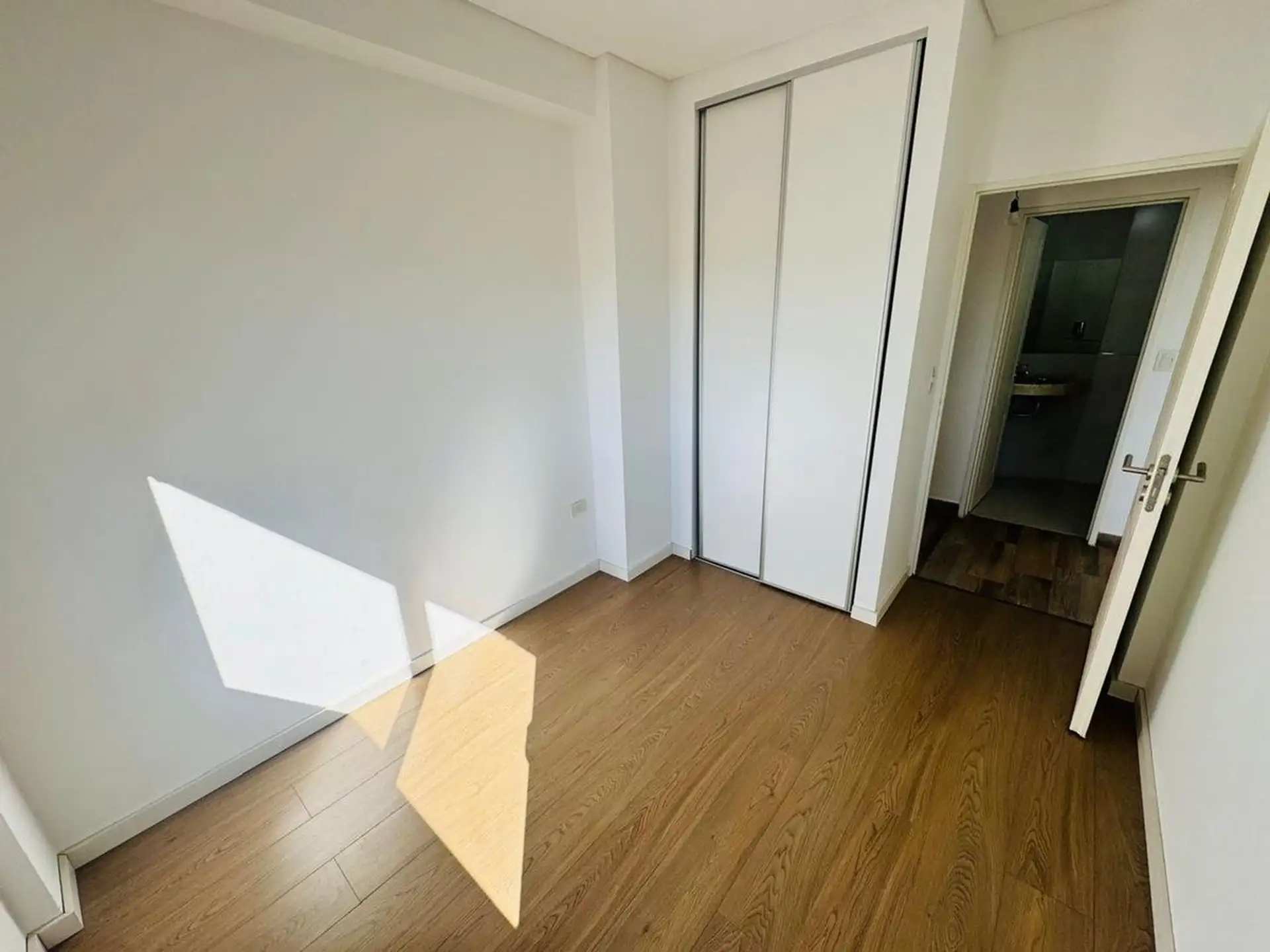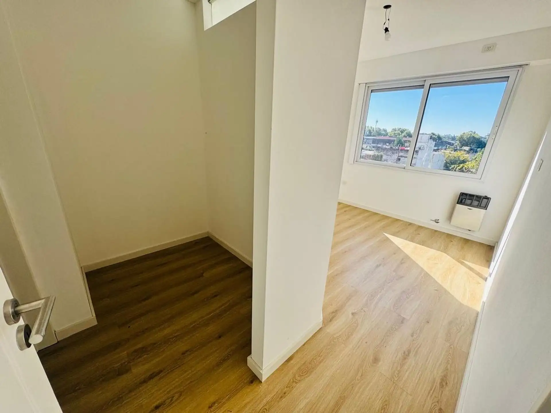 Departamento de 3 ambientes con 2 dormitorios, vestidor independiente, cocina integrada al living comedor y 2 baños. Se ubica en el 4° piso de un edificio de 8 niveles, con orientación que asegura luz natural durante el día. Incluye balcón con parrilla y lavadero.