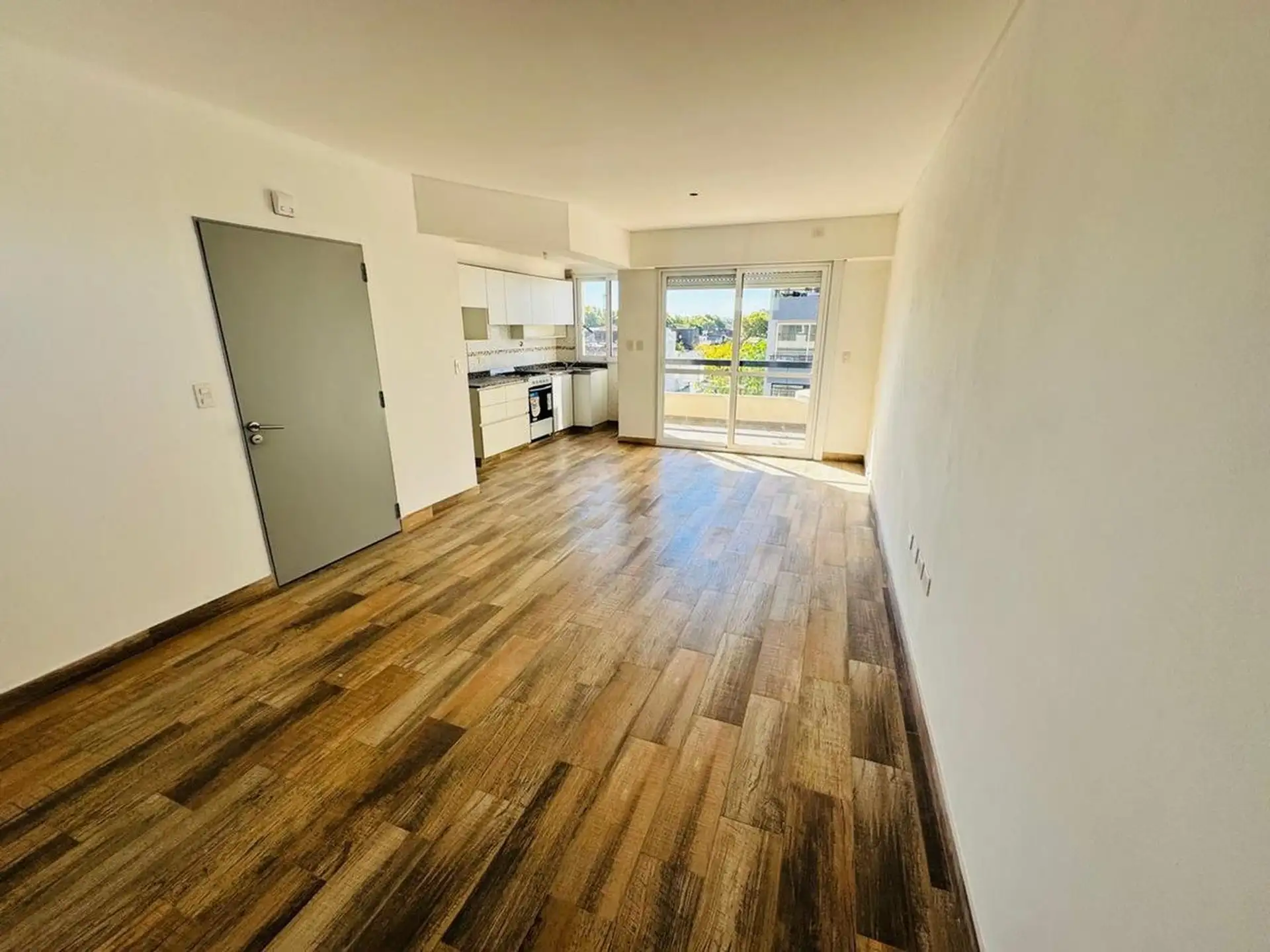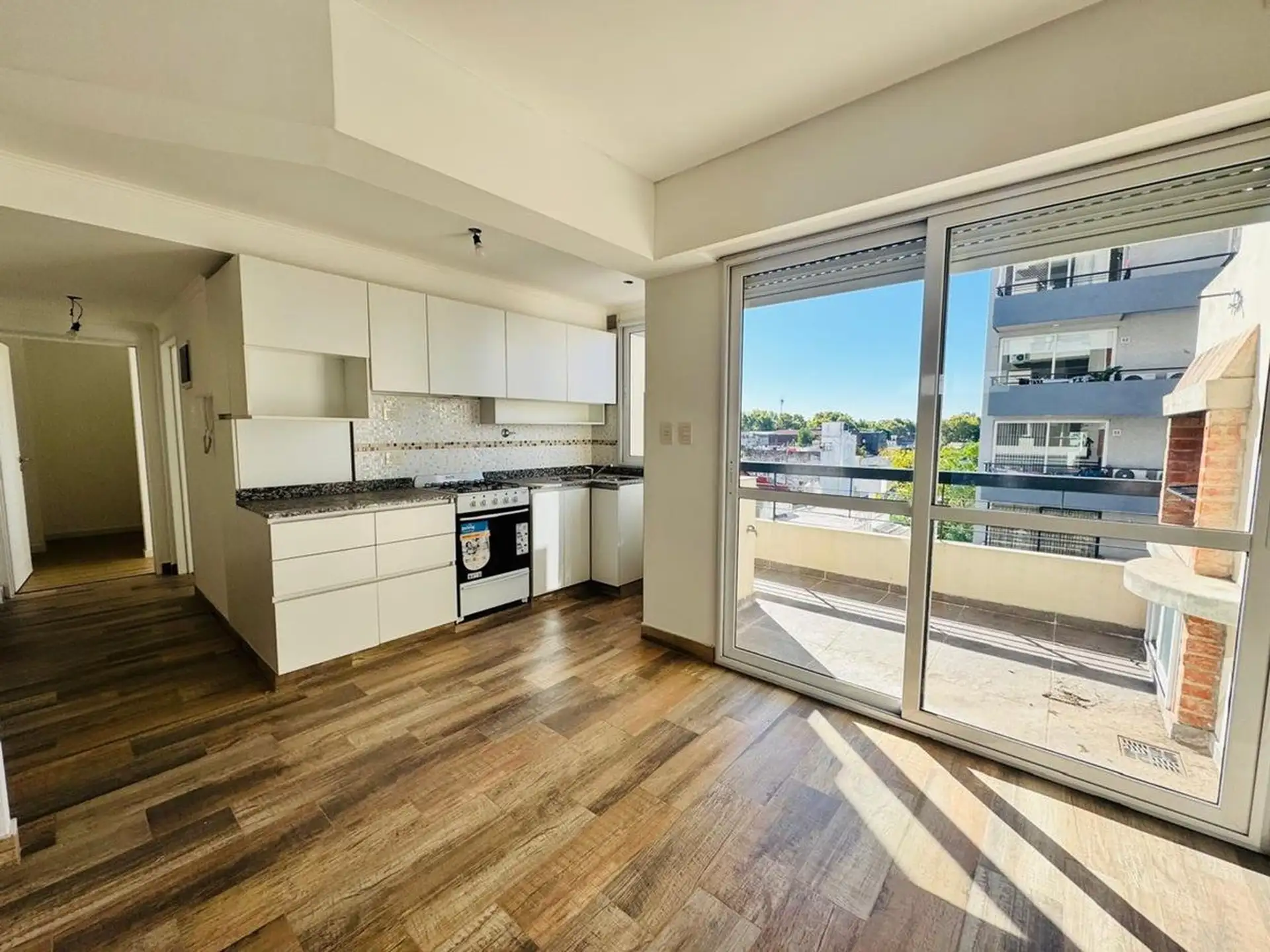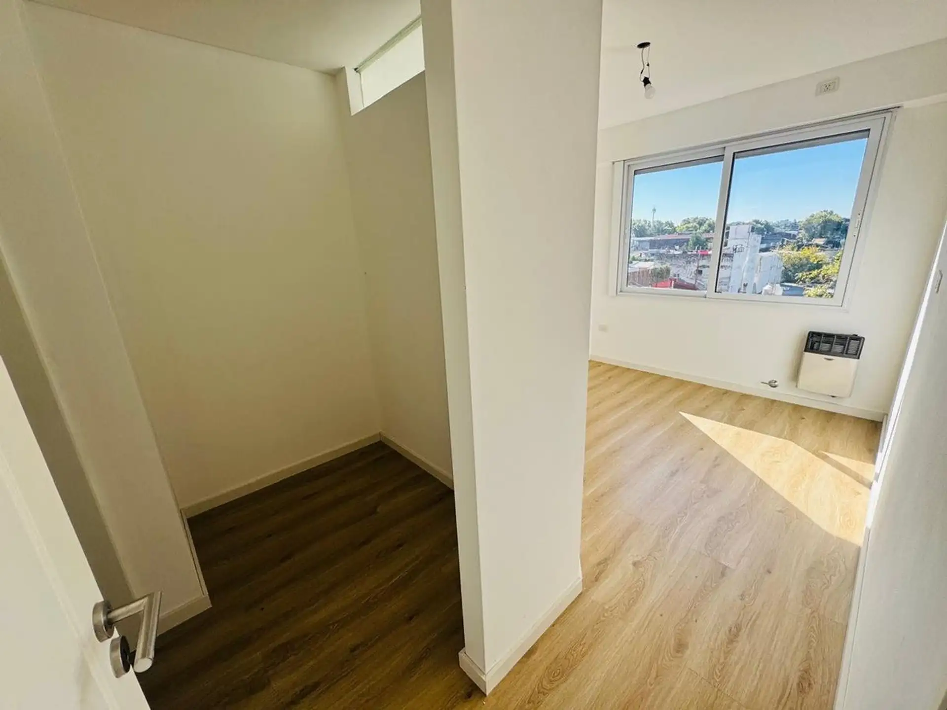Departamento de 3 ambientes con 2 dormitorios, vestidor independiente, cocina integrada al living comedor y 2 baños. Se ubica en el 4° piso de un edificio de 8 niveles, con orientación que asegura luz natural durante el día. Incluye balcón con parrilla y lavadero.