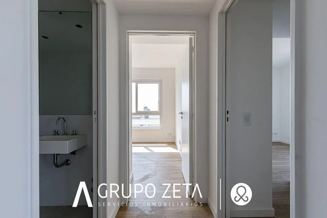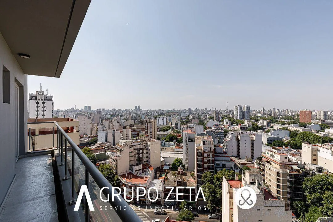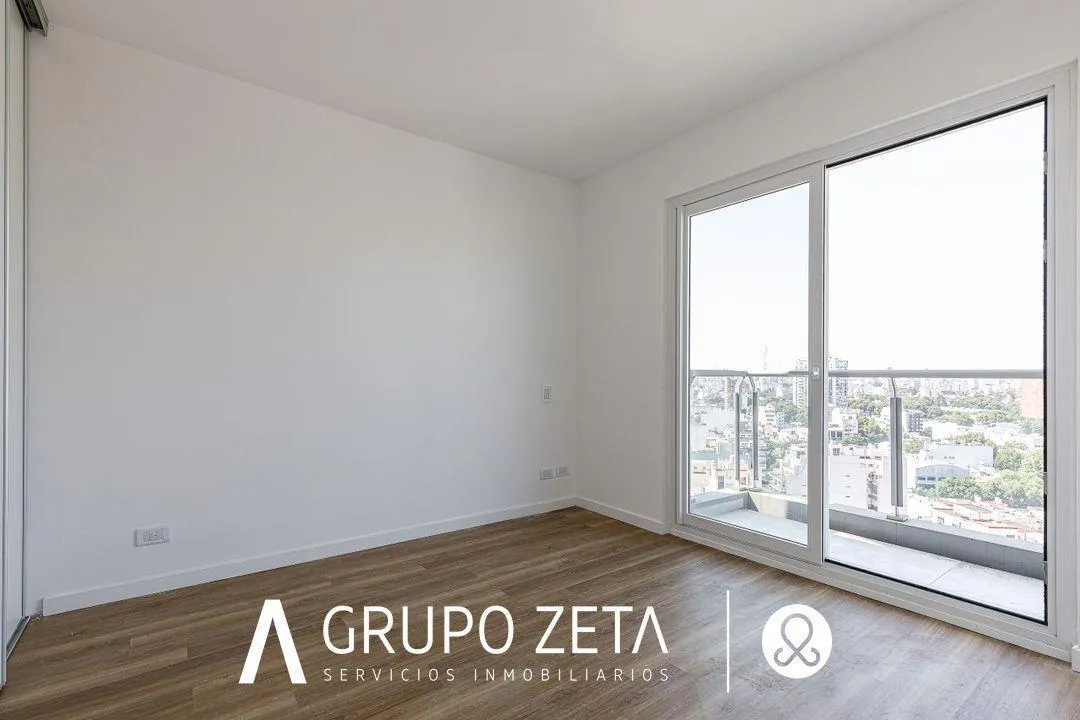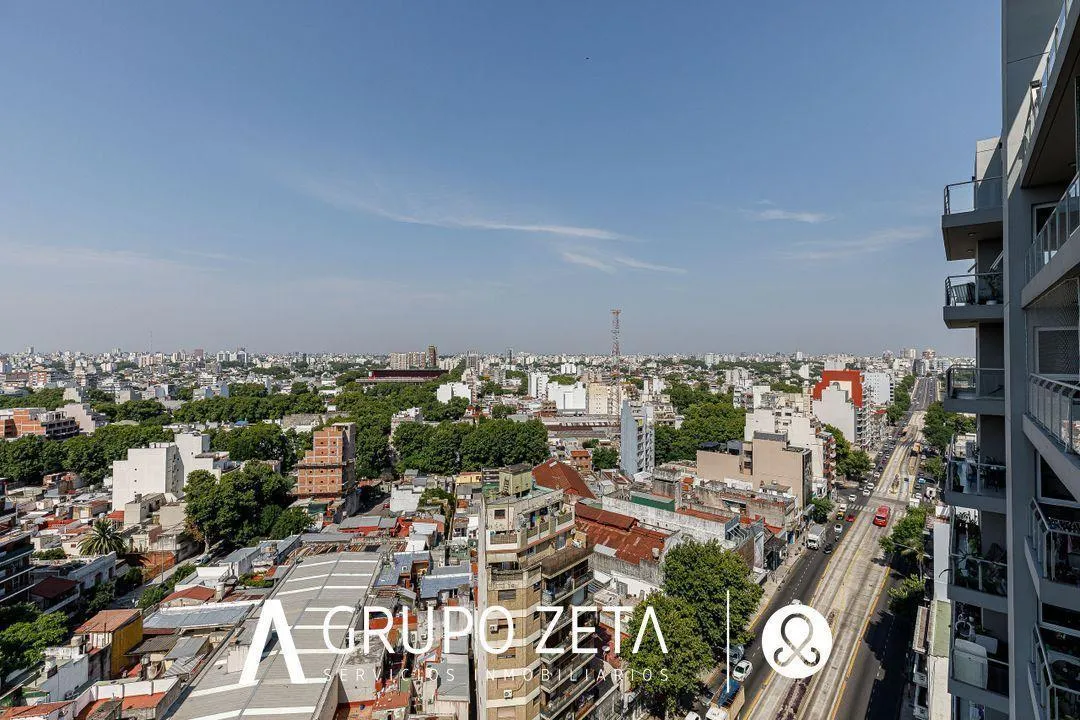 Departamento de 3 ambientes a estrenar en Torre NOVA, con cochera, sobre Av. San Martín, en Villa General Mitre. Tiene 66 m² totales (58 m² cubiertos y 8 m² de balcón), orientación sur, en piso alto. Living comedor con salida al balcón, cocina separada completamente eléctrica. Dos dormitorios, el principal en suite con salida directa al balcón, un baño completo en suite y un toilette con ducha. El edificio cuenta con piscina con solárium, SUM panorámico con parrilla, gimnasio, laundry y segurida