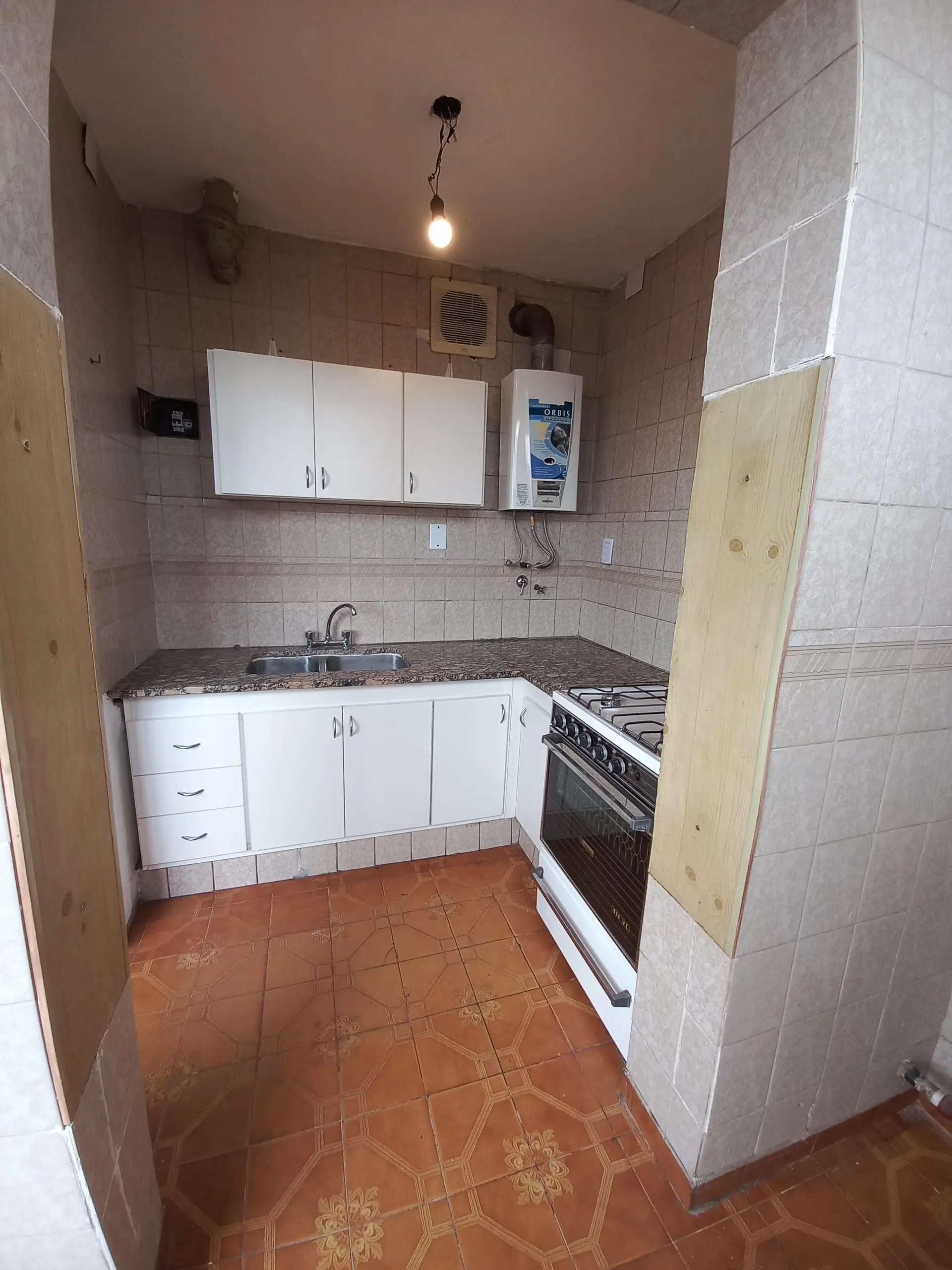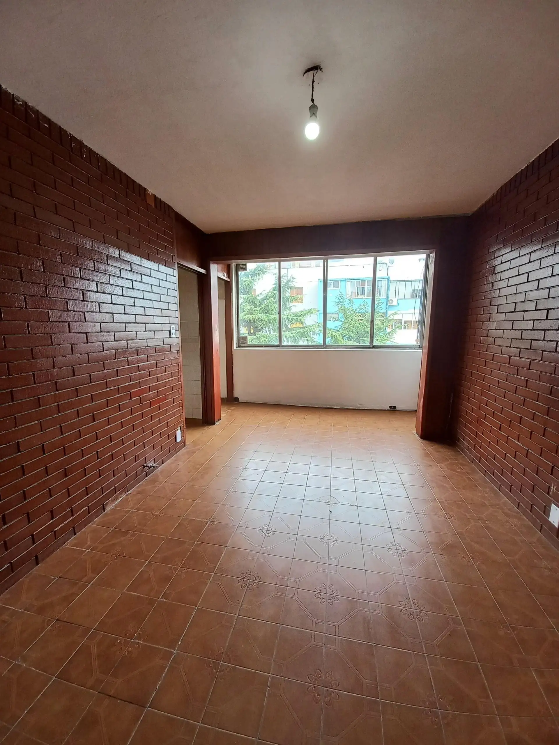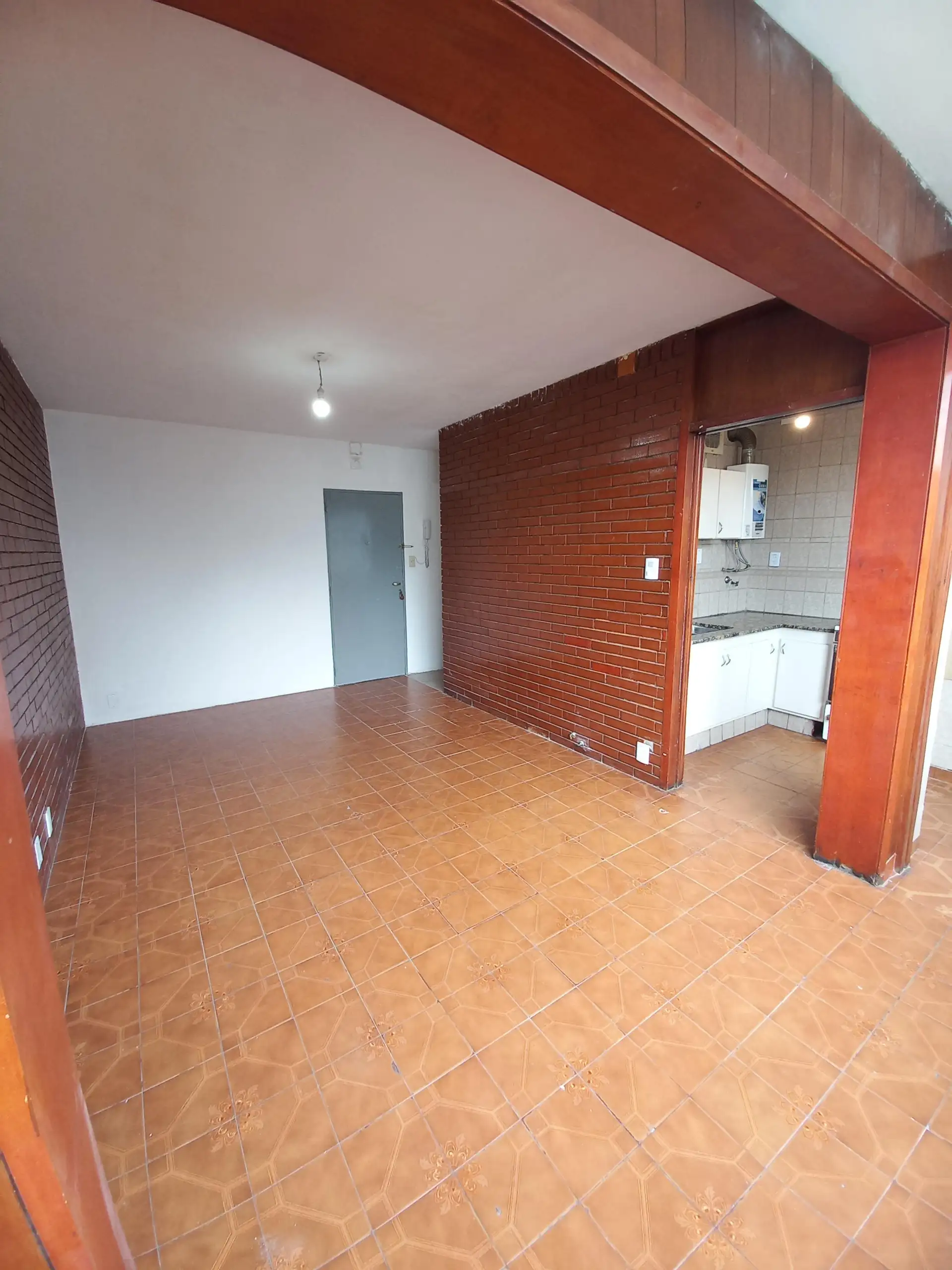 Departamento de 2 dormitorios con placards. Cuenta con living grande y baño completo. Incluye cocina con mesada, bajo mesada y alacena, además de cocina y calefón. El complejo tiene jardines y rejas perimetrales.
