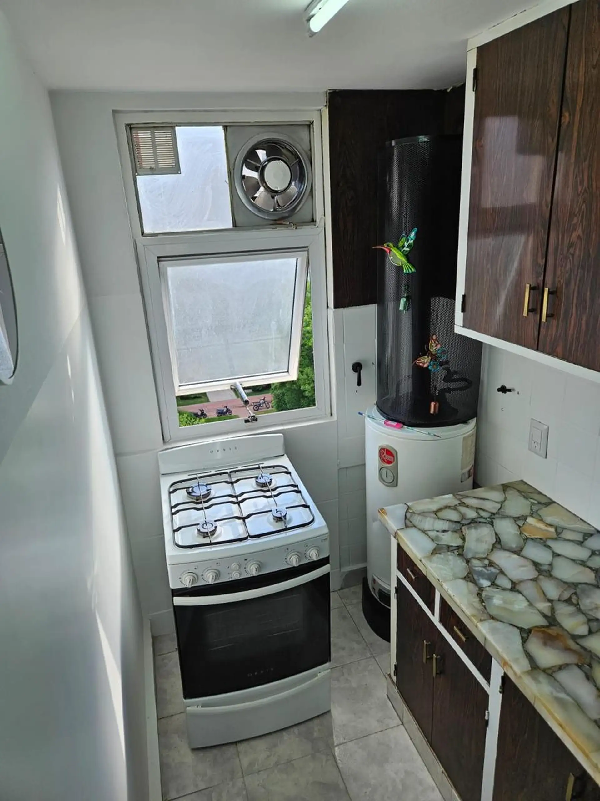 Departamento de 2 dormitorios de aproximadamente 56 m² cubiertos, en piso alto y con ascensor. Disposición contrafrente y orientación noreste, sobre calle Mozart entre Saraza y Pasaje de la Cruz. Cuenta con cocina equipada con muebles sobre y bajo mesada, living comedor, 2 dormitorios con placard empotrado y 1 baño completo.
