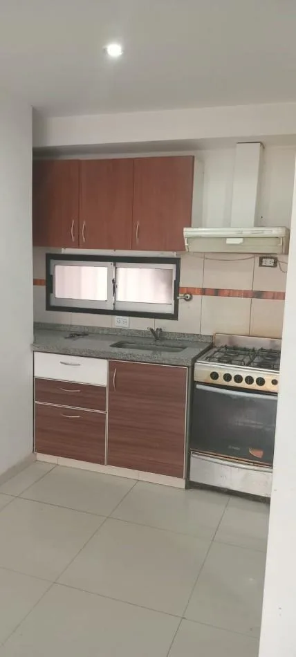 Departamento de 3 ambientes en el primer piso al frente, con balcón. Cuenta con cochera fija descubierta y baulera en subsuelo. Living comedor con cocina incorporada, baño completo, dormitorio en suite con baño y vestidor, lavadero separado y un segundo dormitorio de 3 x 2 con placard.