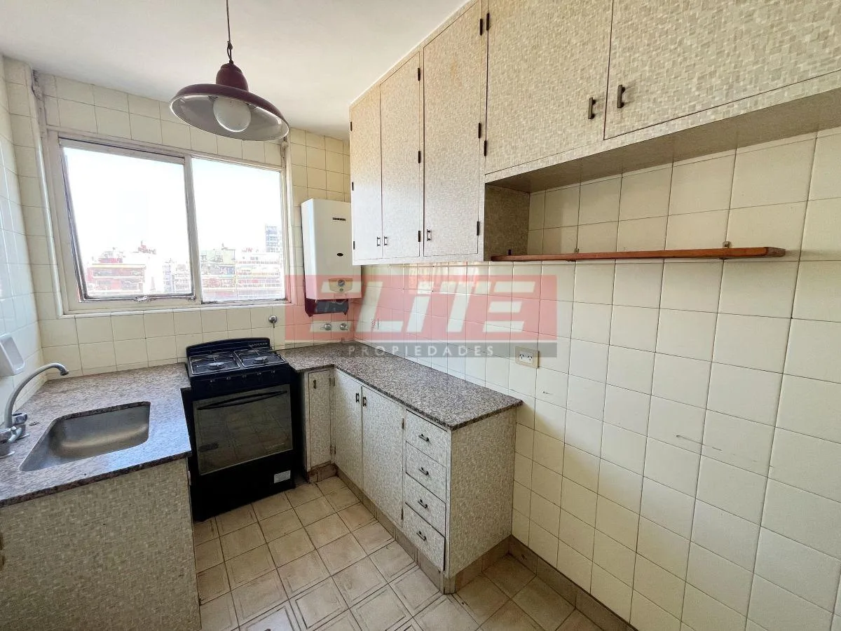 Departamento de 3 ambientes con 2 dormitorios, en piso alto. Tiene balcón aterrazado al contrafrente con cerramiento y vista abierta. Cocina separada con espacio comedor, living con acceso al balcón y baño completo. El contrato es por 24 meses, con aumentos trimestrales con indexación IPC y garantía en CABA.