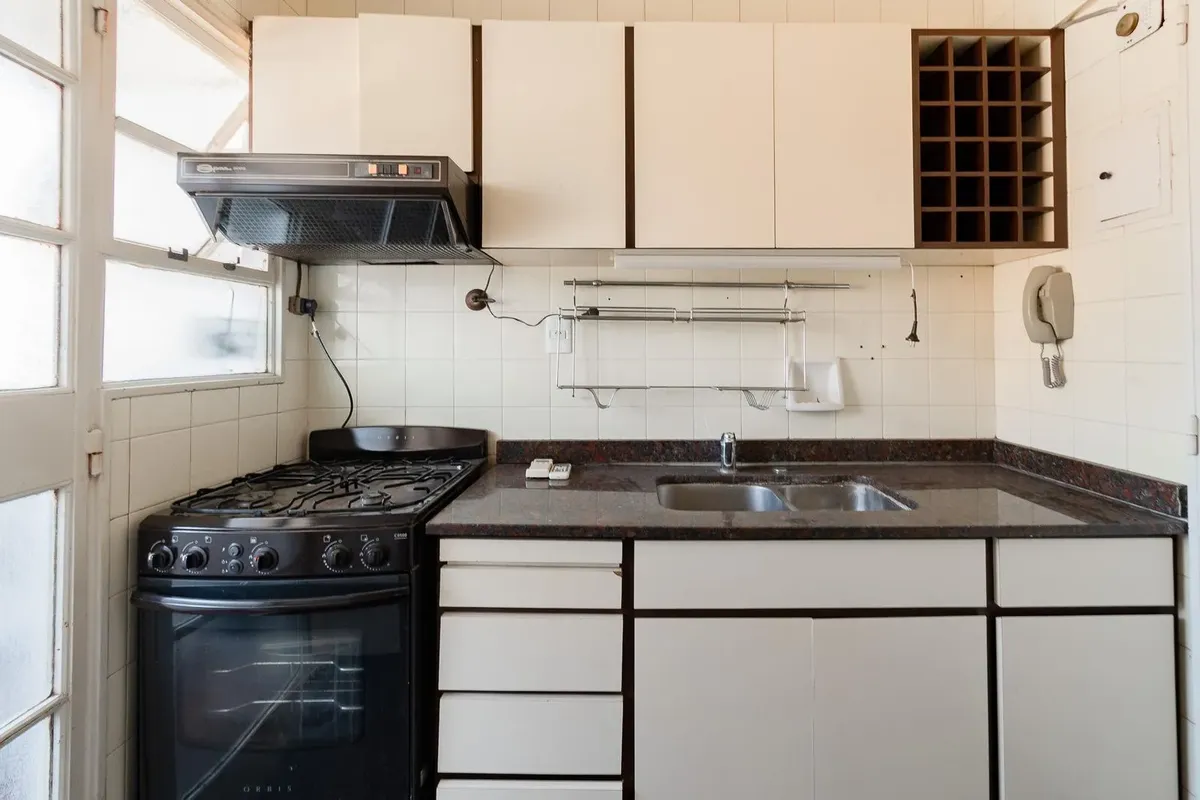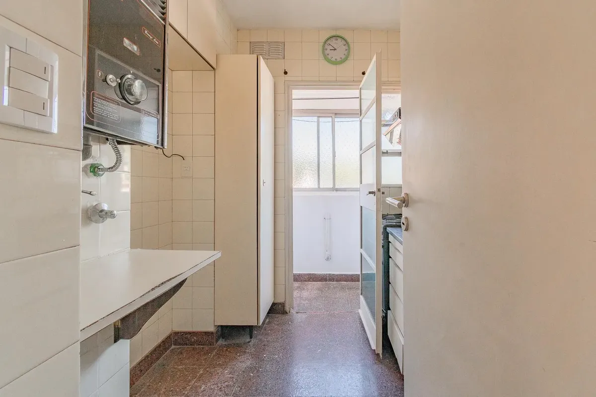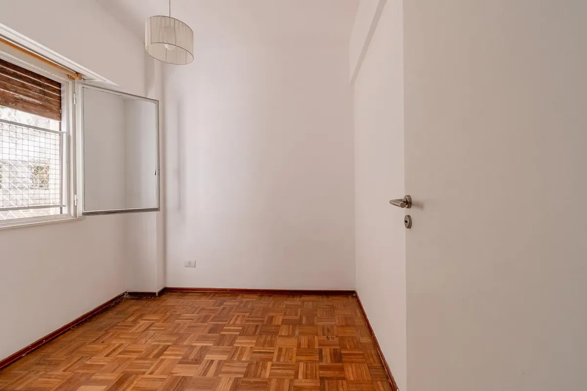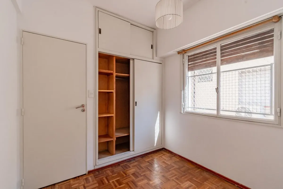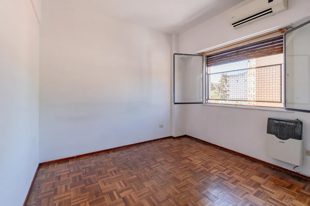 Departamento de 3 ambientes de 50 m² totales, al contrafrente, en el 4 piso. Cuenta con 2 dormitorios, 1 baño y piso de parquet; fue recién pintado. Living-comedor con aire acondicionado y salida a balcón con vista abierta, y ambientes con luminarias instaladas. Cocina independiente con horno a gas, spar y calefón; lavadero separado con conexión para lavarropas y bacha. Dormitorio principal con aire acondicionado, estufa a gas y placard, y segundo dormitorio con placard. El edificio es de 10 pis