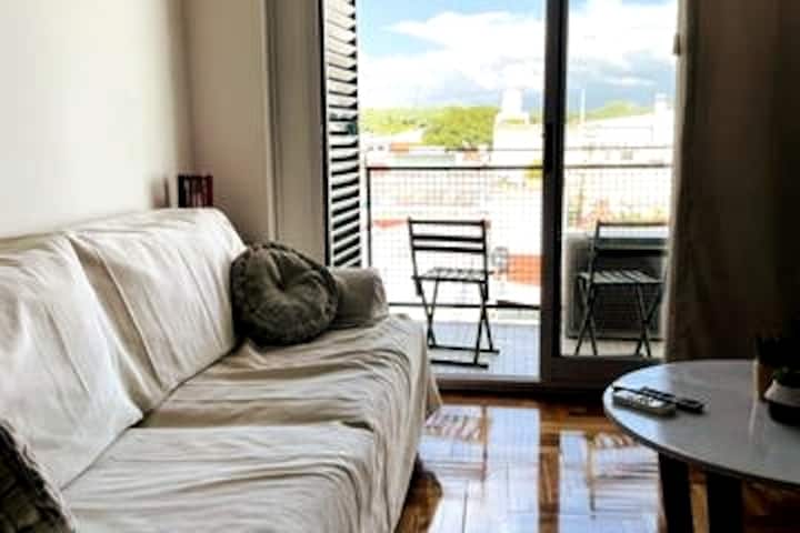 Departamento en Villa Ortúzar con 2 dormitorios y balcón. Está totalmente equipado y admite hasta 4 personas. A 100 metros de la estación Tronador del subte y a 100 metros de Jumbo Hypermarket, con acceso a avenidas como Av. Triunvirato y Av. de los Constituyentes.