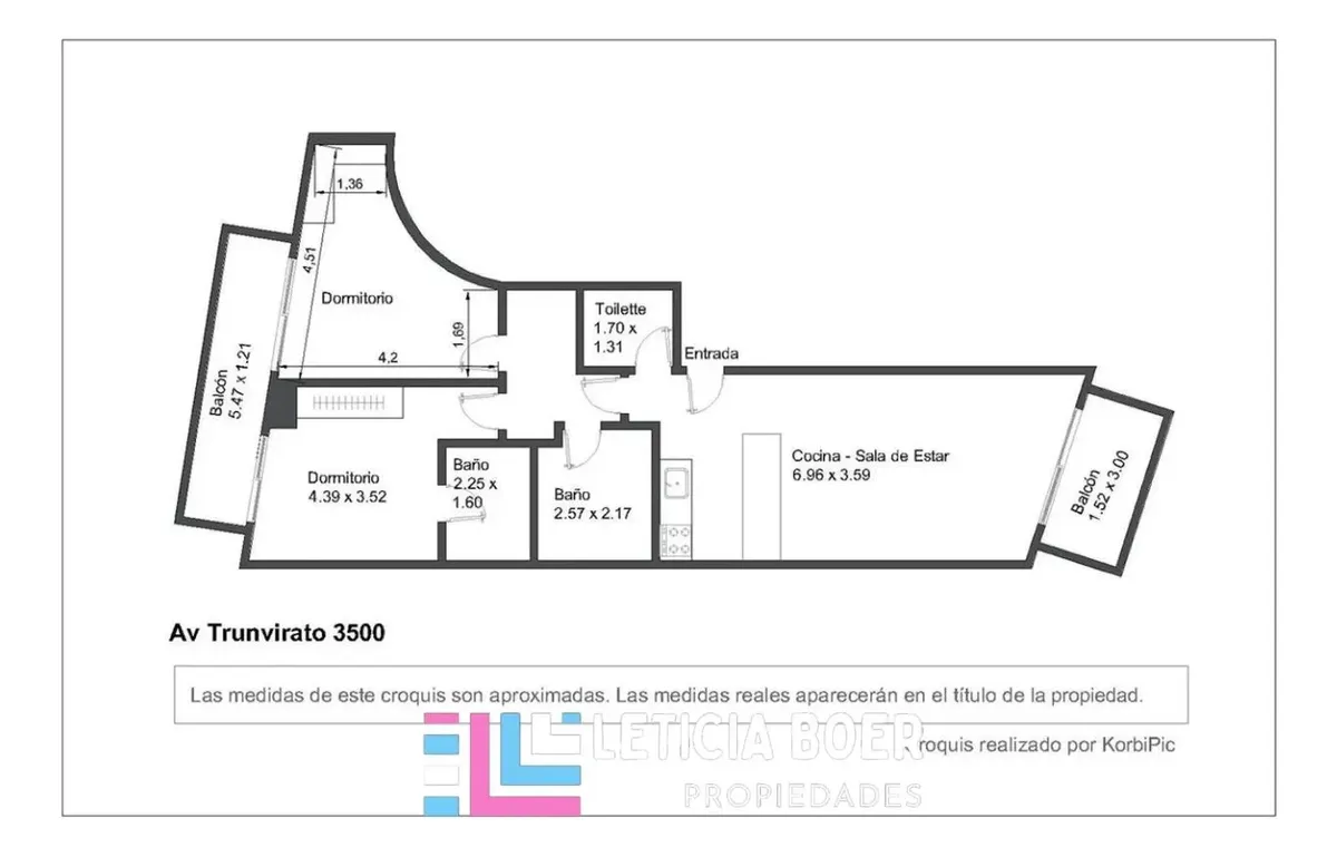 Departamento de 3 ambientes en Villa Ortúzar. Cuenta con living comedor con cocina americana y acceso a balcón principal, toilette y baño completo con conexión para lavarropas. Tiene dormitorio principal en suite con acceso a segundo balcón corrido al contrafrente y segundo dormitorio con acceso a balcón corrido al contrafrente, además de cochera semicubierta. Se entrega vacío. Expensas y superficies informadas como aproximadas, según corresponda al título y al recibo de administración.
