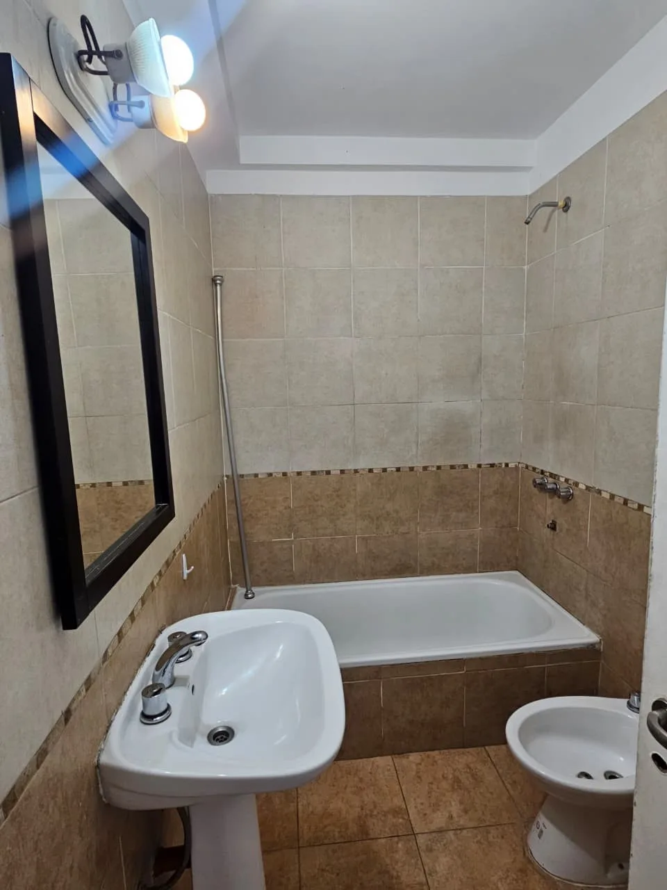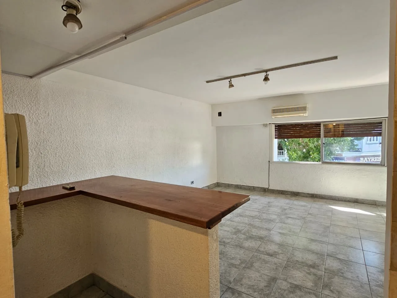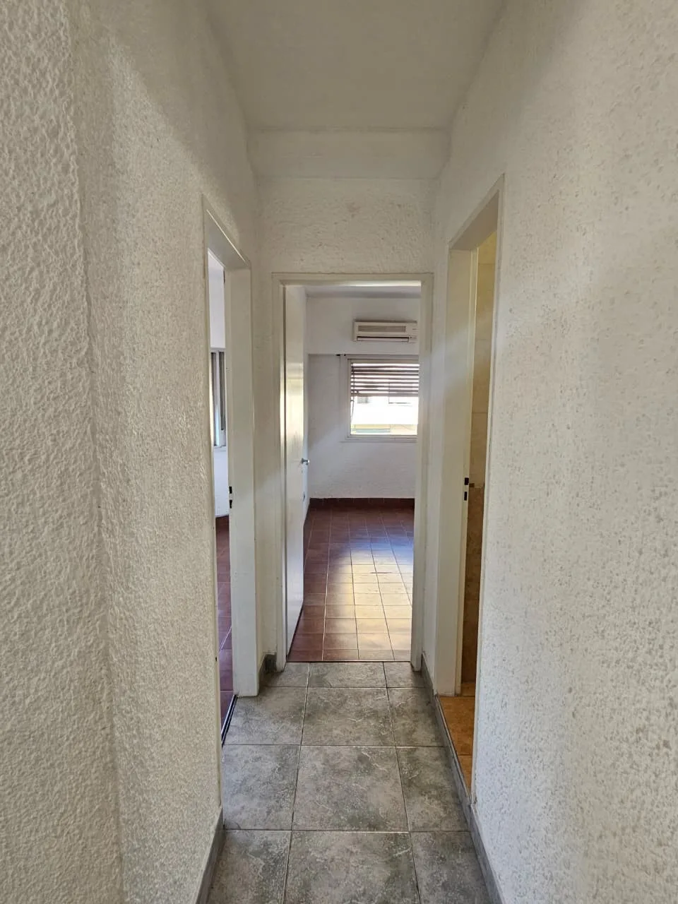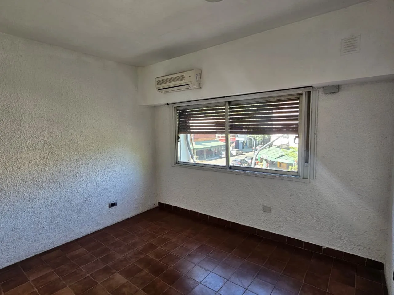 Departamento de 3 ambientes en un 1° piso por escalera, todo al frente, con baño completo y toilette. Tiene living-comedor con aire acondicionado frío/calor y ventanal a la calle; cocina semi integrada con barra desayunadora, muebles bajo mesada y alacenas, artefacto de cocina y termotanque eléctrico, con conexión para lavarropas. Cuenta con 2 dormitorios con placard (uno de 3.30 x 3.20 con aire acondicionado frío/calor y otro que da a la ochava), baño con bañera; todas las ventanas dan al frent