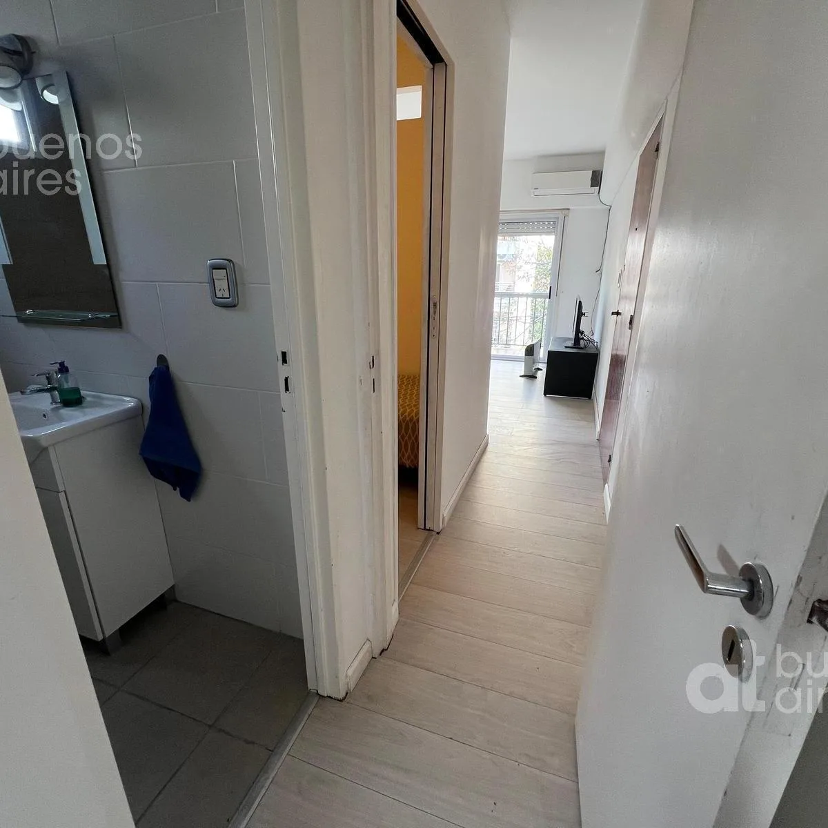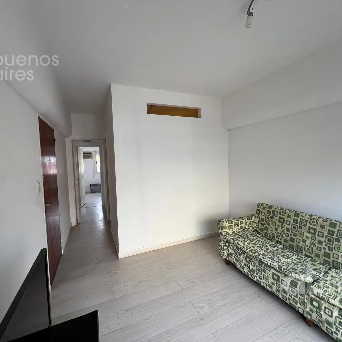 Departamento de 3 ambientes con 2 dormitorios, 2do piso por escalera, con balcón al frente. Se entrega totalmente amoblado y equipado: aire acondicionado en la sala y en el dormitorio principal, sala de estar con sillón y Smart TV, cocina con comedor diario, horno a gas, heladera con freezer, un horno eléctrico y vajilla completa. Incluye lavarropas y baño completo. Valor publicado: expensas, luz, gas, ABL e internet a cargo del inquilino. Disponible a partir del 04/06/2026; estación Pueyrredón