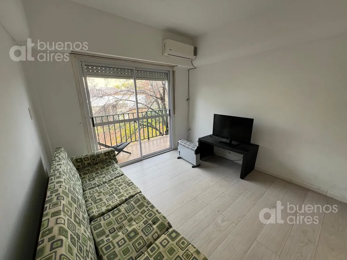 Departamento de 3 ambientes con balcón al frente, en Villa Pueyrredón. 2 dormitorios, ubicado en 2do piso por escalera, con unidad totalmente amoblada y equipada. Incluye sala de estar con aire acondicionado y Smart TV, cocina con horno a gas, heladera con freezer y lavarropas; dormitorio principal con cama doble y aire acondicionado (ventana al contrafrente) y segundo dormitorio con cama individual. Baño completo. El valor publicado incluye expensas; la luz, el gas, ABL e internet están a cargo