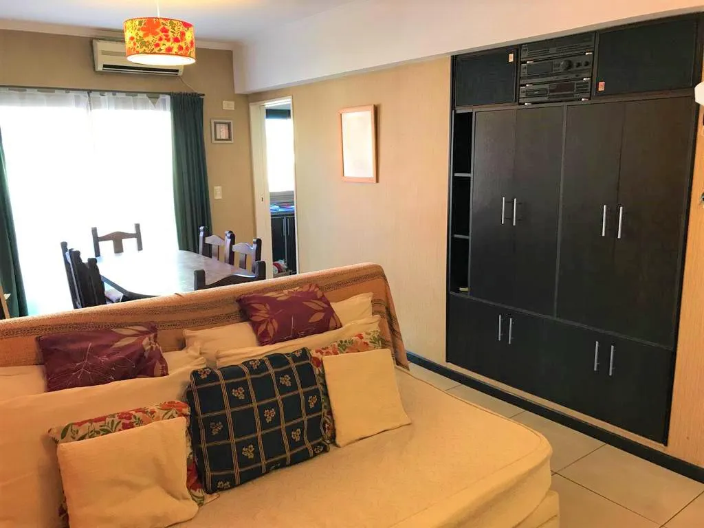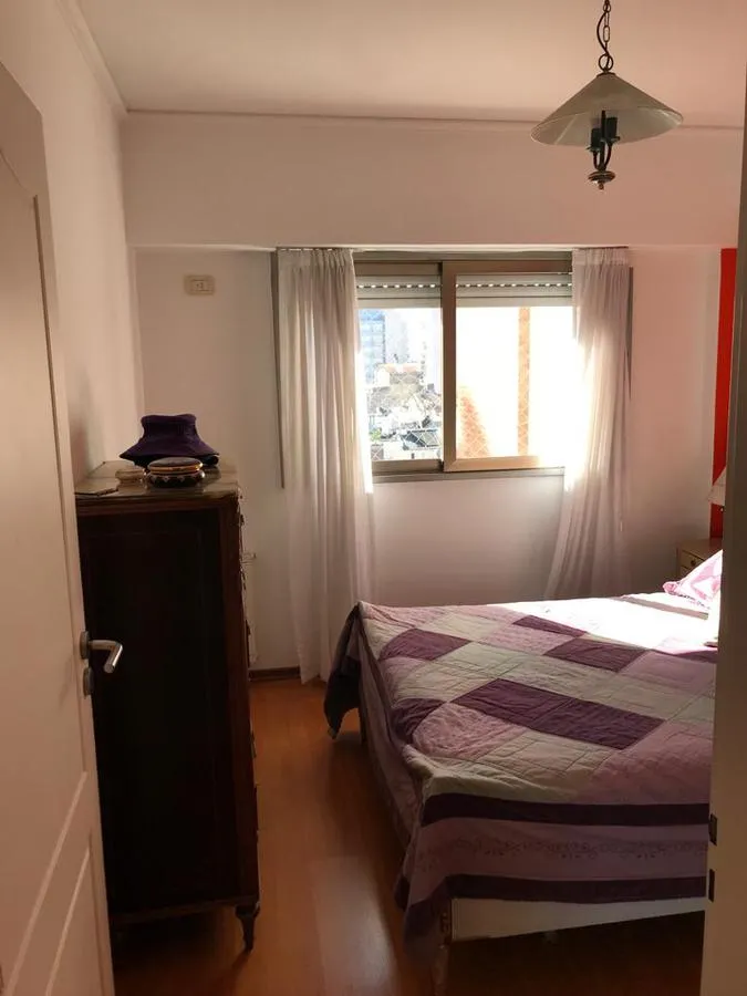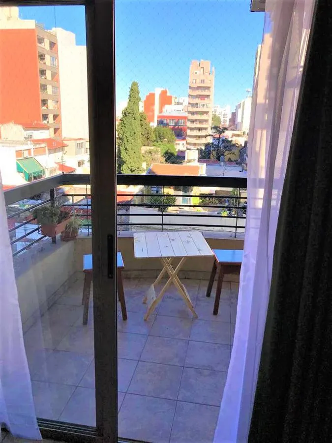 Departamento de 3 ambientes amoblado y equipado, piso 4, frente con balcón. Cocina a gas con caldera individual para agua caliente y calefacción por radiadores; aire acondicionado en living comedor de 7 x 3 con salida al balcón. Cuenta con 2 dormitorios con camas (2 plazas y 1 plaza), placards, baño principal con bañera y toilette. El inquilino paga aparte luz, cable y gas. El edificio tiene SUM en el último piso con parrilla y balcón aterrazado.