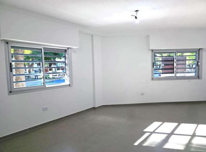 Departamento de 3 ambientes a estrenar en planta baja al frente, con entrada propia. Cuenta con living comedor con ventanas al frente, cocina separada totalmente equipada con alacenas, bajo mesada y ventana al frente, 2 dormitorios con placards empotrados a medida y baño completo. Incluye patio de 3.40 x 2.90 m con lavadero. Se publicita con solo uso profesional.