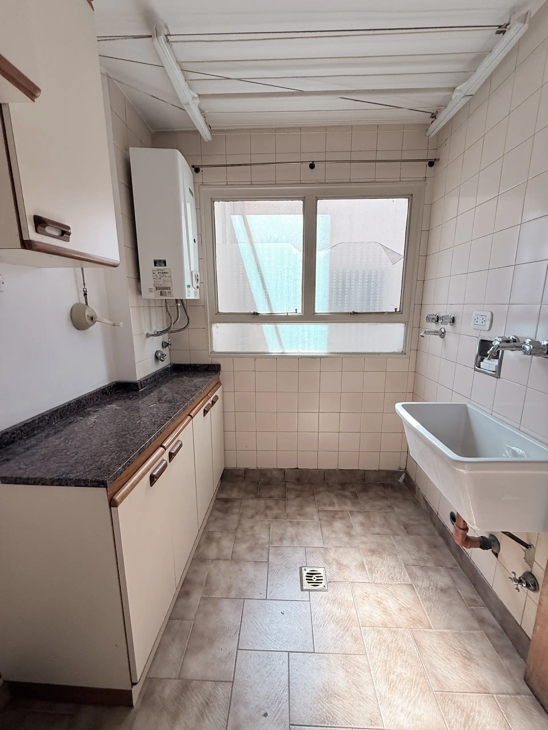 Departamento de 3 ambientes con dependencia de servicio, al frente, con balcón corrido. Cuenta con 95 m² totales, 1 baño completo y 2 toilettes, cocina-comedor diario y amplio living-comedor, además de placares. Cochera fija y cubierta, con lavadero separado. El precio incluye expensas. No aceptan mascotas. Se alquila con garantía propietaria de Capital Federal.