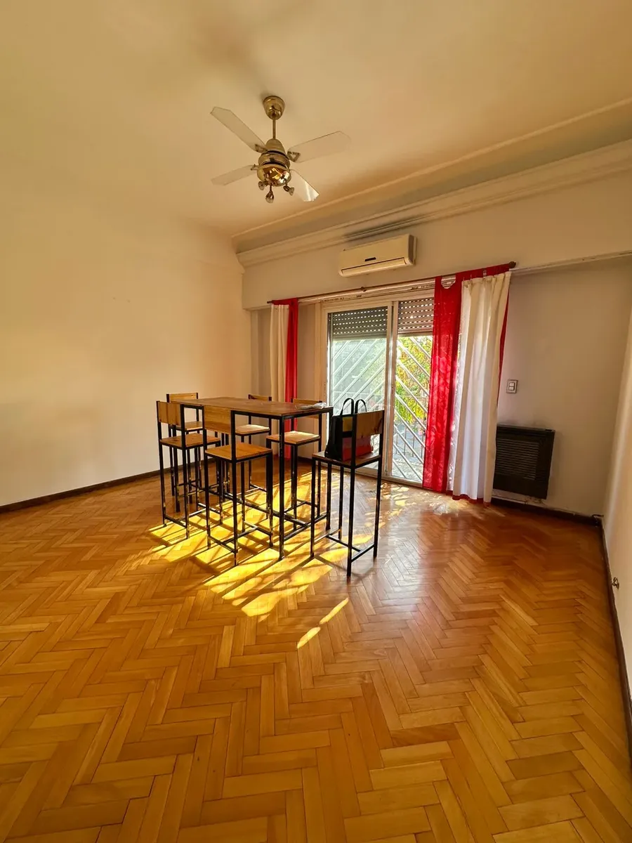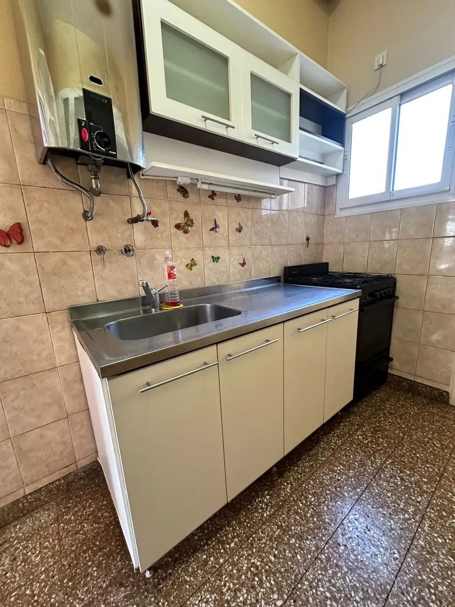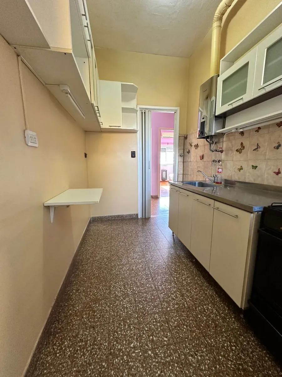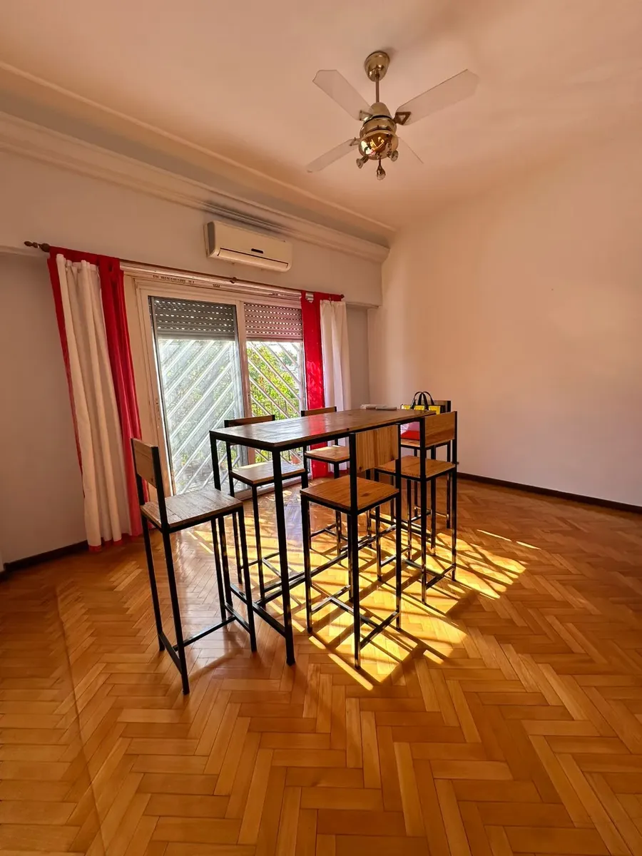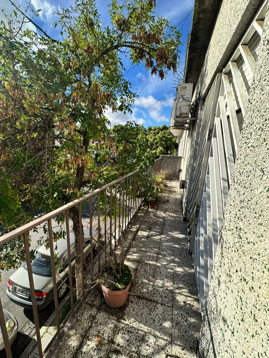 PH de 3 ambientes con 70 m² cubiertos, al frente, en primer piso por escalera. Incluye balcón corrido y 2 aire acondicionado. Cocina con mobiliario completo, lavadero independiente, 2 dormitorios con placard en uno, y 1 baño completo. Desde una escalera común se accede a una terraza independiente de aproximadamente 60 m²; total aproximado 130 m².
