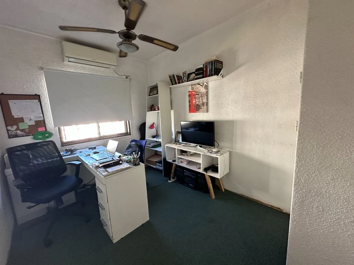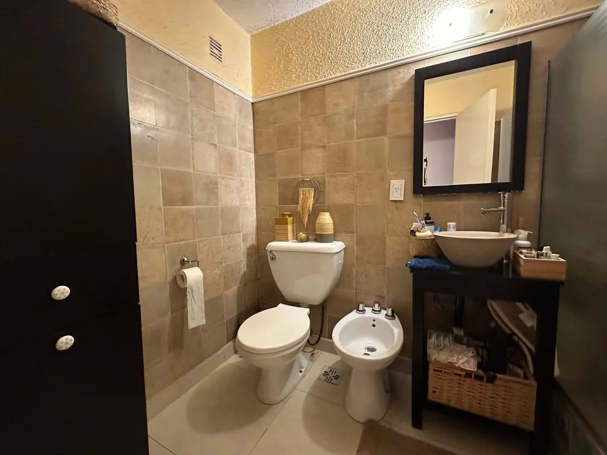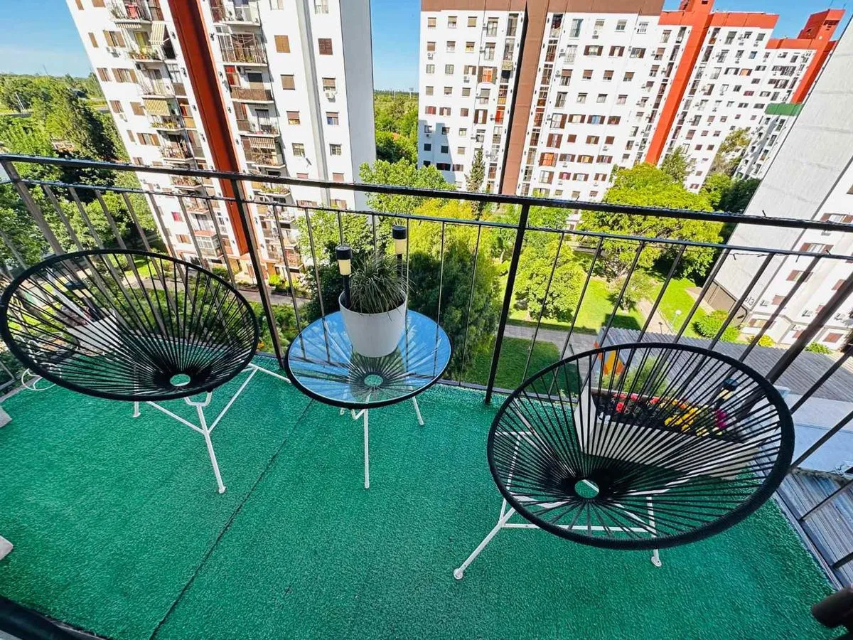 Four-room apartment for rent in Wilde, in the Las Torres complex. It has 3 bedrooms, 1 full bathroom, a living-dining room, and a separate laundry area with space for a washing machine. The kitchen includes under- and overhead cabinets. The unit is courtyard-facing (contrafrente) with morning sun, and has 66.32 m² total area; it includes an (assigned) parking space. The gated community has 24-hour security with a patrol system and a three-storey commercial centre with more than 250 outlets.