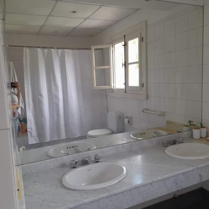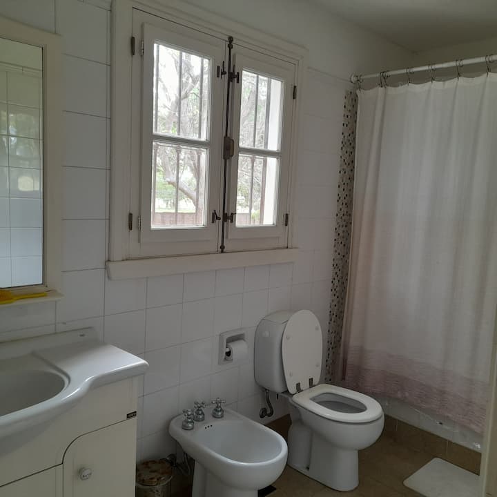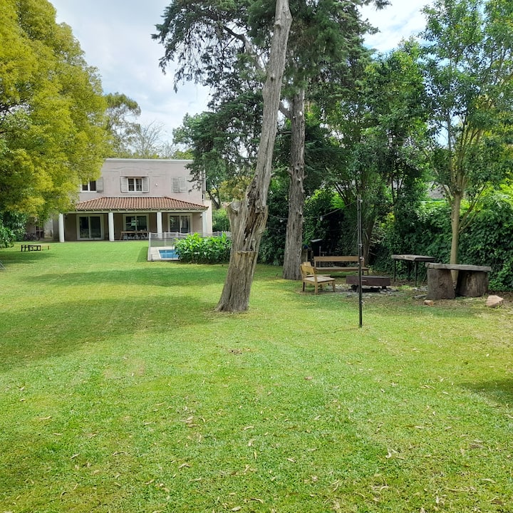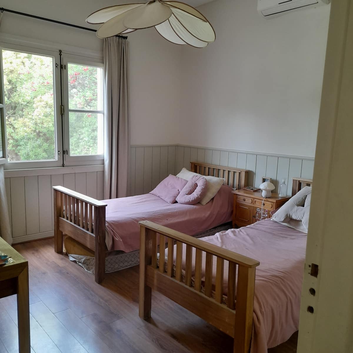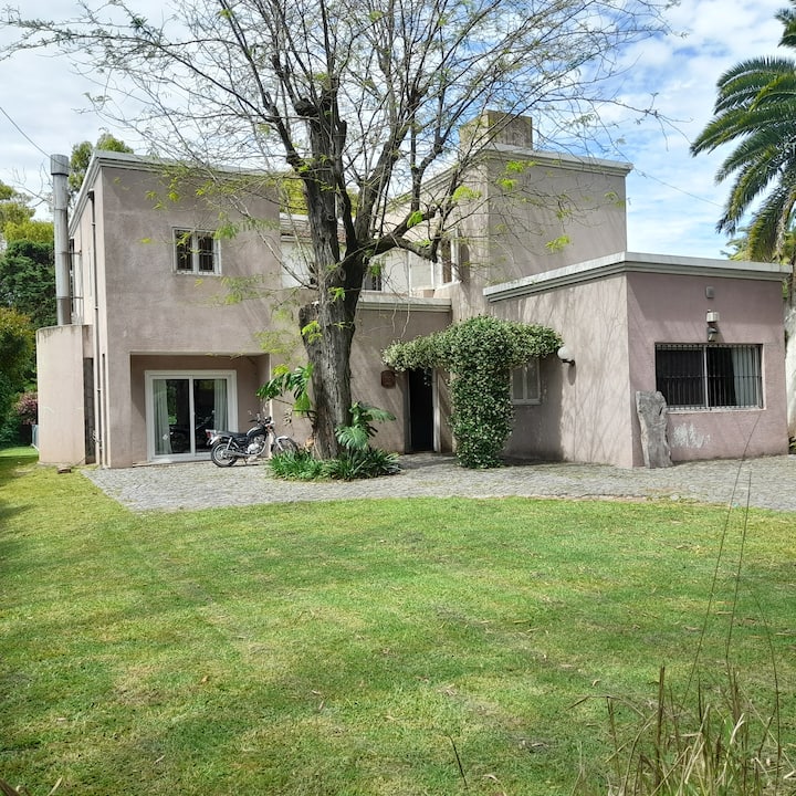 No hay datos sobre m², piso, orientación ni estado de amoblado. La publicación describe una casa con ingreso por el frente para varios autos, zona de cocina con horno, parrilla y galería con mesa para 10. También menciona pileta, trampolín, arco de fútbol y, además, un sector de lavadero que podría acondicionarse, así como una habitación con cuna que puede funcionar como cuna o cama.