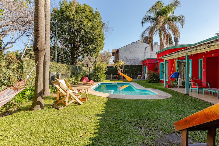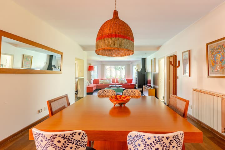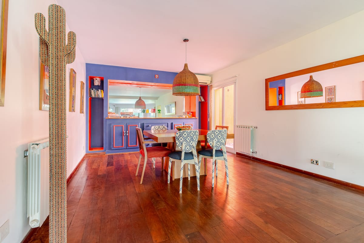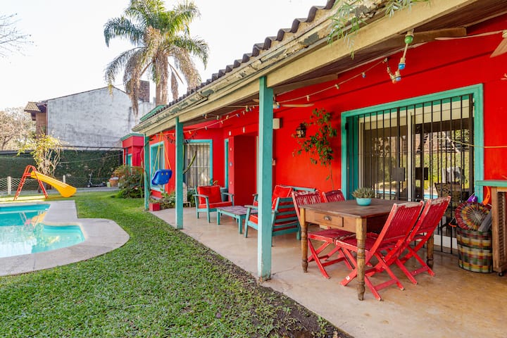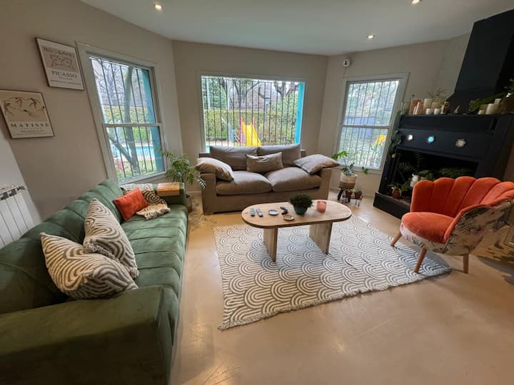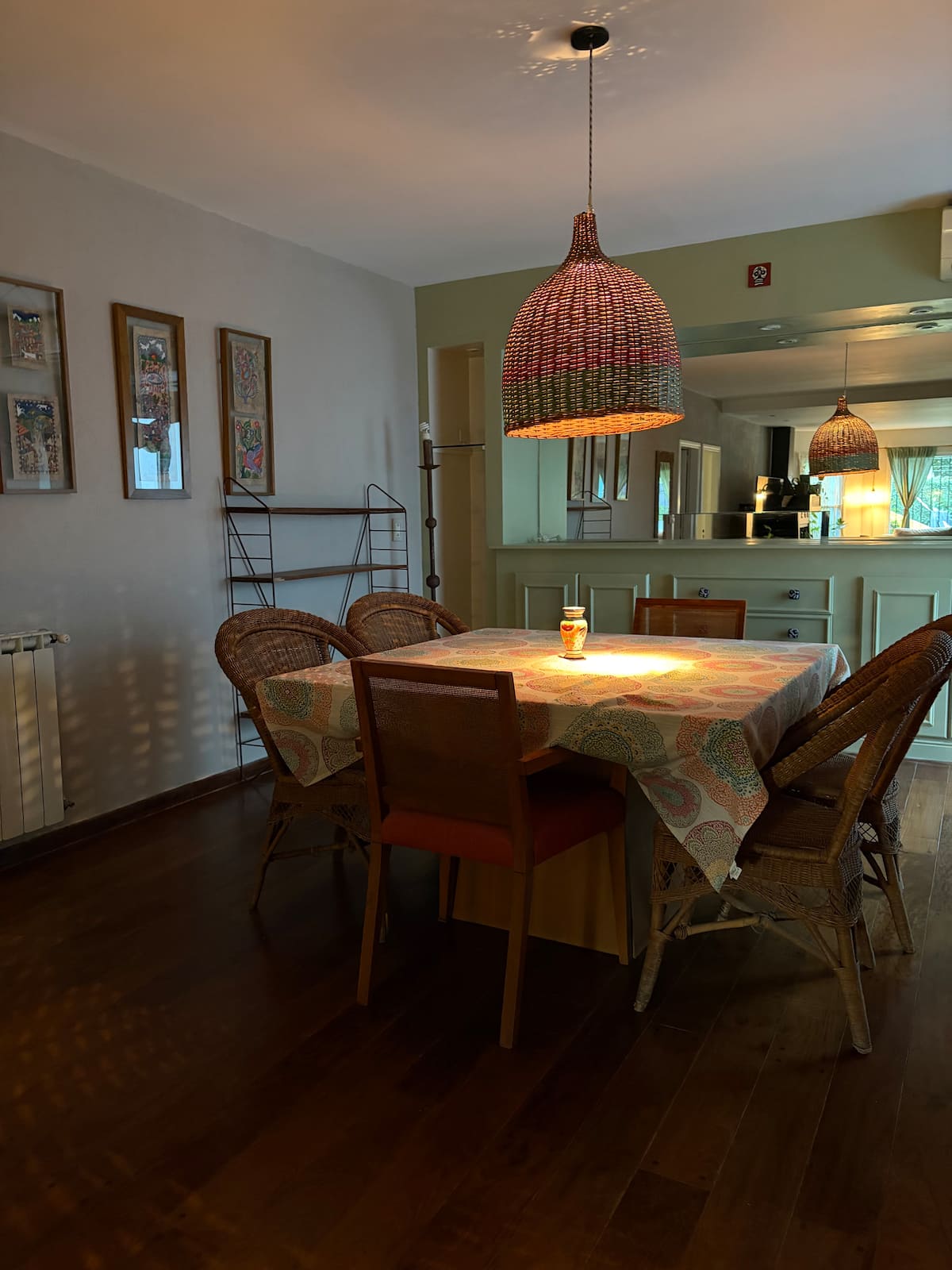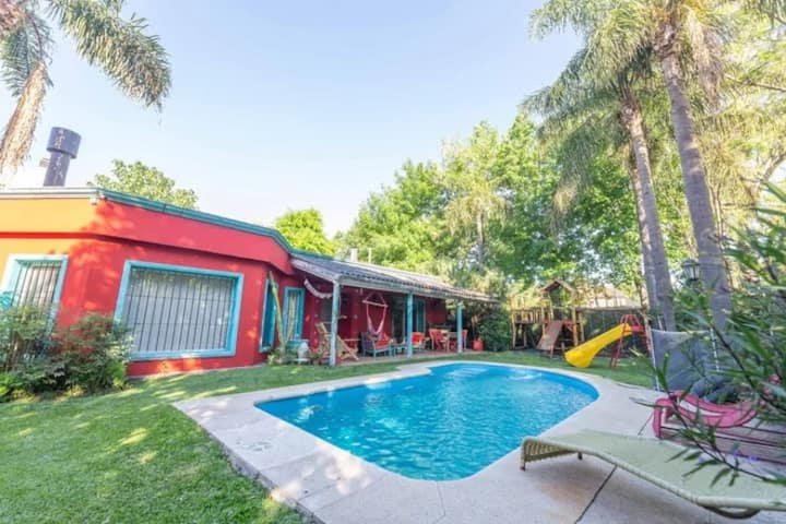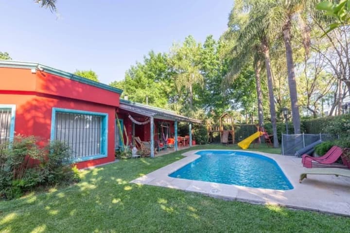 Casa con 3 dormitorios en La Horqueta. Cuenta con living con chimenea a leña y ventanales con vista al jardín, comedor y cocina equipada con isla y salida a un patio interno cubierto. El dormitorio principal tiene suite, vestidor, baño con bañera y cabina de ducha; hay otros 2 dormitorios y un baño completo. Todas las habitaciones tienen aire acondicionado. En el exterior dispone de balcón, jardín, pileta y parrilla; la cochera no está especificada. Se aclara que el jacuzzi del baño principal no