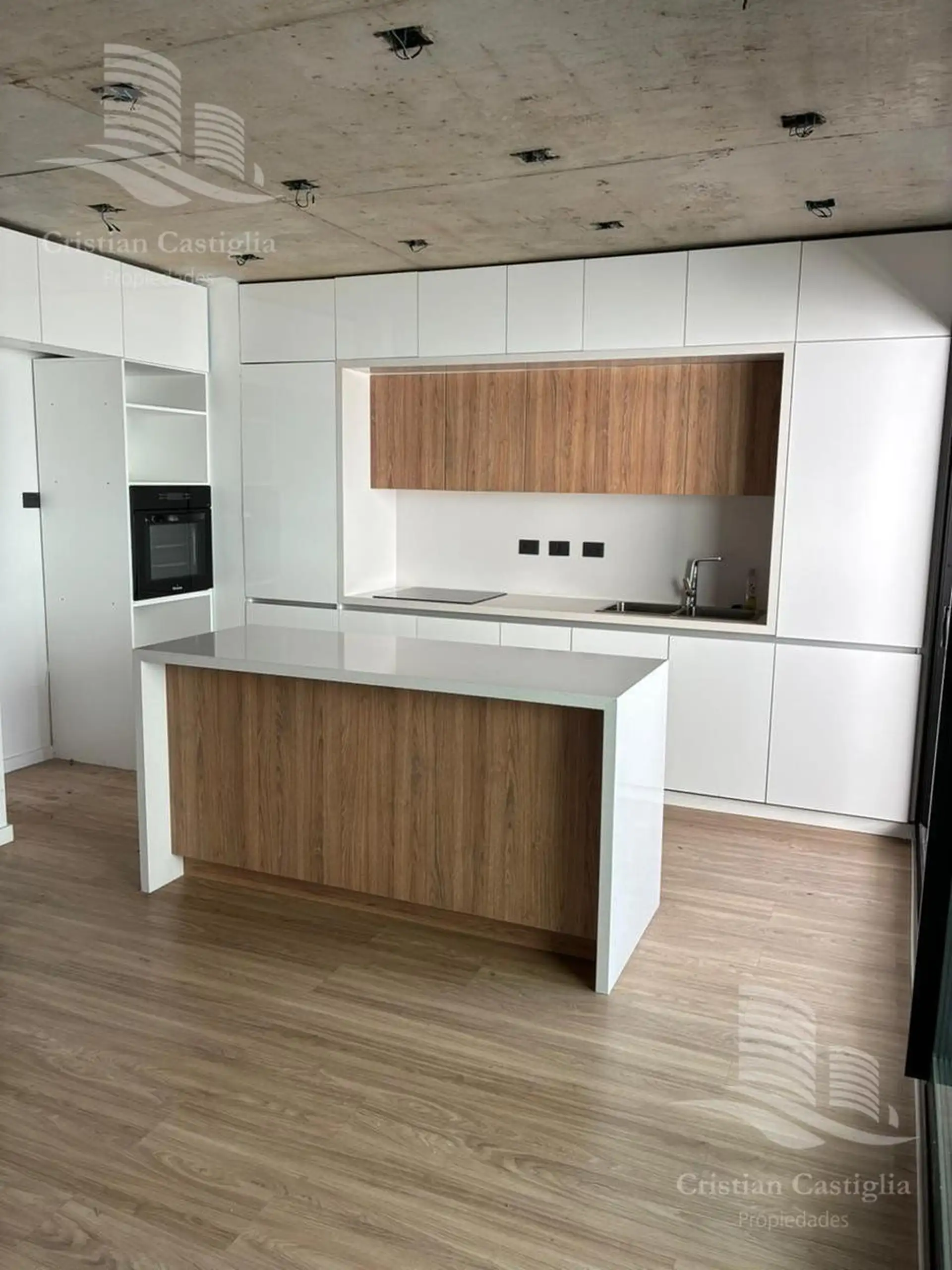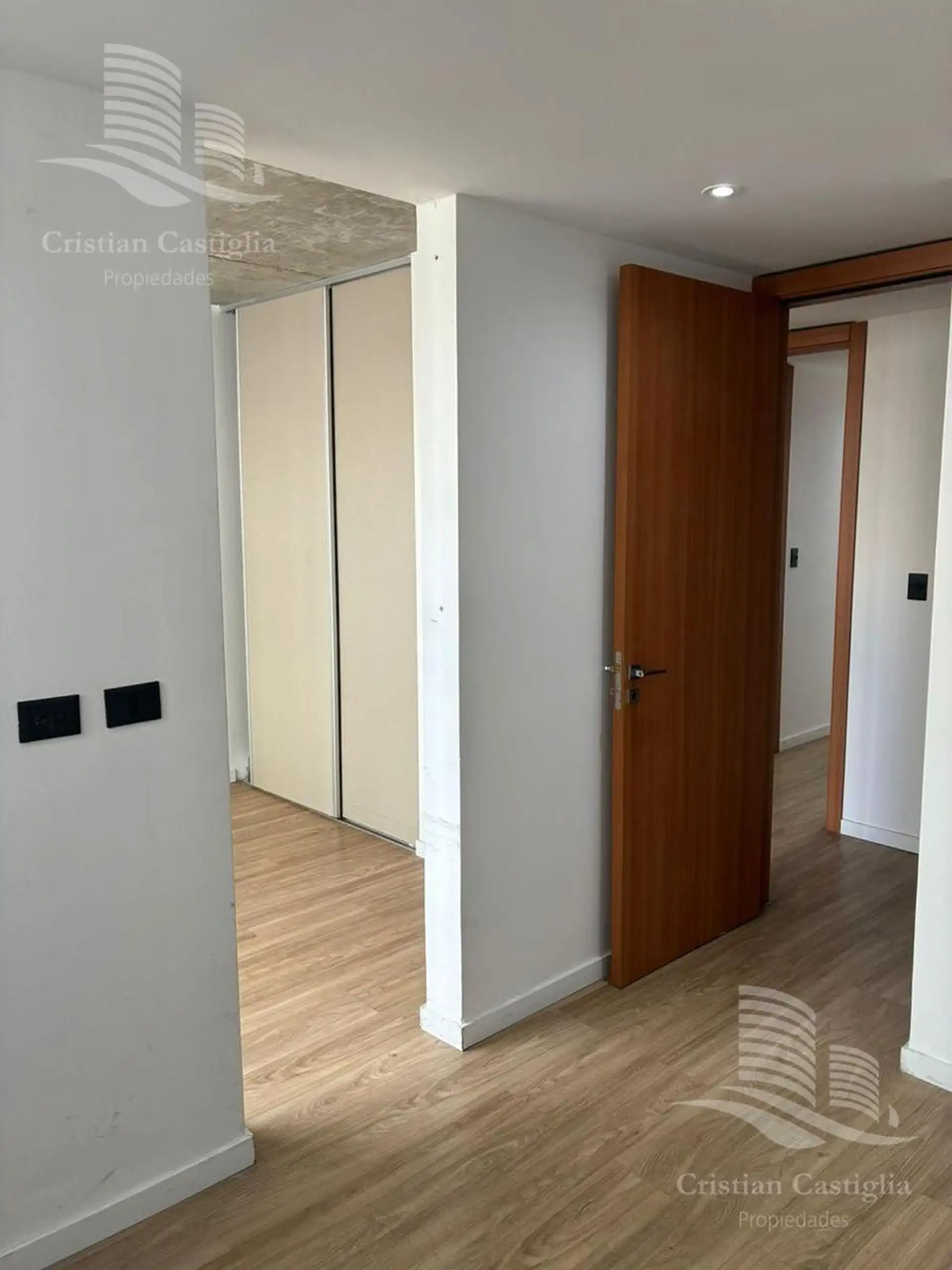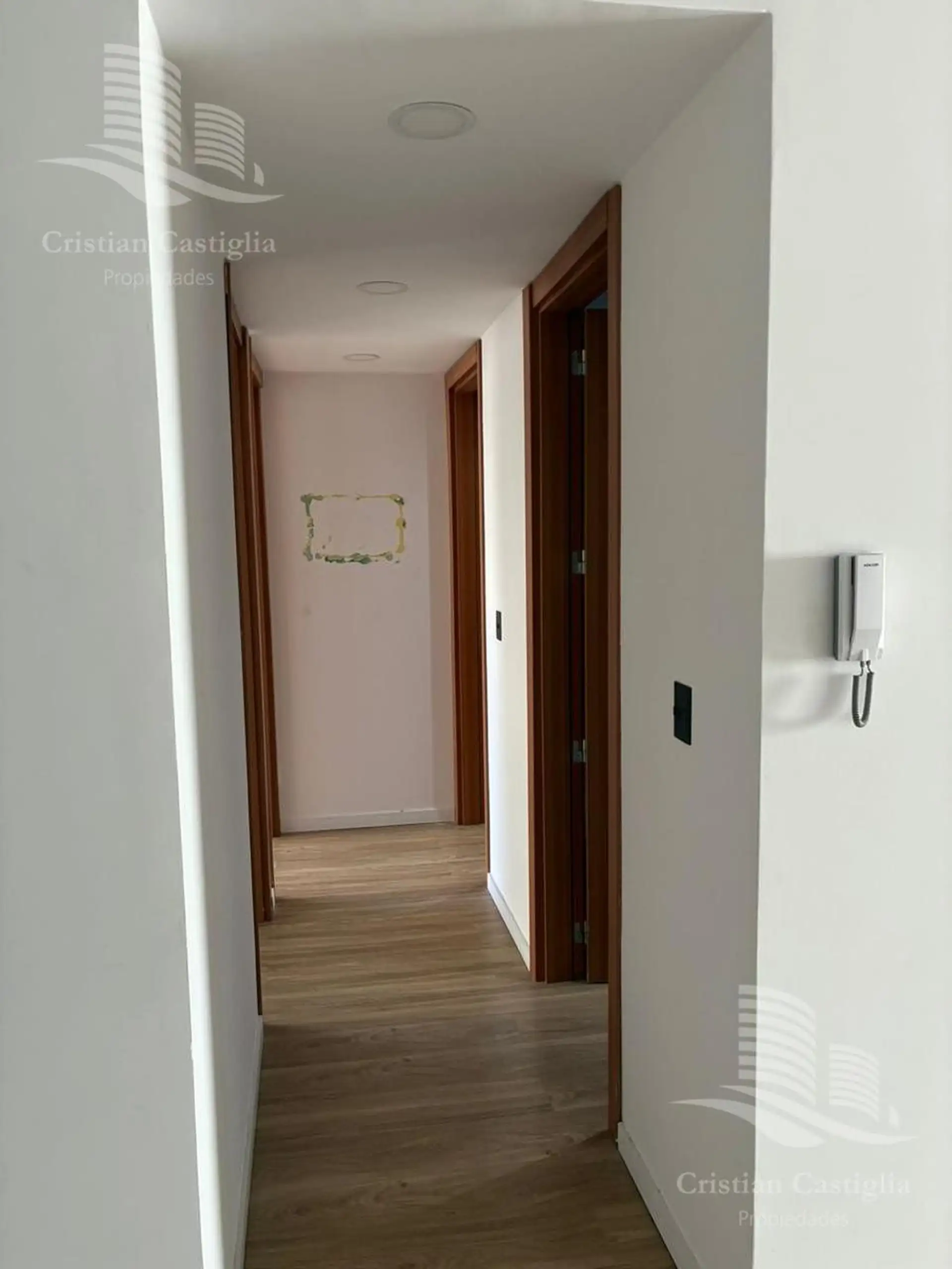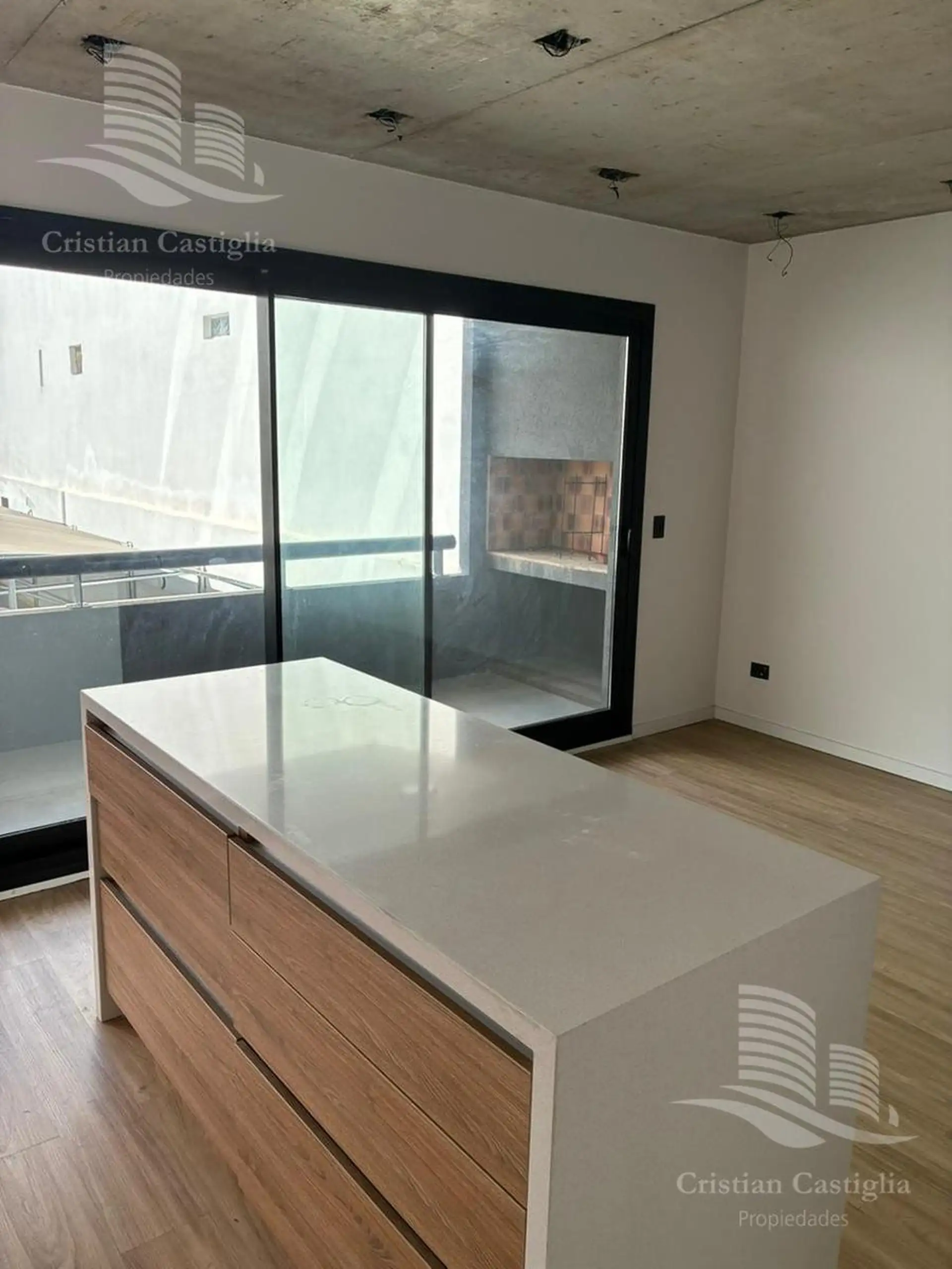 Departamento de 4 ambientes en alquiler en Liniers. La unidad tiene 3 dormitorios originalmente, pero fue adaptada para funcionar como 2 dormitorios de amplias dimensiones, con posibilidad de volver a dividir para recuperar el tercer dormitorio. Cuenta con living comedor con salida a balcón, cocina integrada con isla central equipada con horno y anafe eléctricos, muebles bajo mesada y alacena, y lavadero con parrilla en el balcón. El dormitorio principal es en suite con vestidor; el segundo dorm