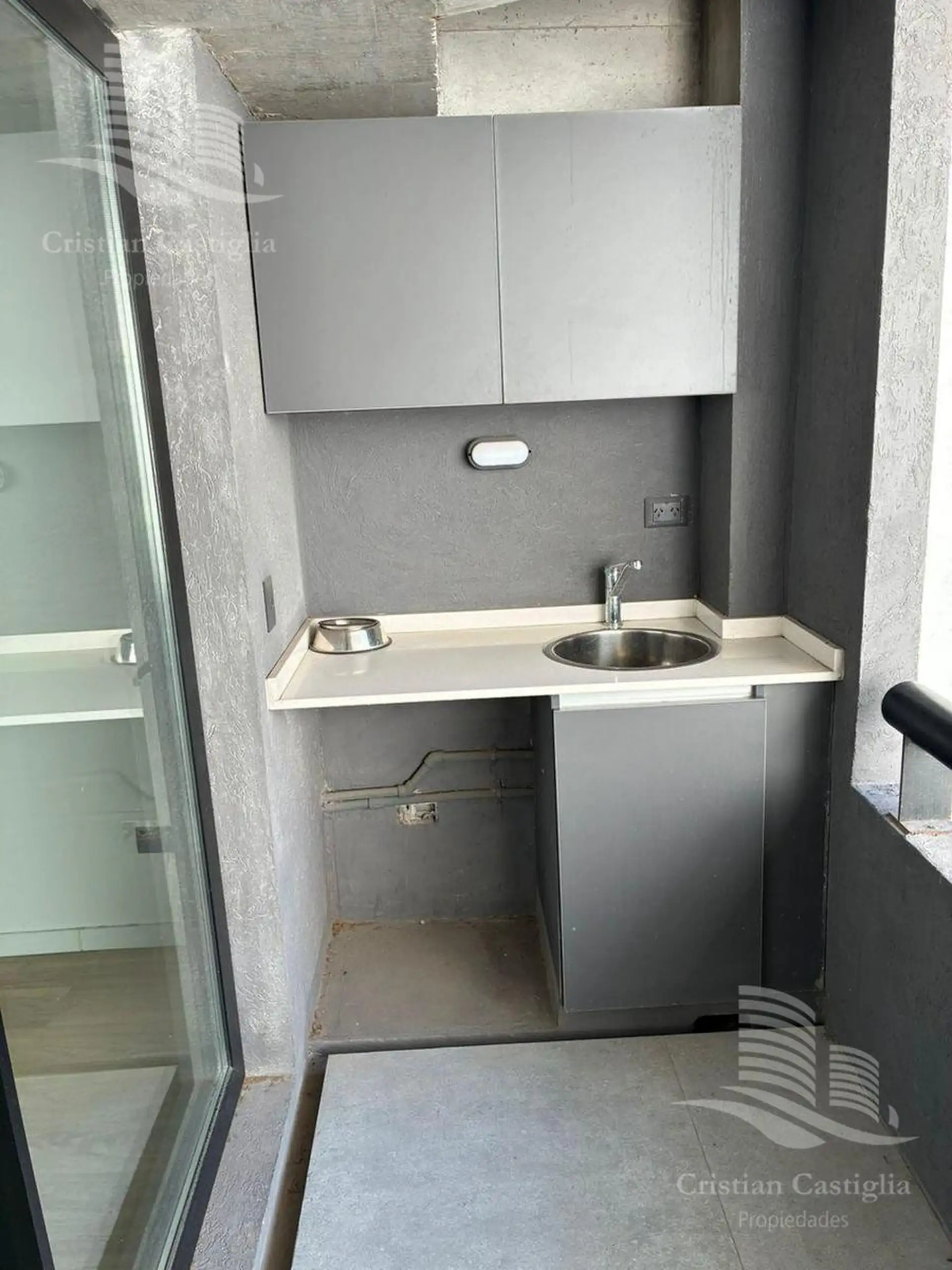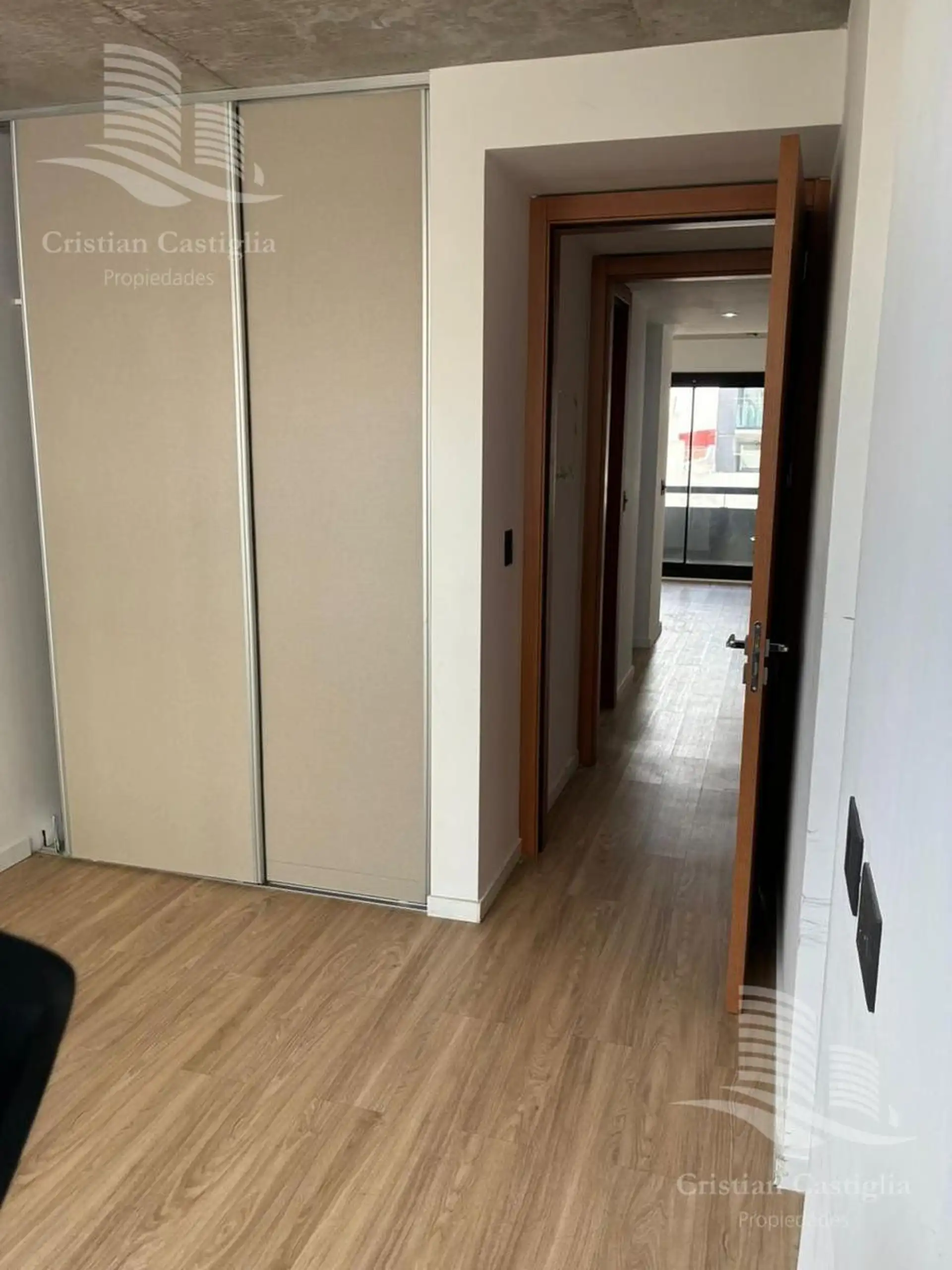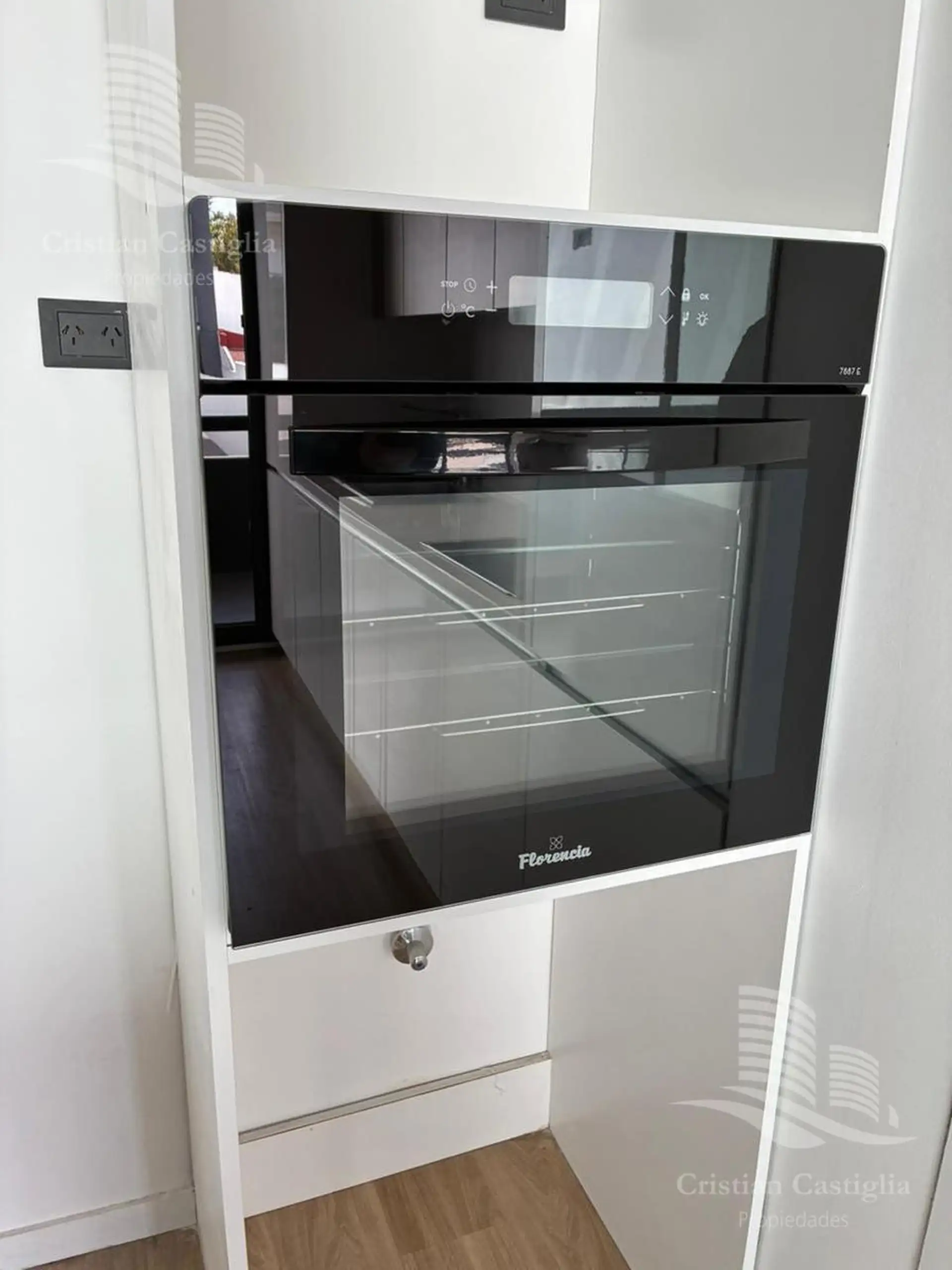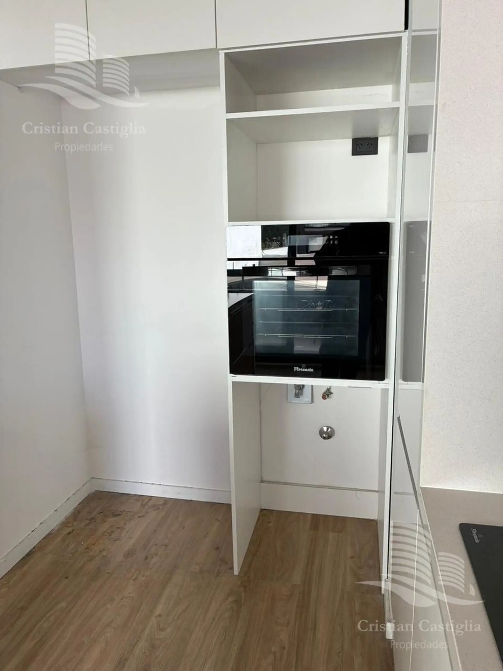 Departamento de 4 ambientes en alquiler en Liniers. La unidad tiene 3 dormitorios originalmente, pero fue adaptada para funcionar como 2 dormitorios de amplias dimensiones, con posibilidad de volver a dividir para recuperar el tercer dormitorio. Cuenta con living comedor con salida a balcón, cocina integrada con isla central equipada con horno y anafe eléctricos, muebles bajo mesada y alacena, y lavadero con parrilla en el balcón. El dormitorio principal es en suite con vestidor; el segundo dorm
