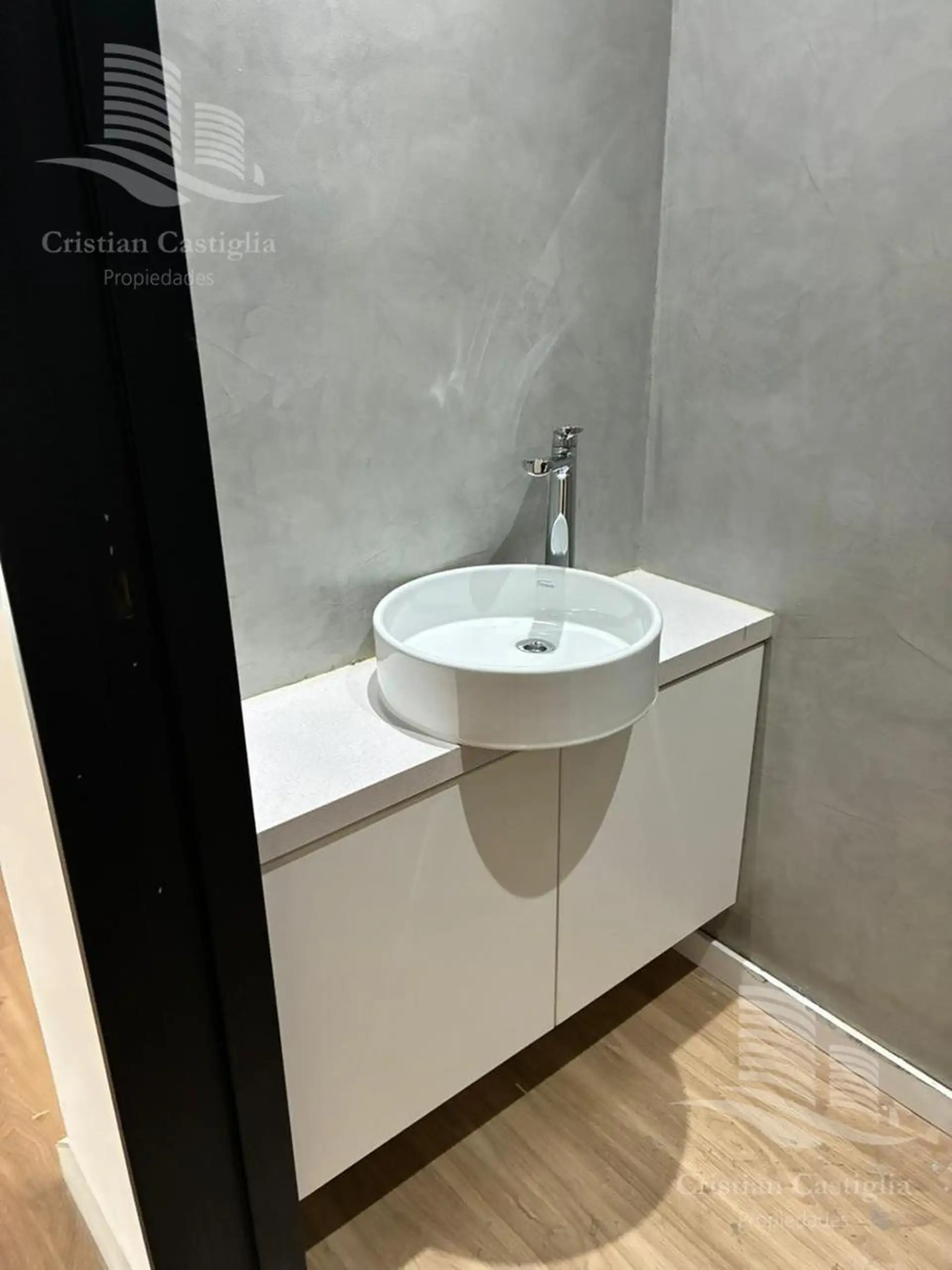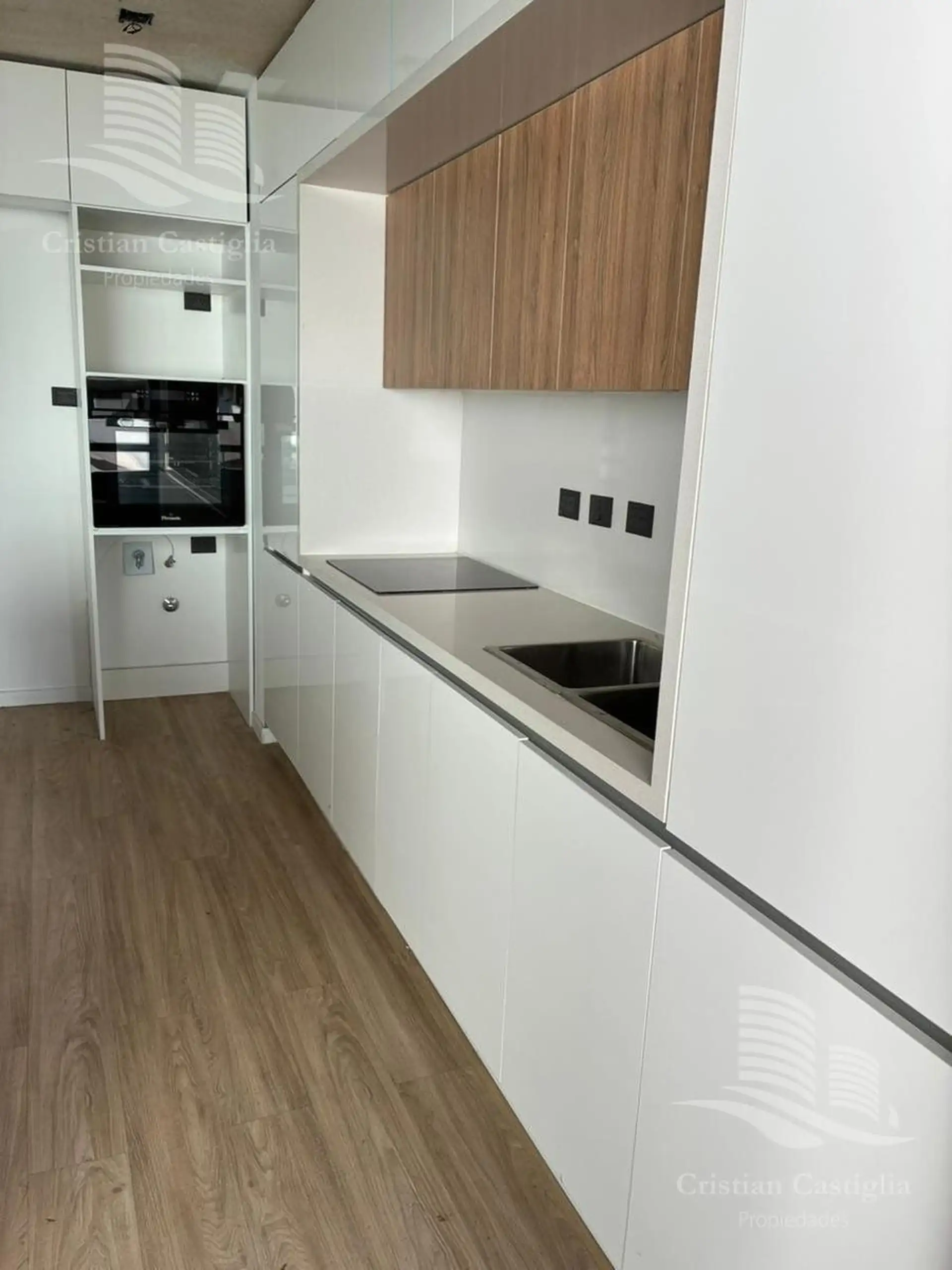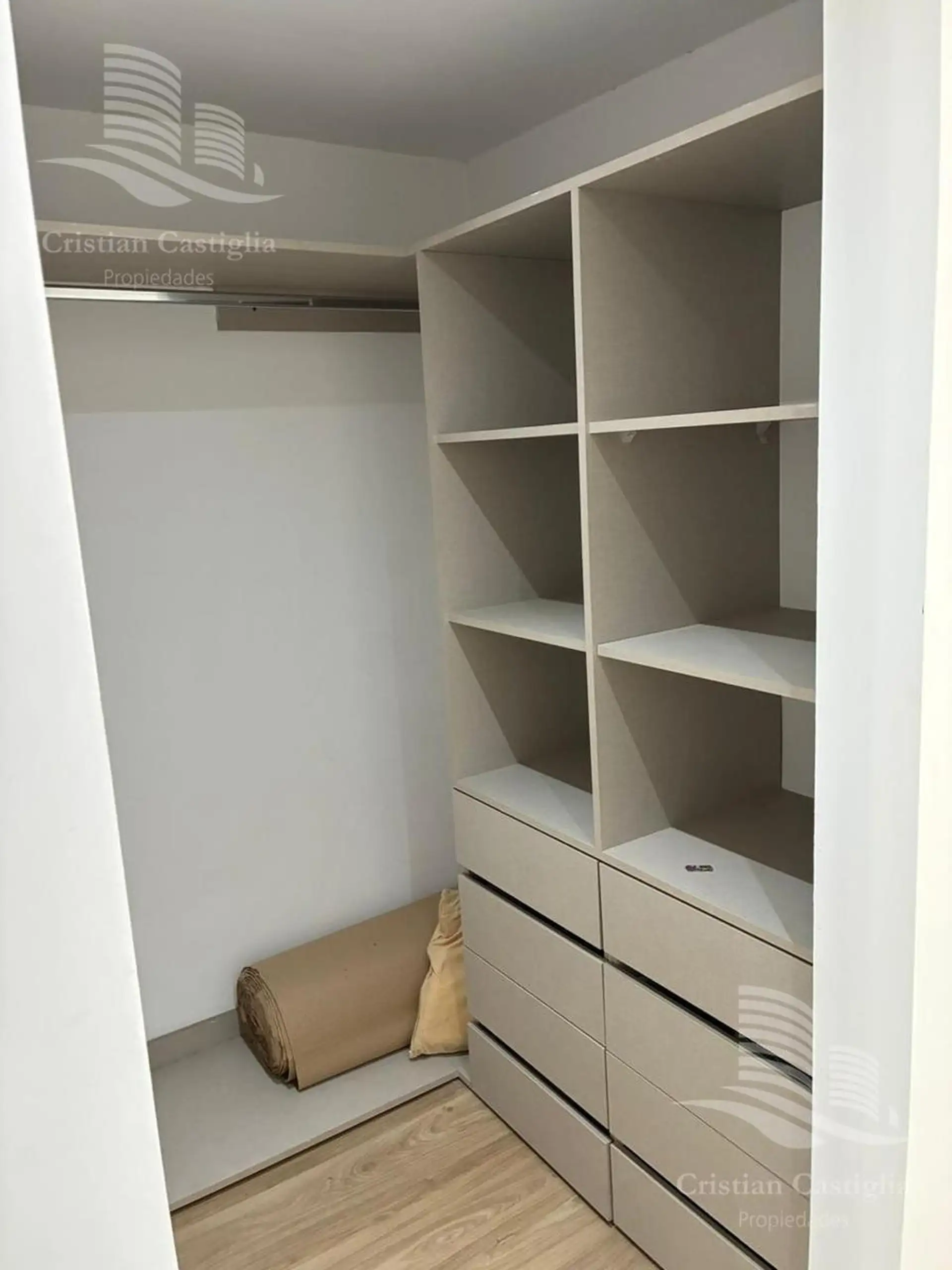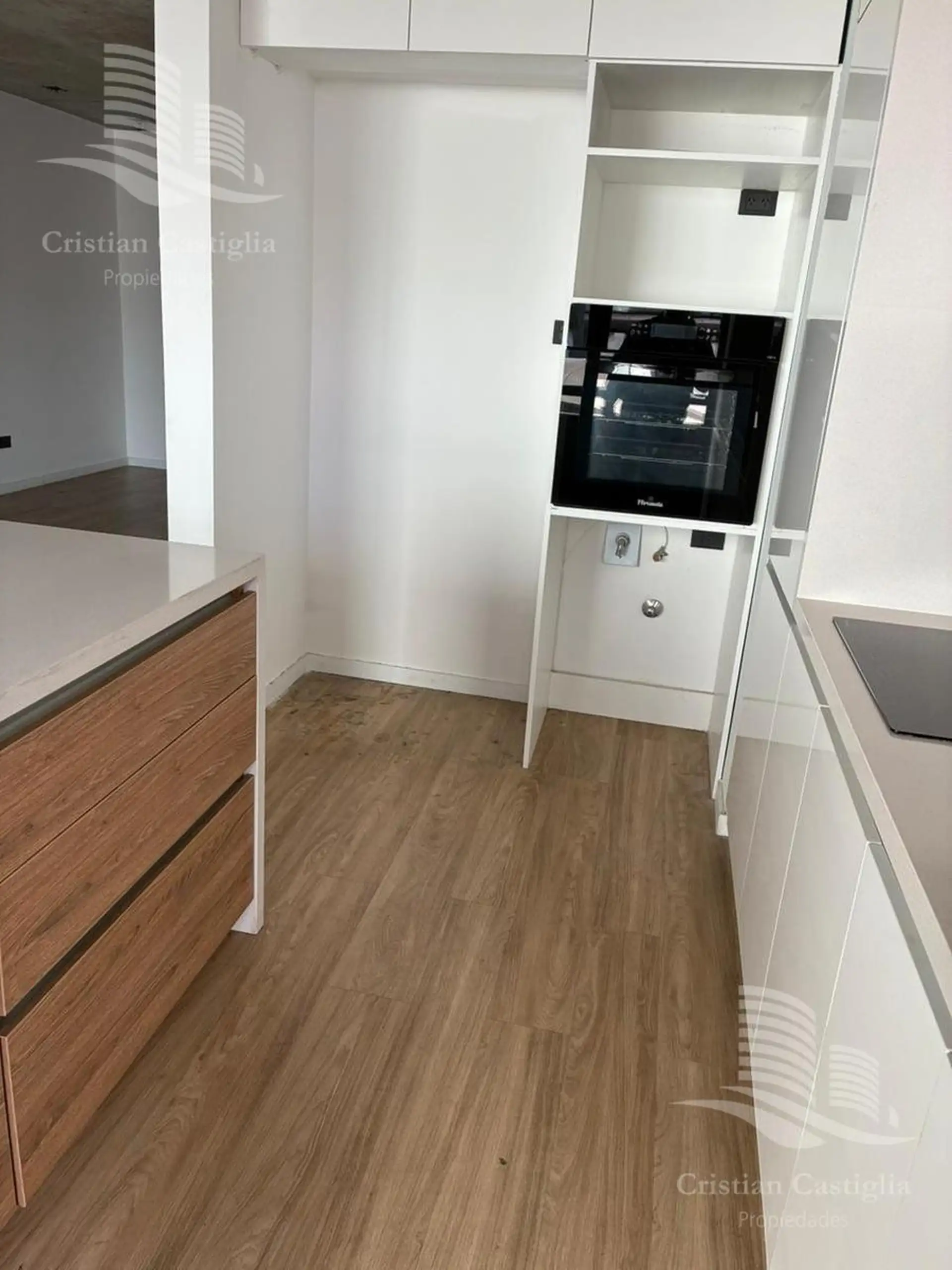 Departamento de 4 ambientes en alquiler en Liniers. La unidad tiene 3 dormitorios originalmente, pero fue adaptada para funcionar como 2 dormitorios de amplias dimensiones, con posibilidad de volver a dividir para recuperar el tercer dormitorio. Cuenta con living comedor con salida a balcón, cocina integrada con isla central equipada con horno y anafe eléctricos, muebles bajo mesada y alacena, y lavadero con parrilla en el balcón. El dormitorio principal es en suite con vestidor; el segundo dorm