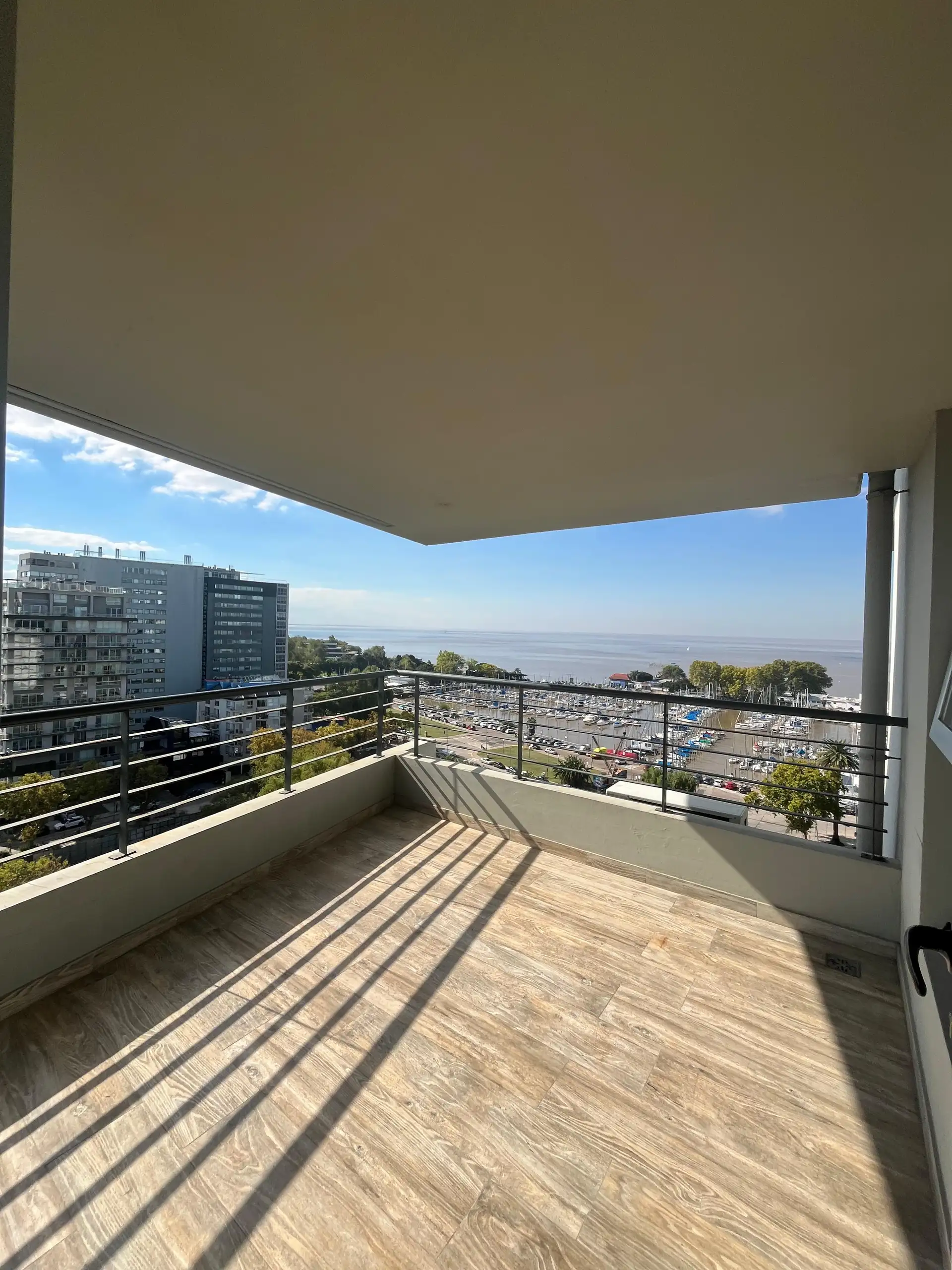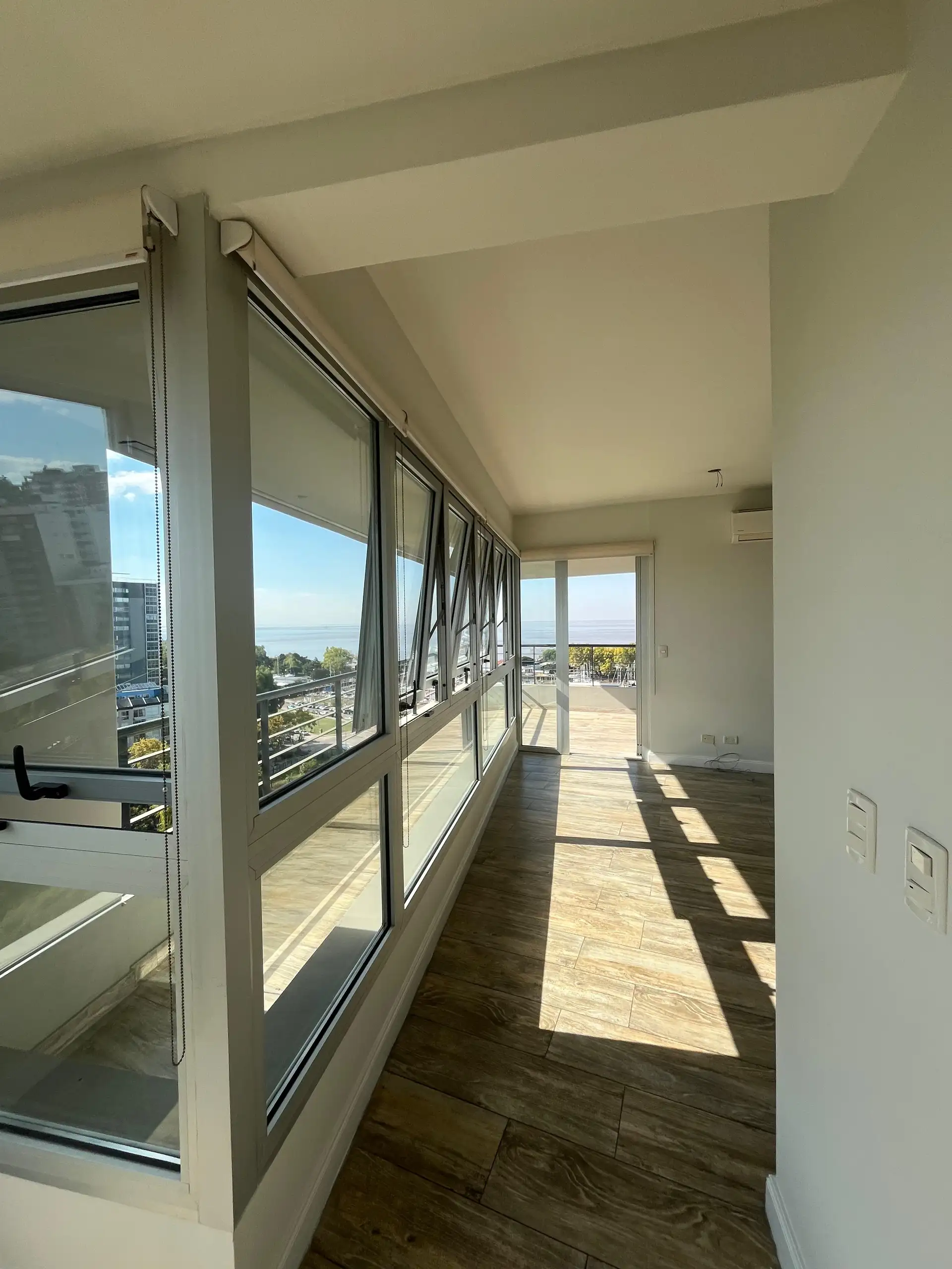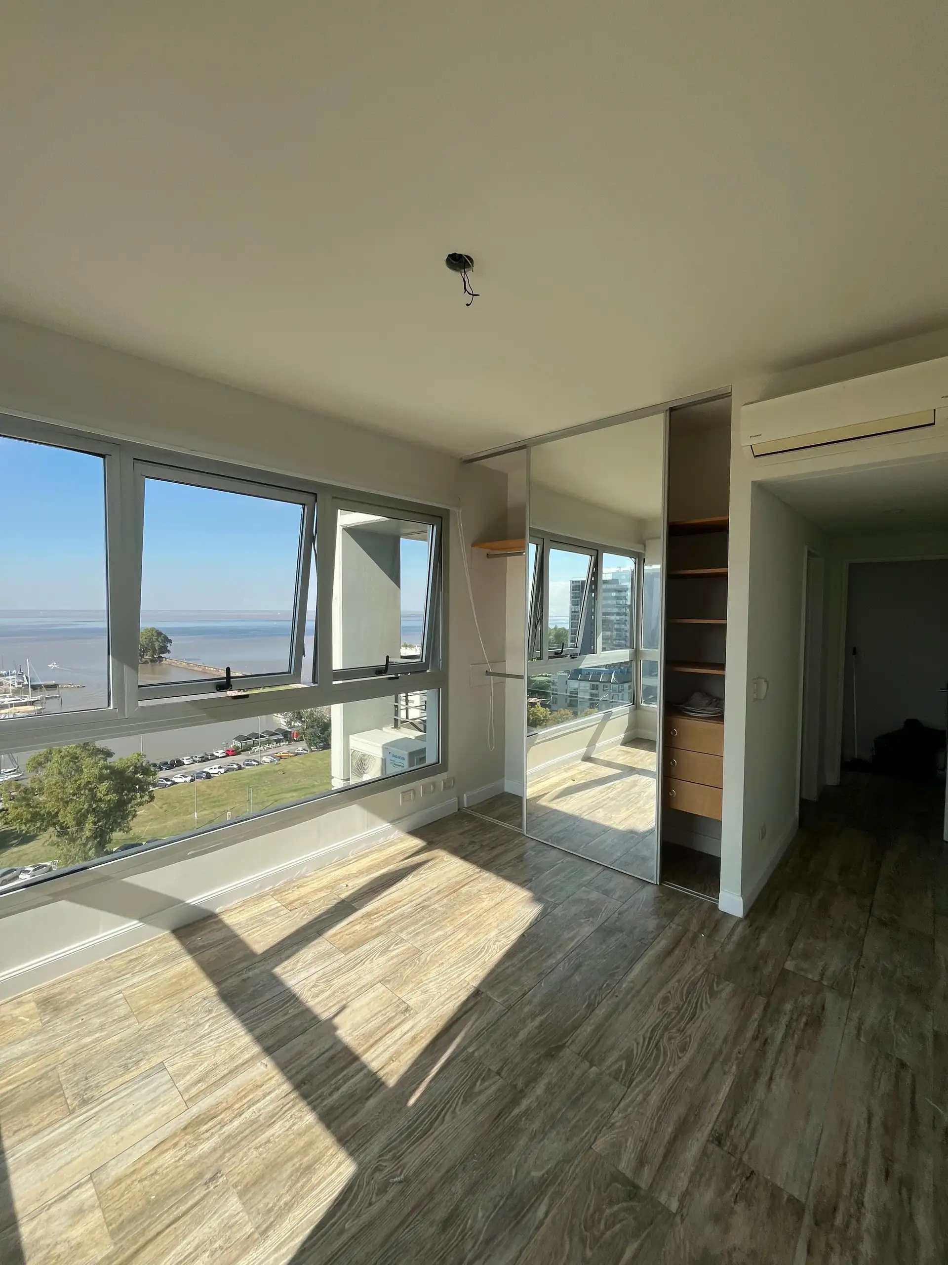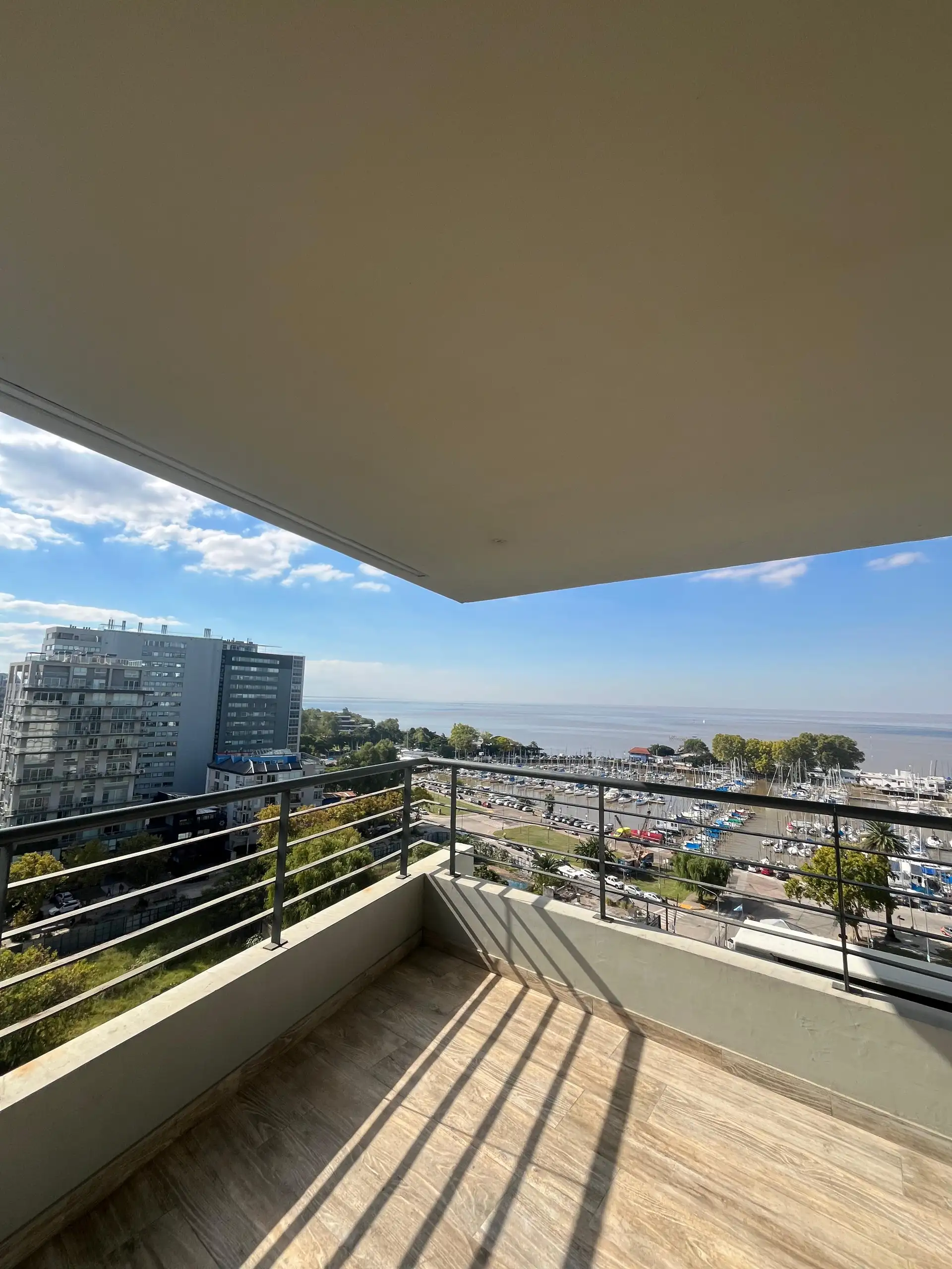 Departamento de 4 ambientes en la torre Star Tower, piso 11°, en Vicente López. Vista abierta al Río y al Puerto, con living irregular de 4 x 7 con salida a balcón en L de 5 x 1 y 3 x 3. Cuenta con comedor de 3,80 x 2,80, toilette y placard de recepción; cocina comedor diario de 5,80 x 2,40. Dispone de pasillo de distribución de 1 x 4,80 a 3 dormitorios, todos en suite, con splits individuales en todos los ambientes. Incluye cochera fija cubierta. En el piso 18 tiene gimnasio con vista al río y