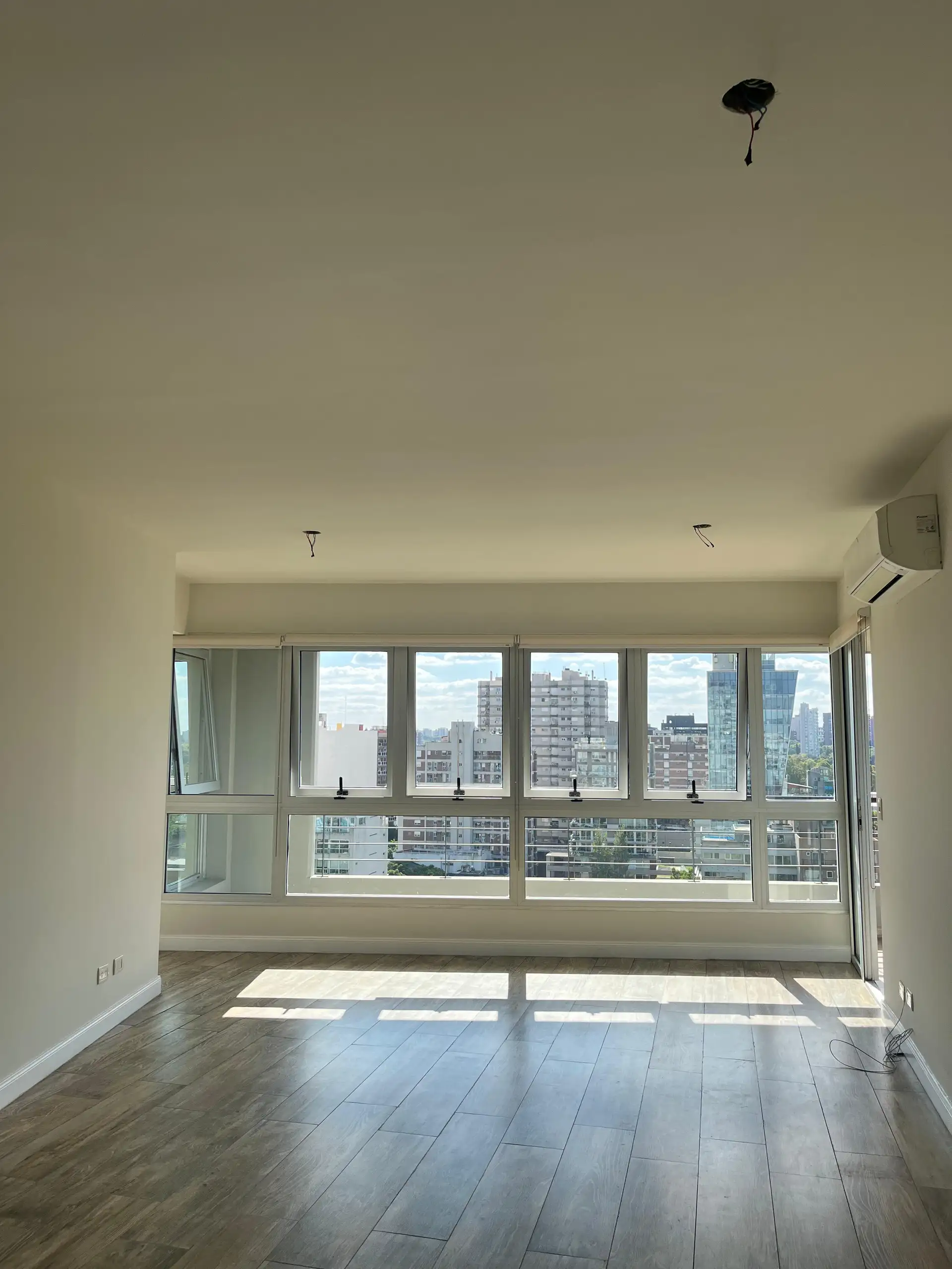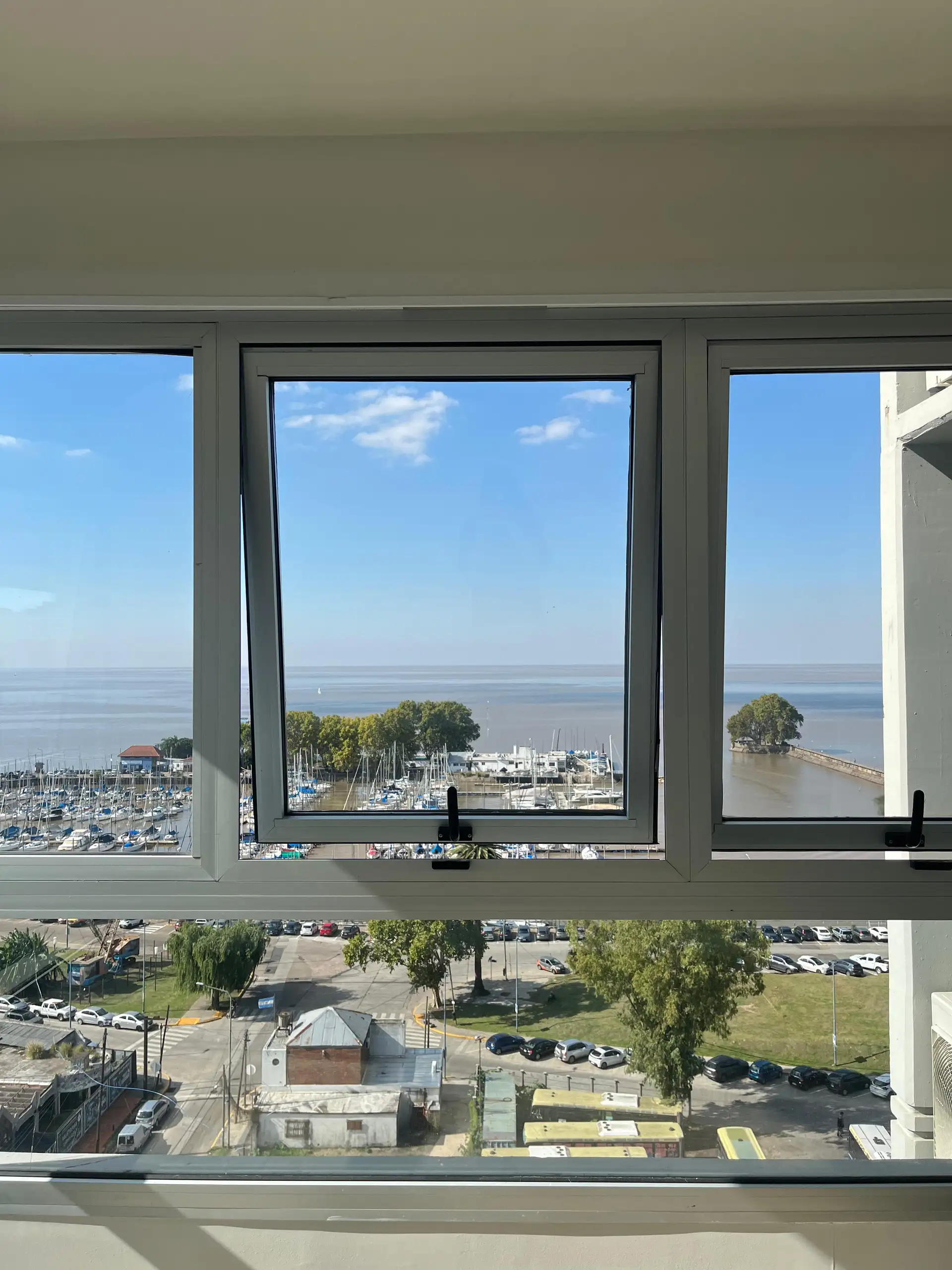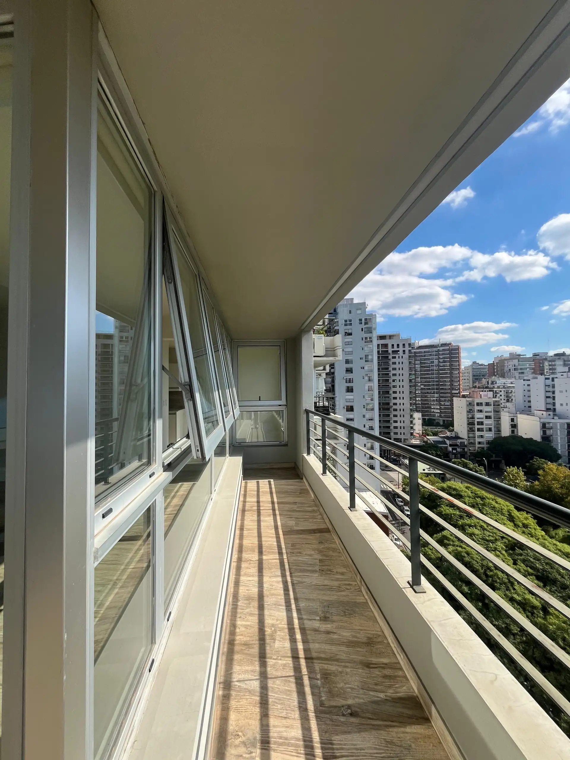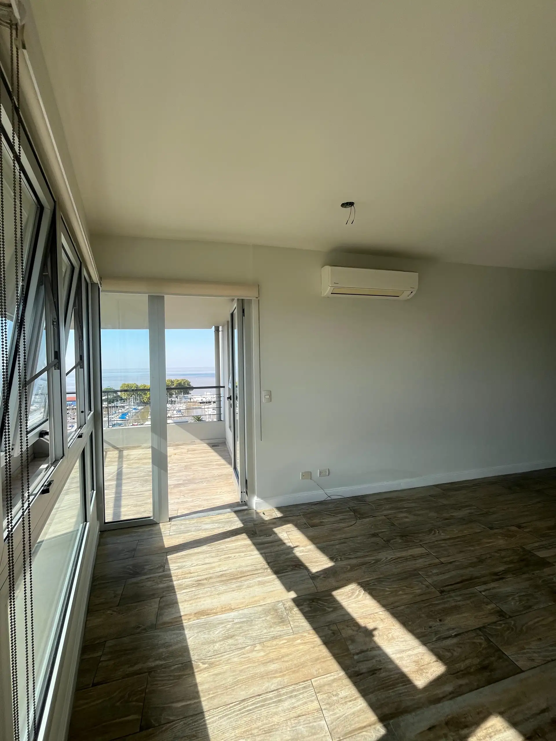 Departamento de 4 ambientes en la torre Star Tower, piso 11°, en Vicente López. Vista abierta al Río y al Puerto, con living irregular de 4 x 7 con salida a balcón en L de 5 x 1 y 3 x 3. Cuenta con comedor de 3,80 x 2,80, toilette y placard de recepción; cocina comedor diario de 5,80 x 2,40. Dispone de pasillo de distribución de 1 x 4,80 a 3 dormitorios, todos en suite, con splits individuales en todos los ambientes. Incluye cochera fija cubierta. En el piso 18 tiene gimnasio con vista al río y